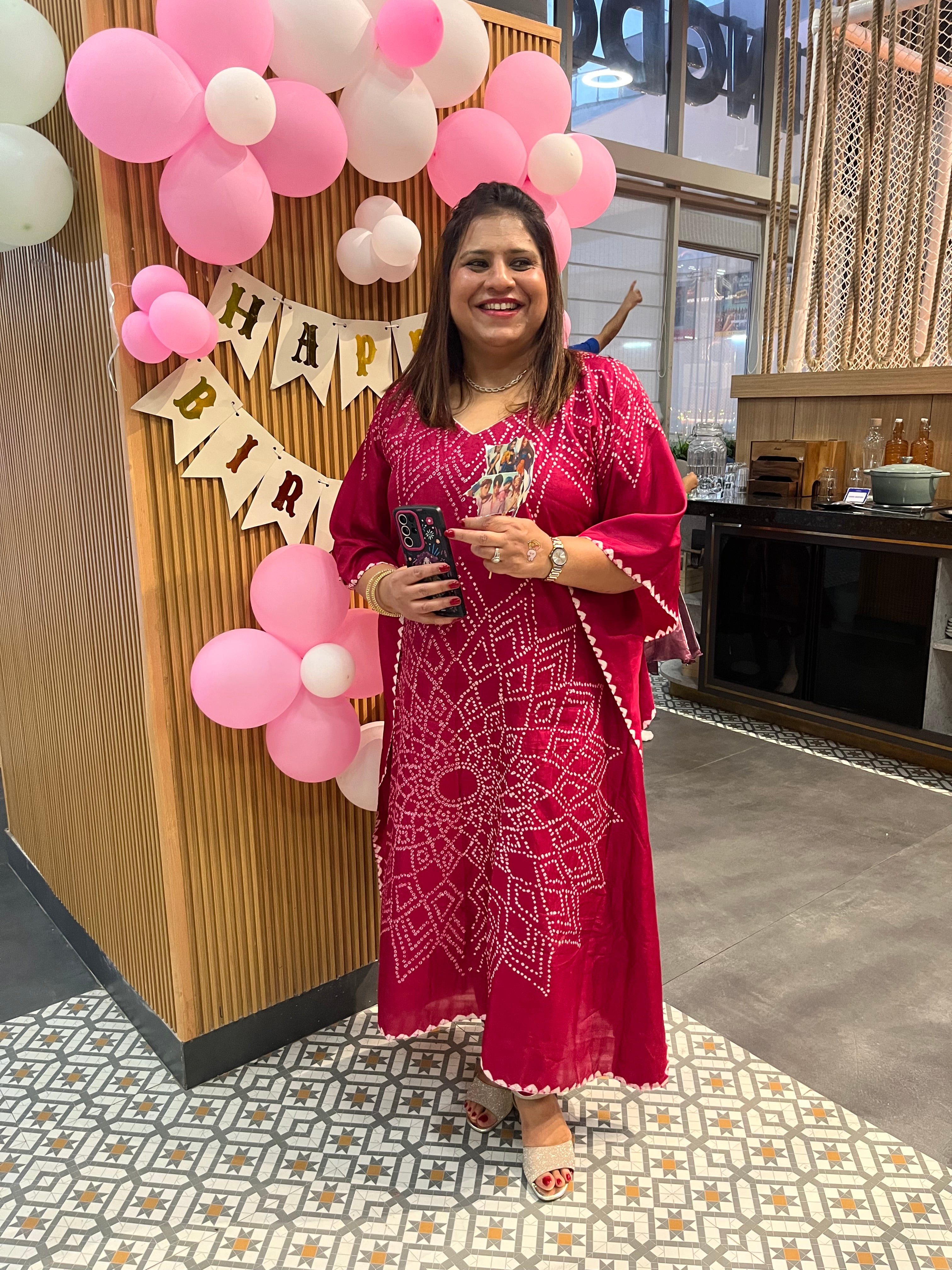 Cotton bandhani kurta bottom fabric kota doria chikan work dupatta