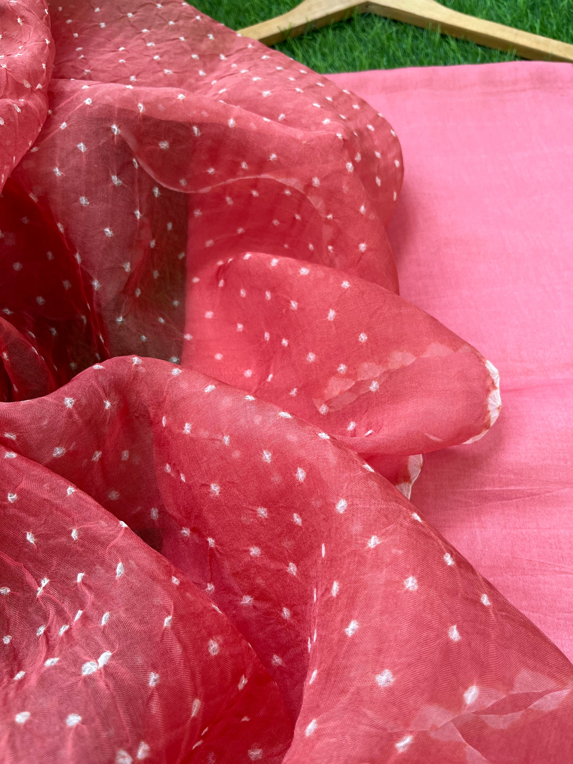 Details:organza Silk bandhej dupatta with plain chanderi fabric for kurta and bottom