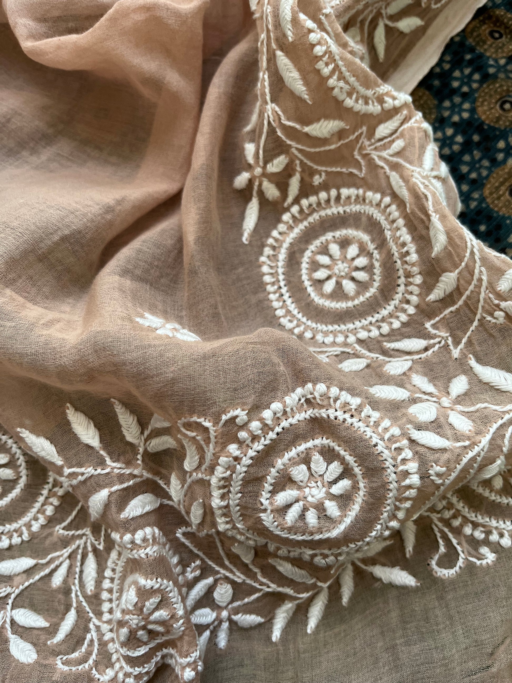 Ajrakh chanderi kurta fabric paired with a chanderi chikankari Dupatta
