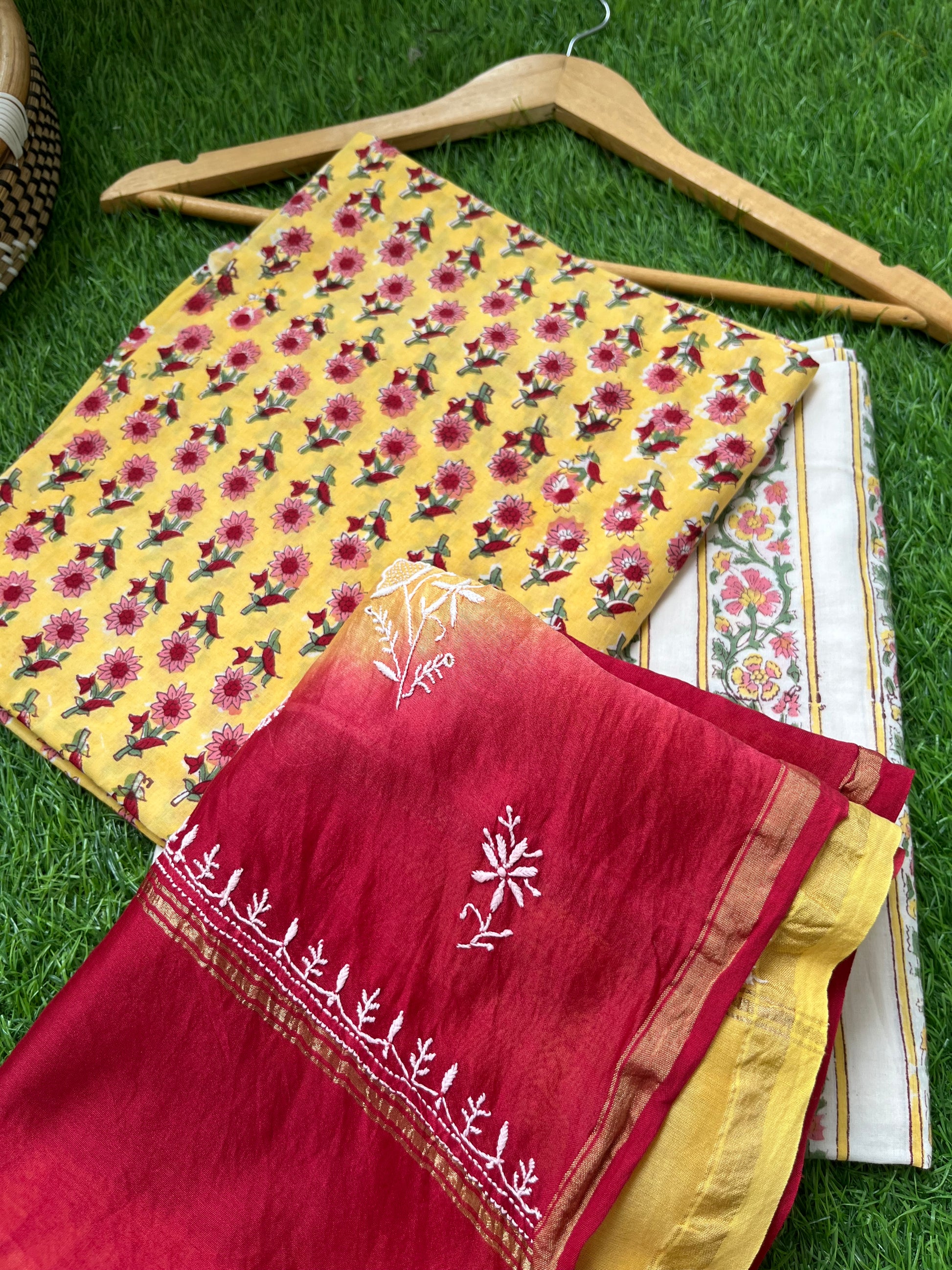 cotton kurta bottom fabric paired with a chanderi chikankari Dupatta
