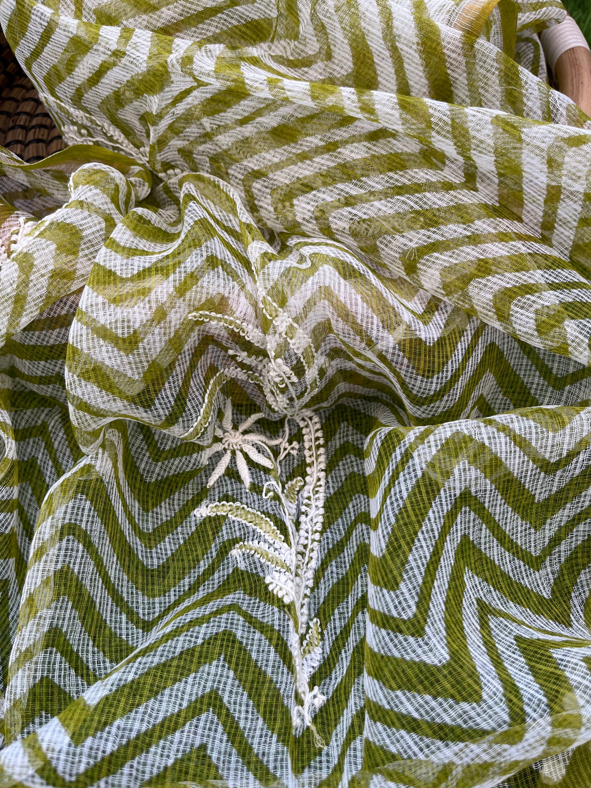 Block print cotton kurta bottom fabric paired with a kota doria chikankari Dupatta