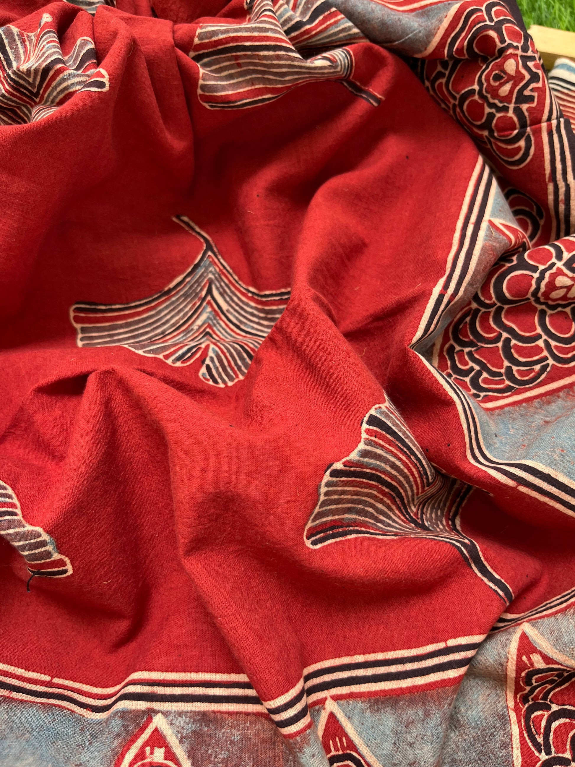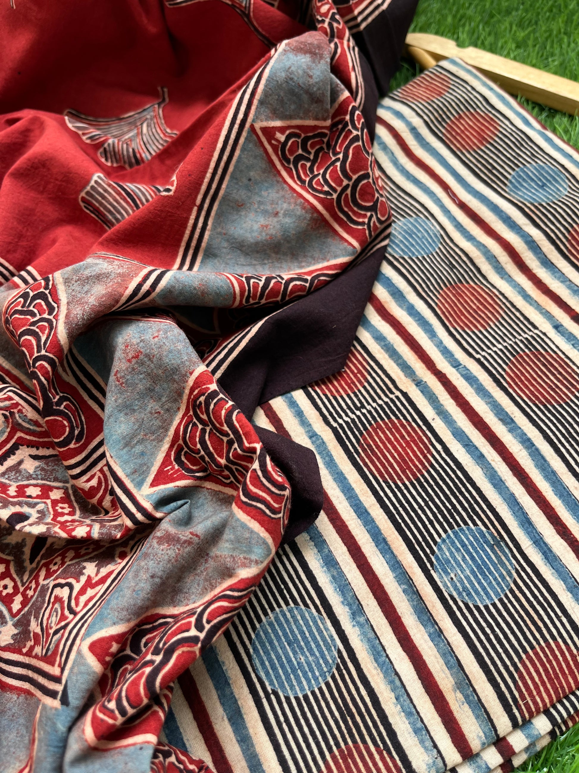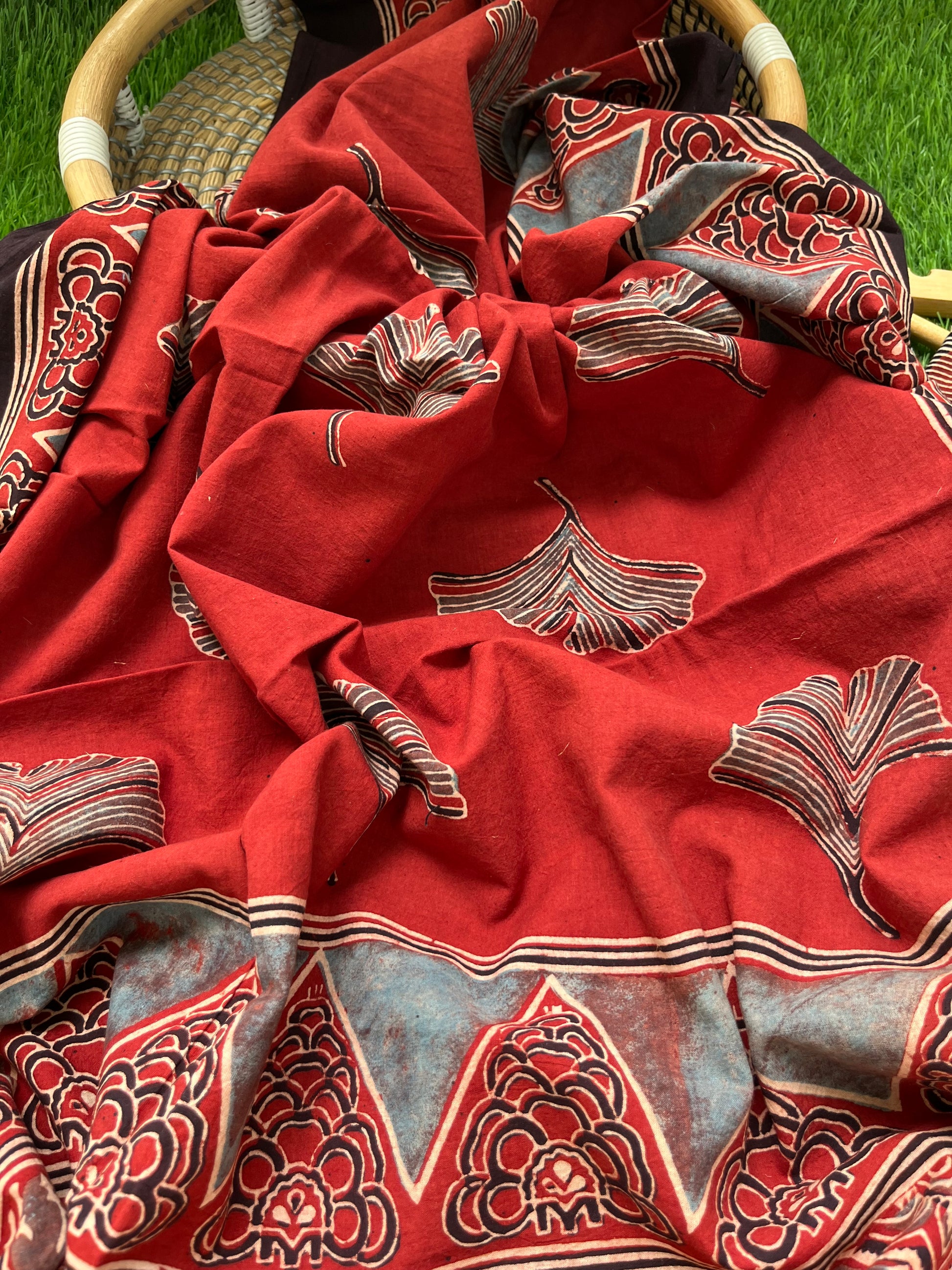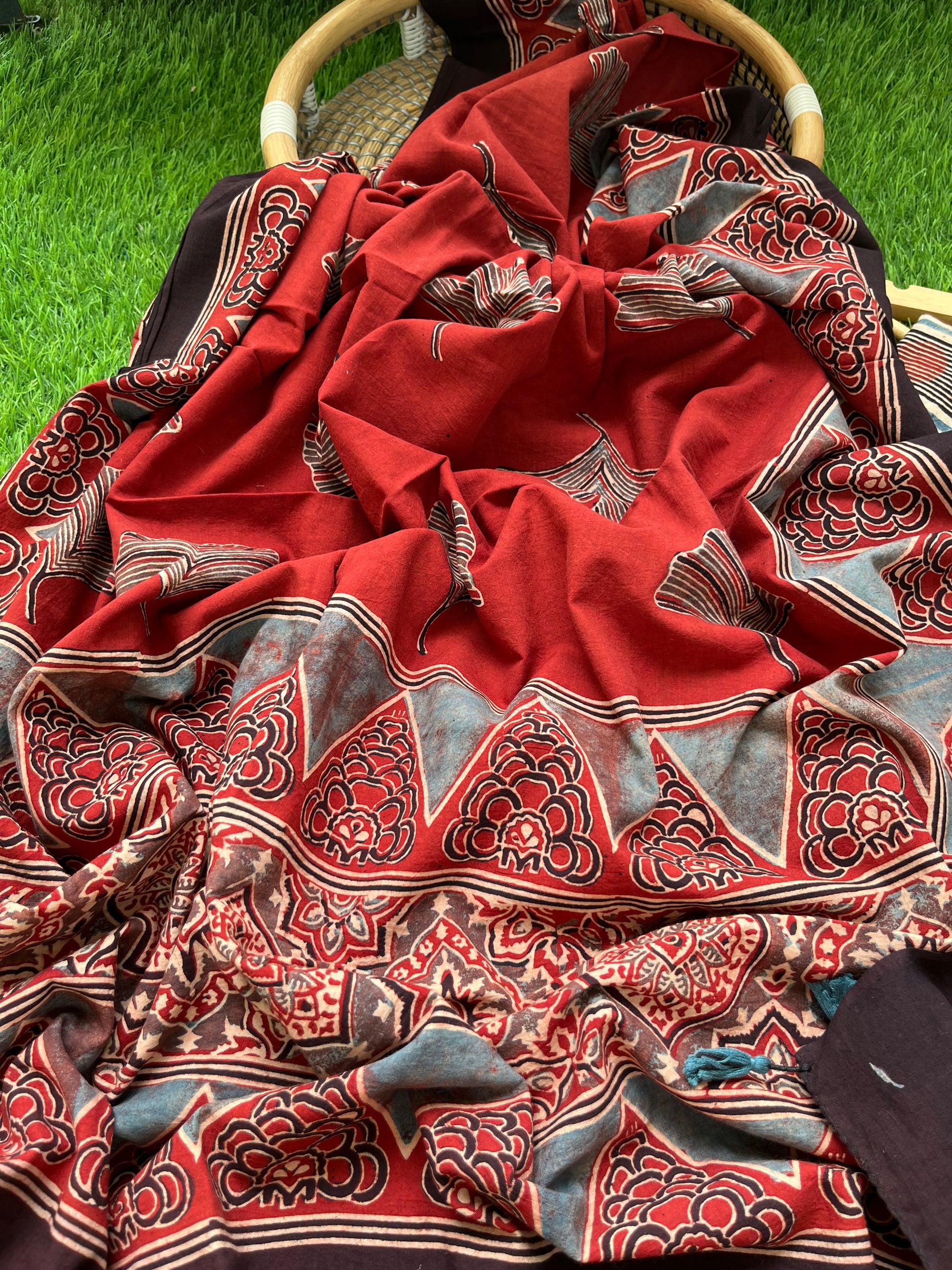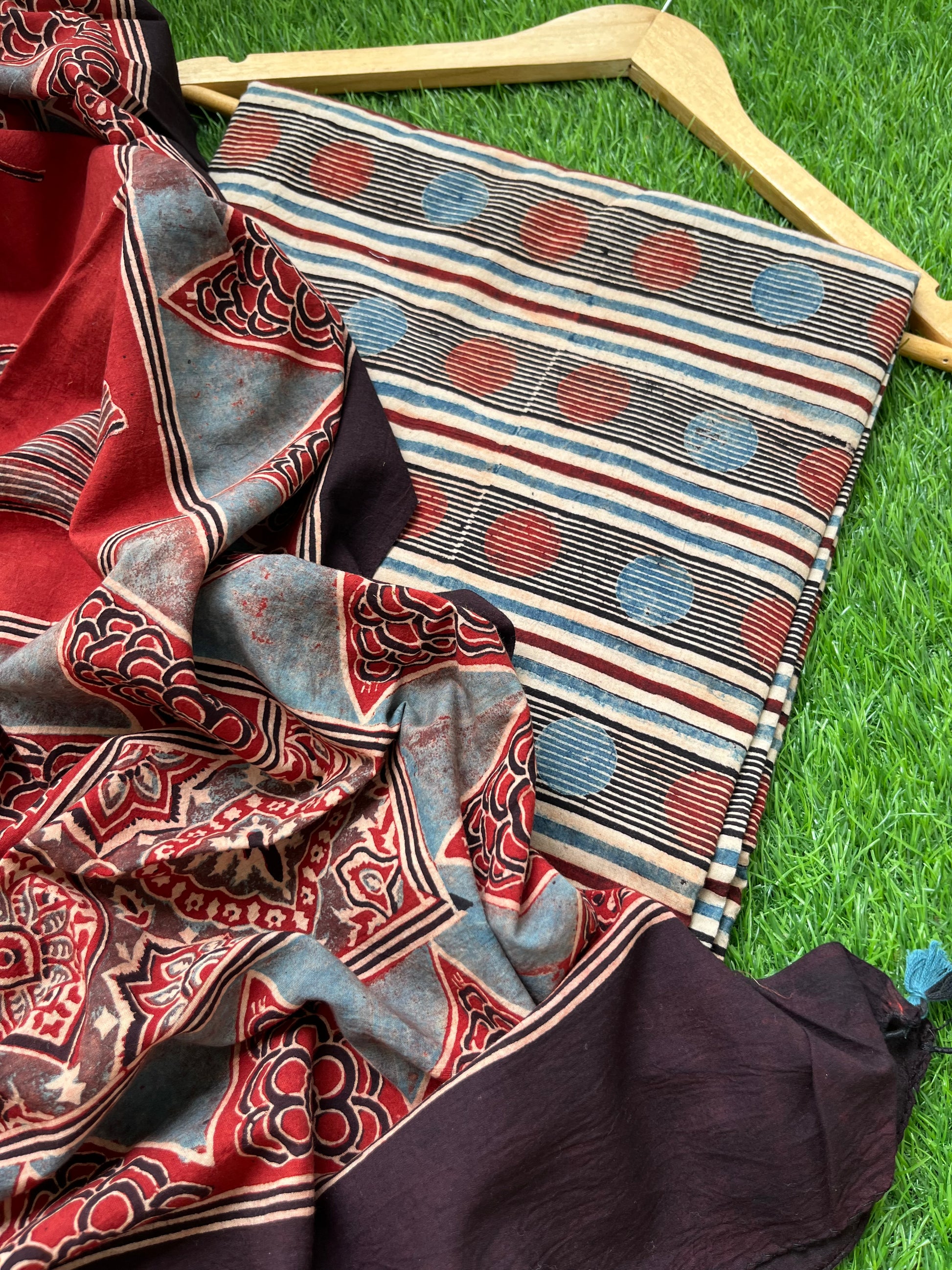 Pure cotton ajrakh dupatta and cotton Kurta and bottom fabric set