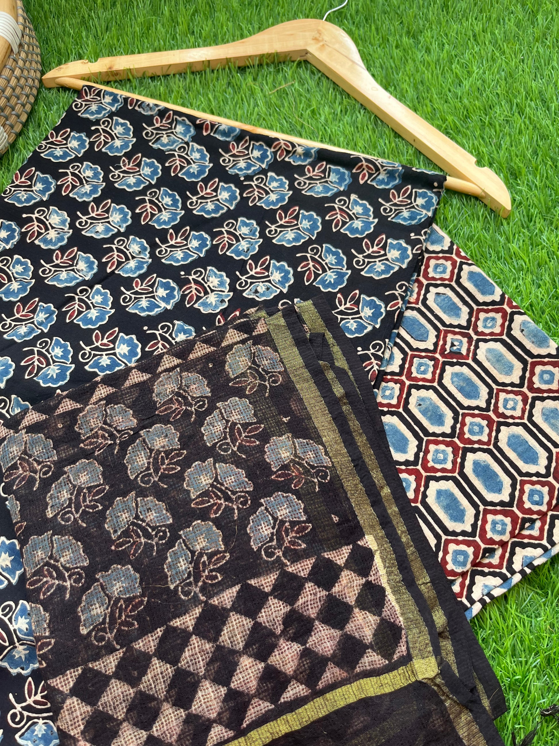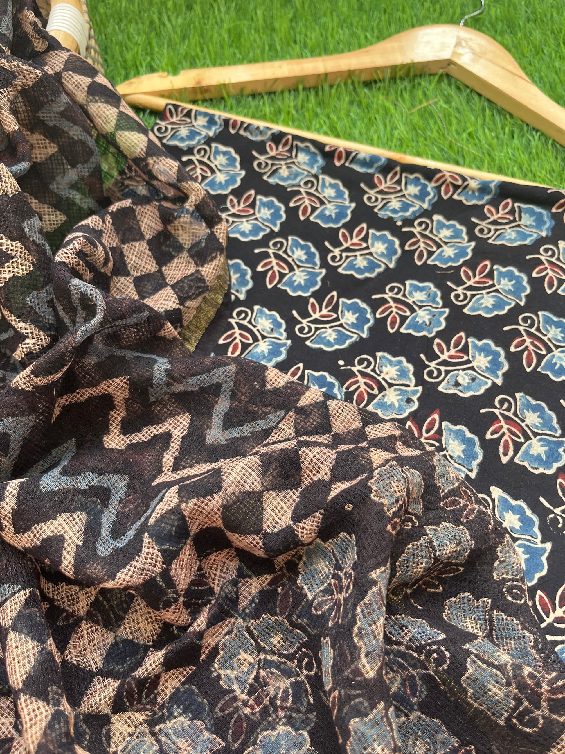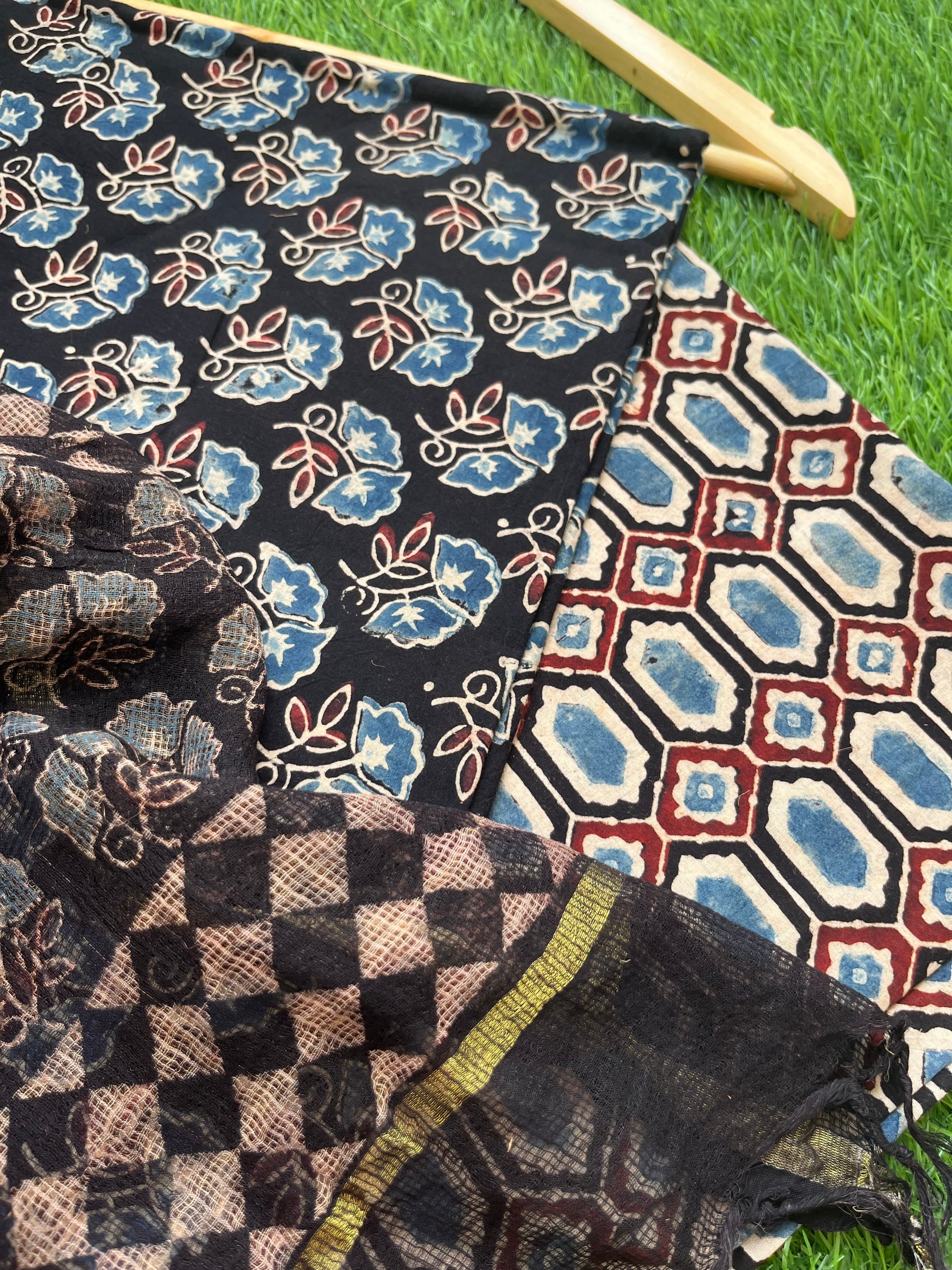 Pure cotton ajrakh Kurta and bottom fabric with kota doria dupatta set