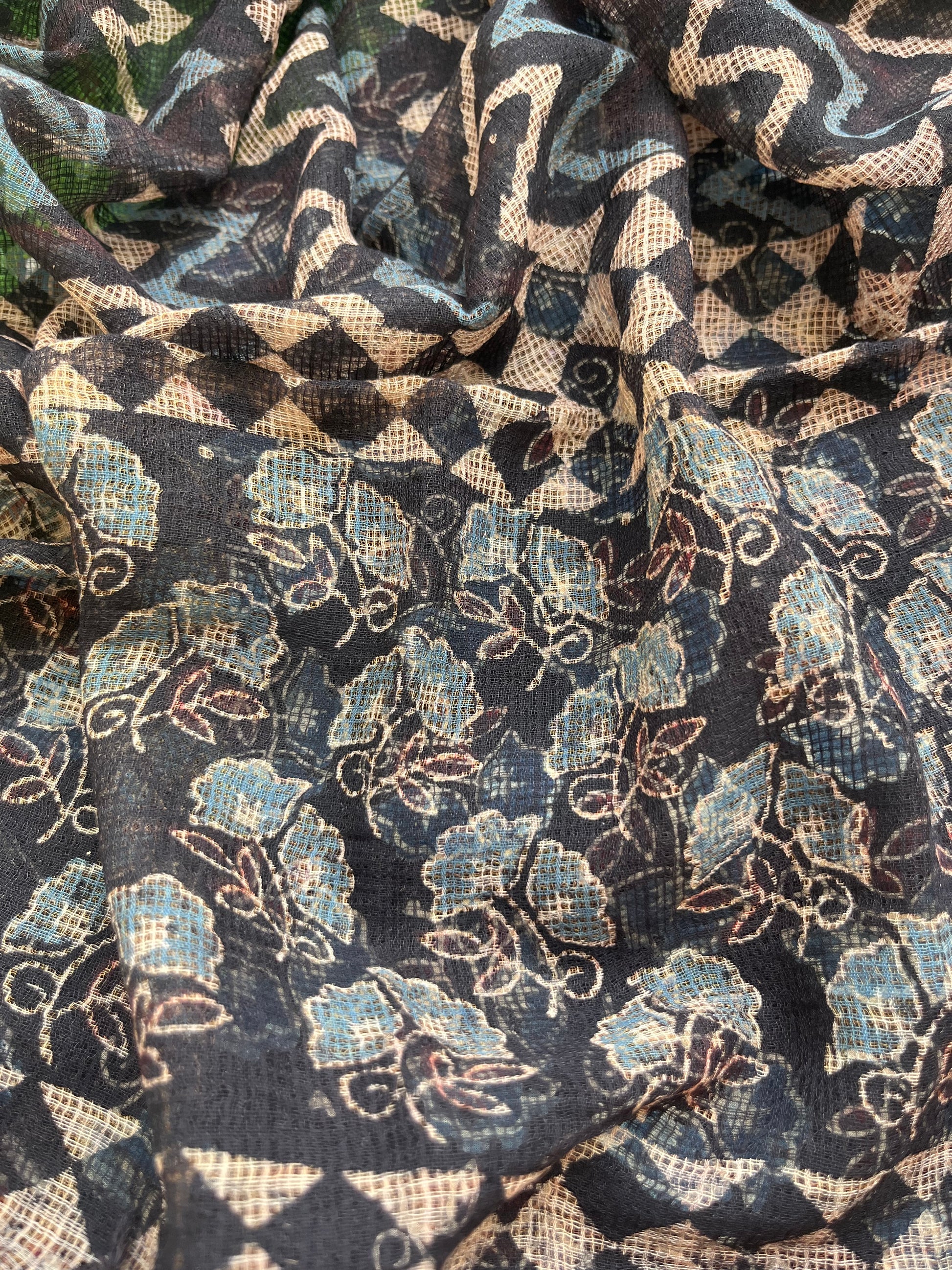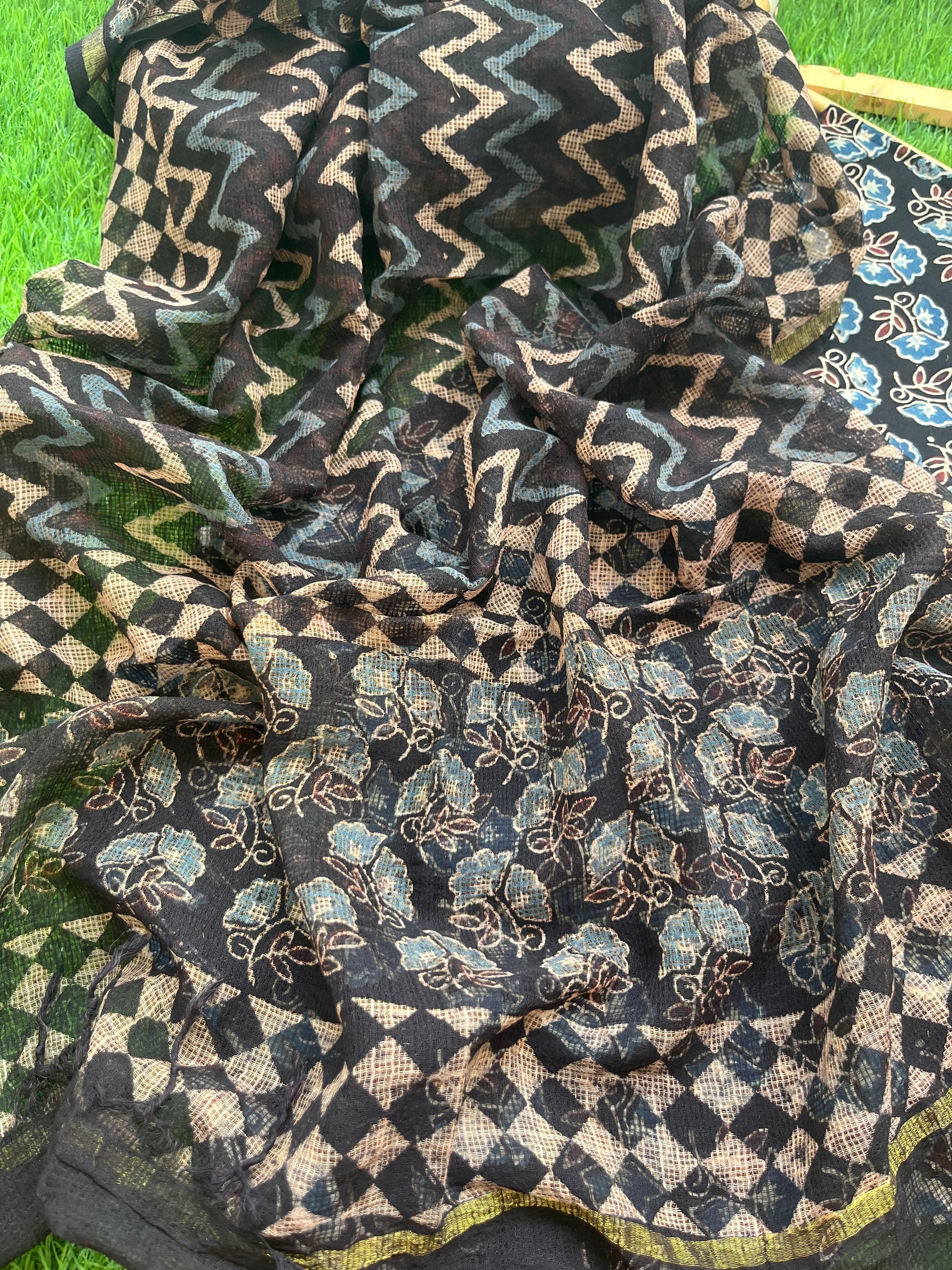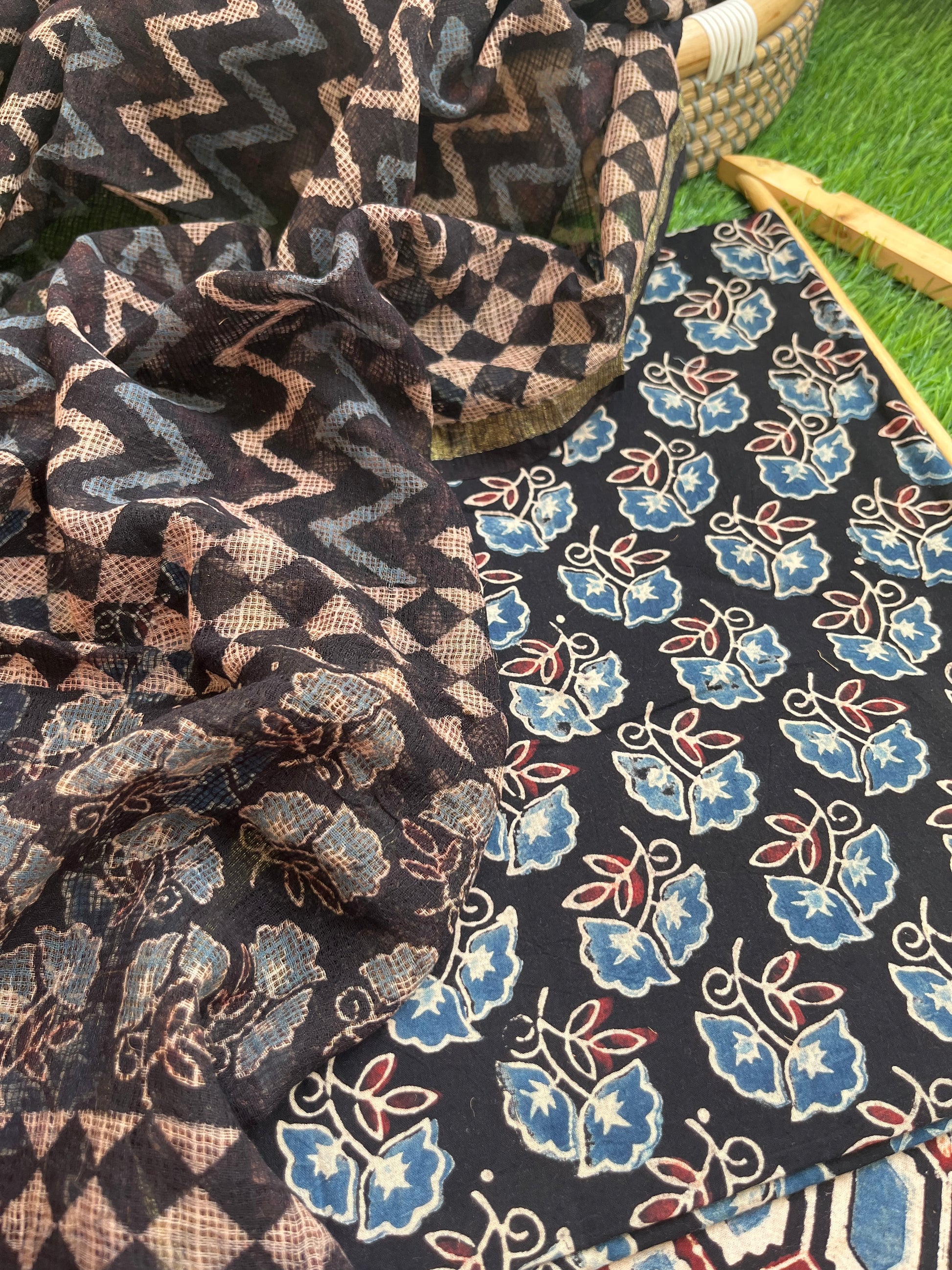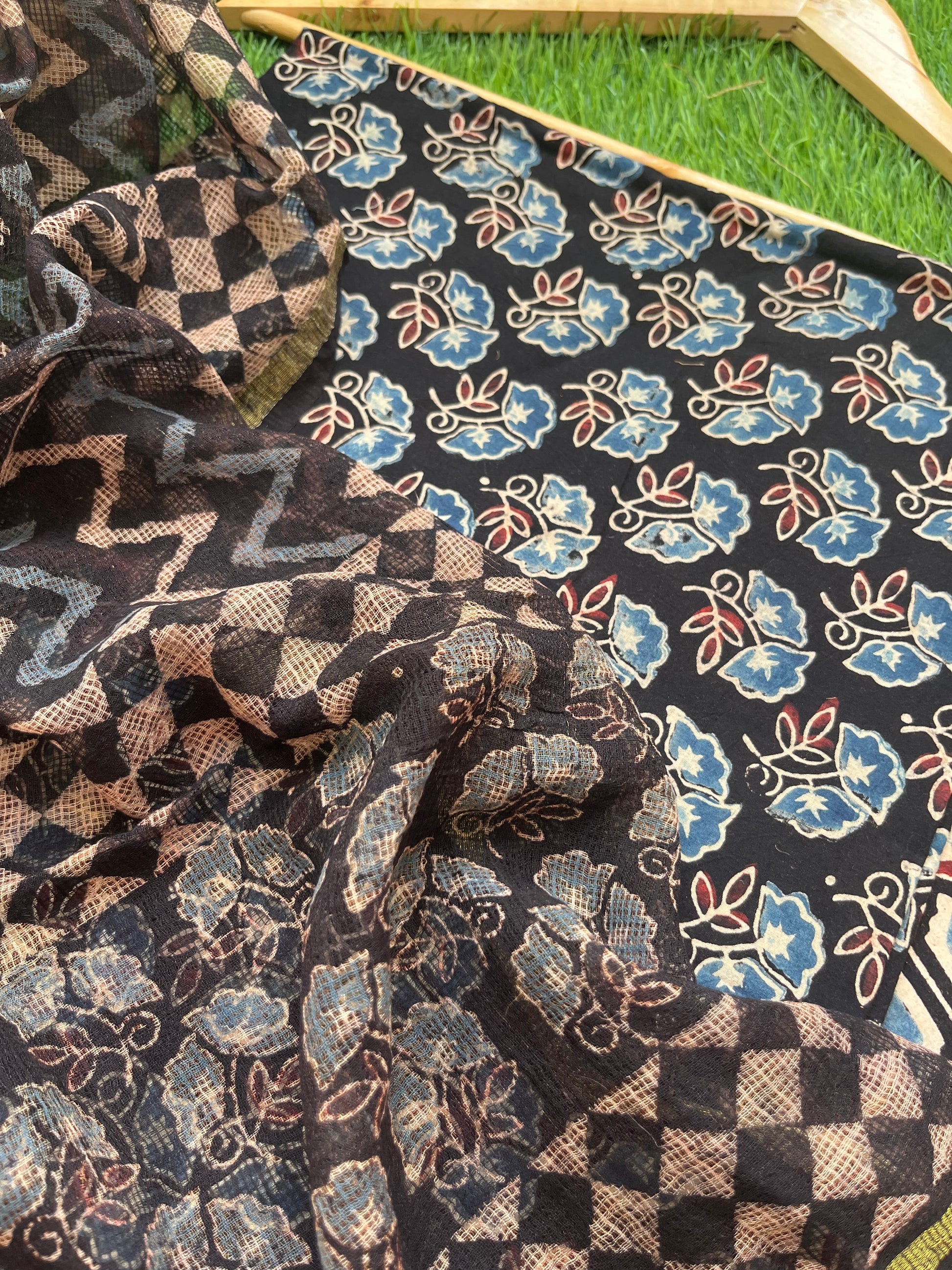Pure cotton ajrakh Kurta and bottom fabric with kota doria dupatta set