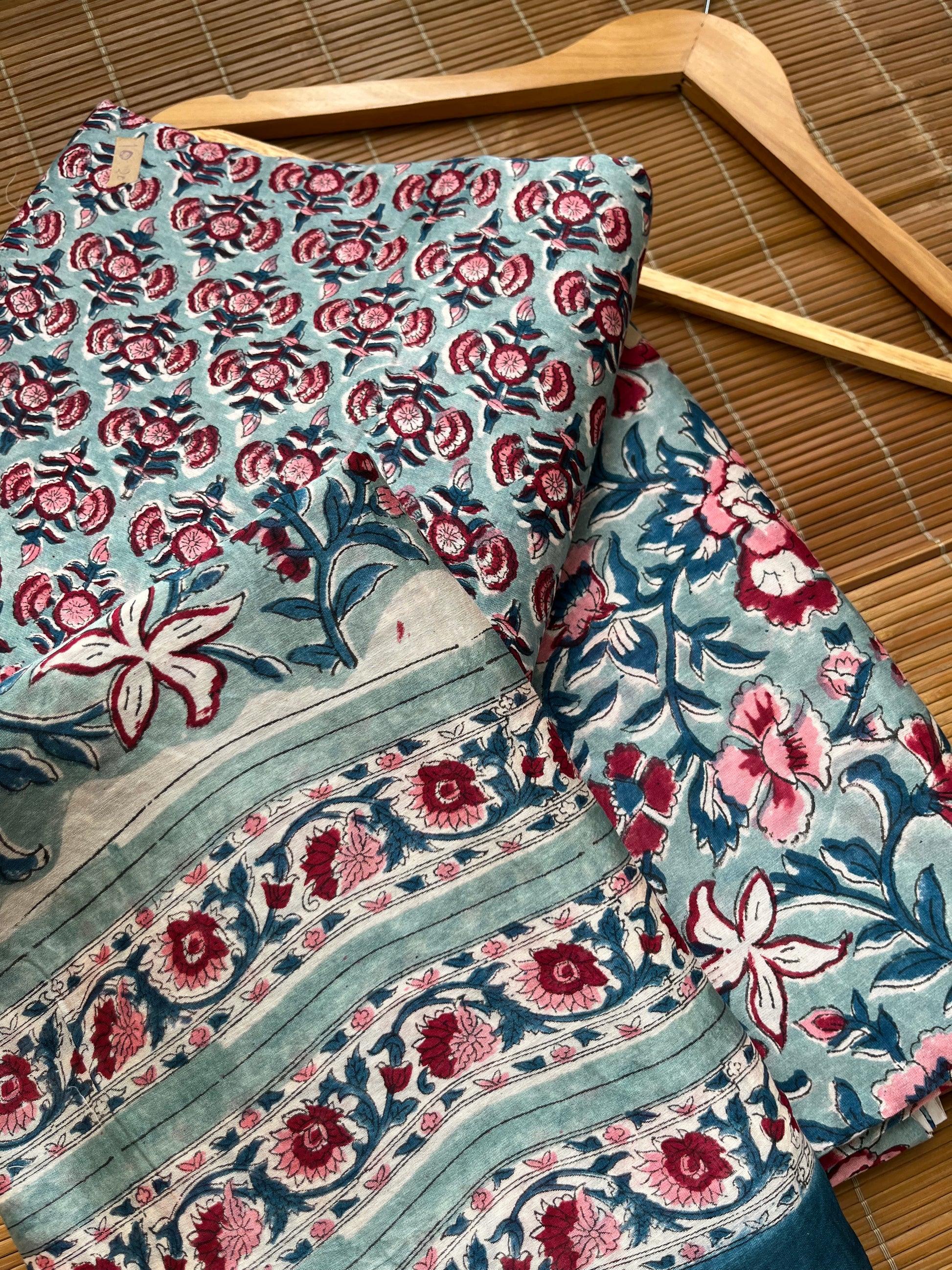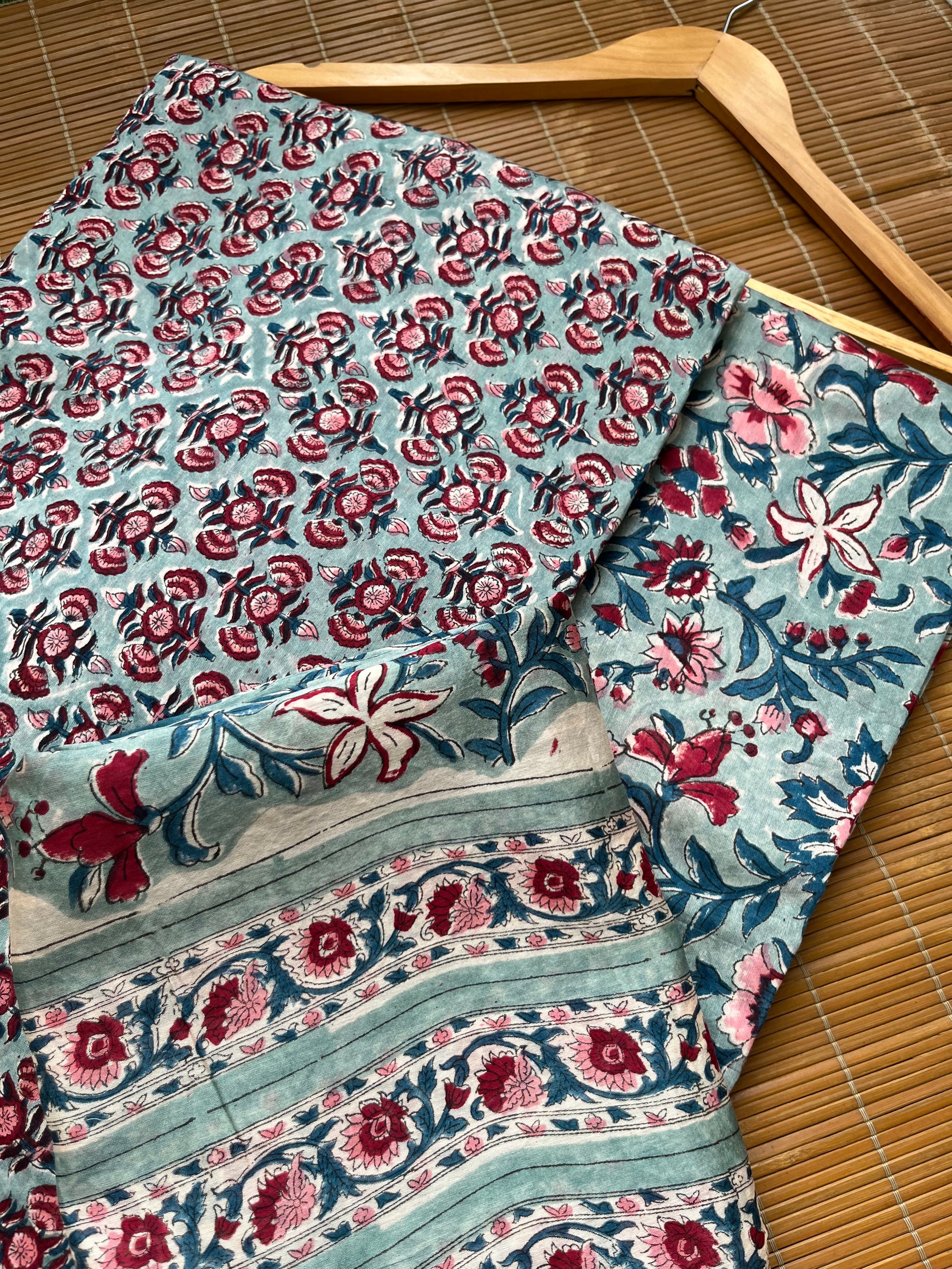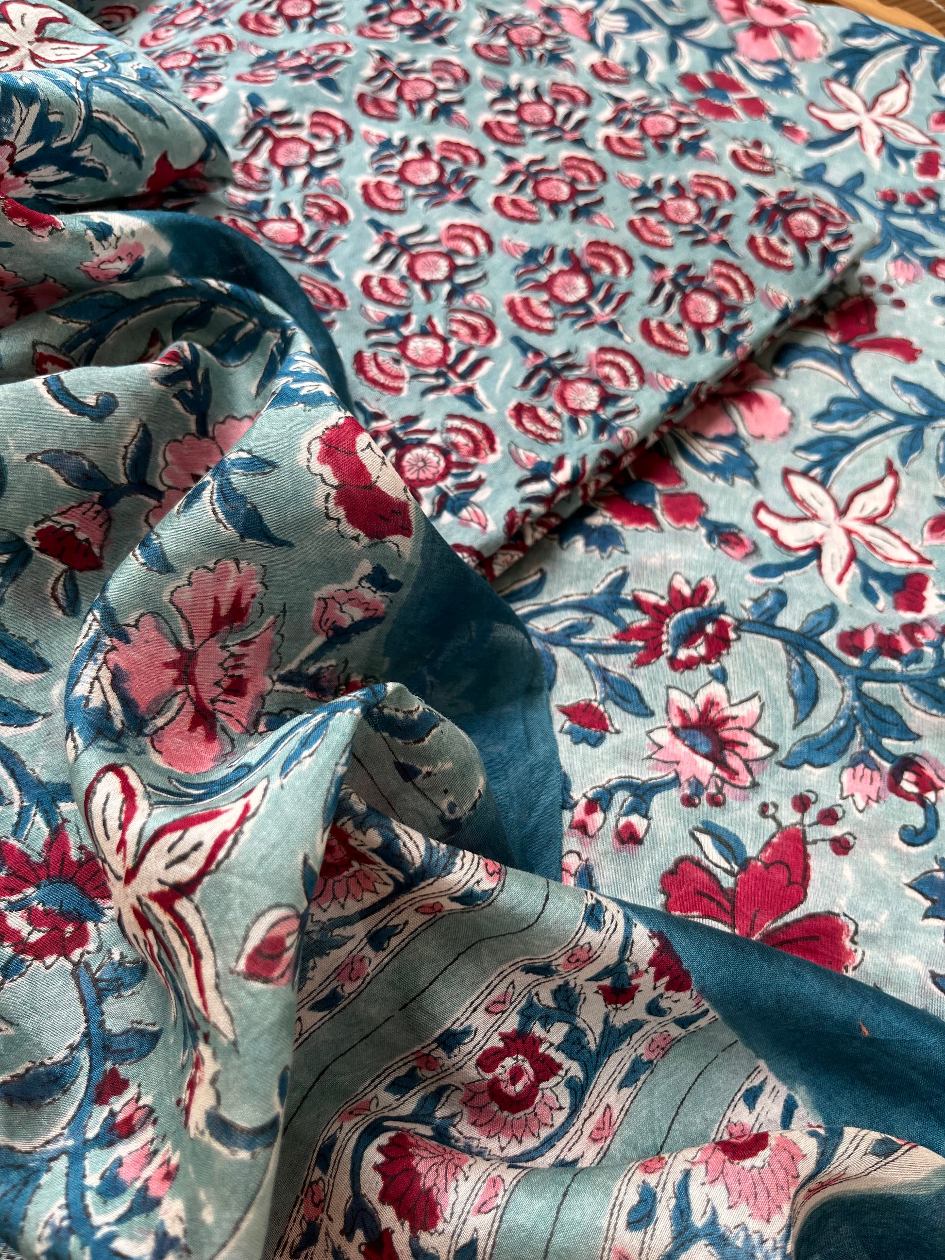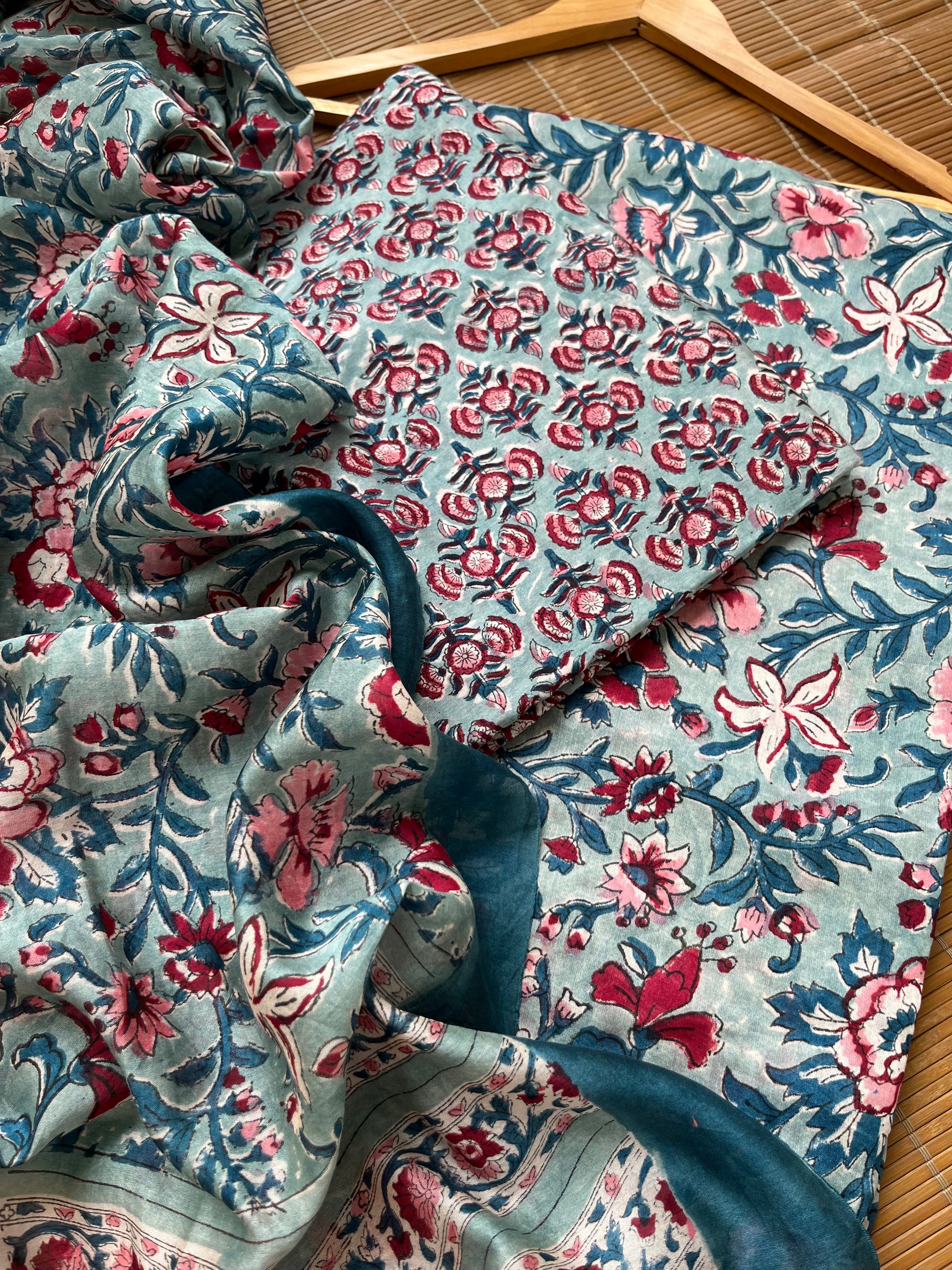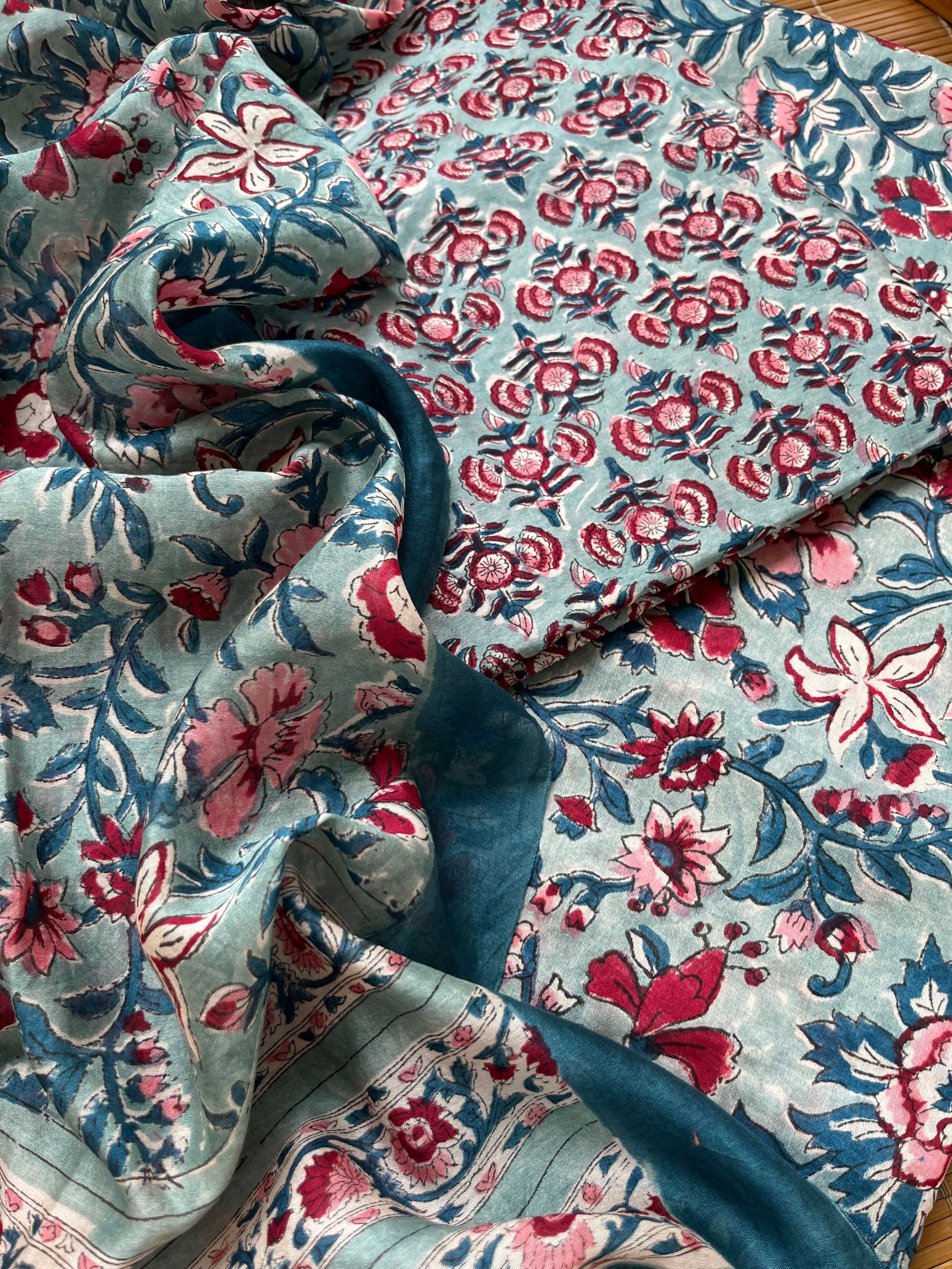 Pure chanderi block print dupatta and Kurta and bottom fabric set