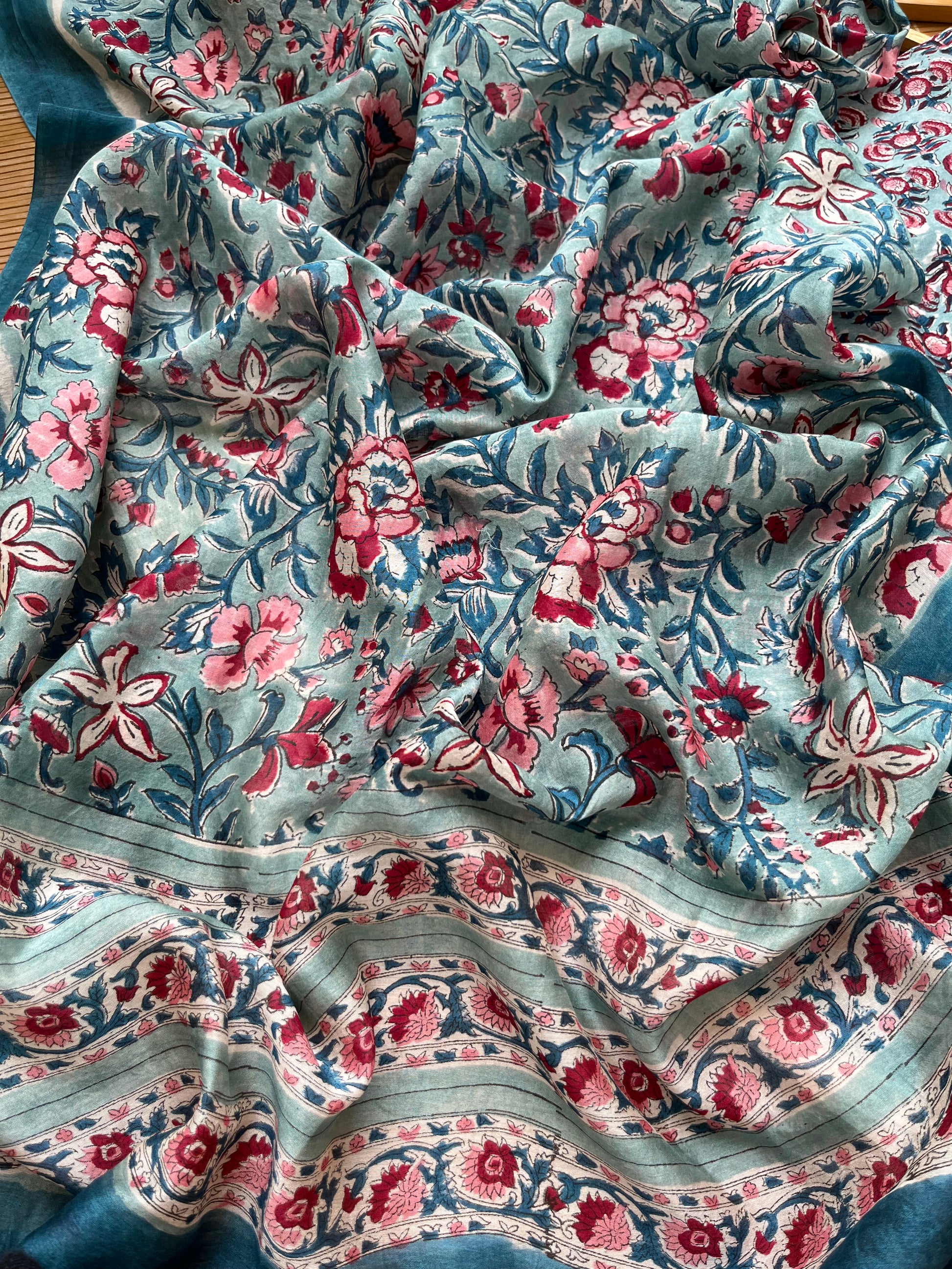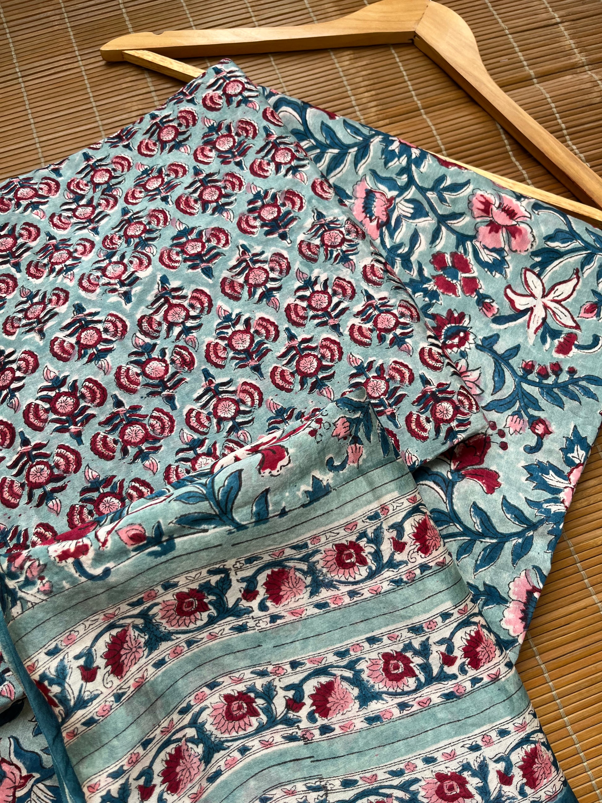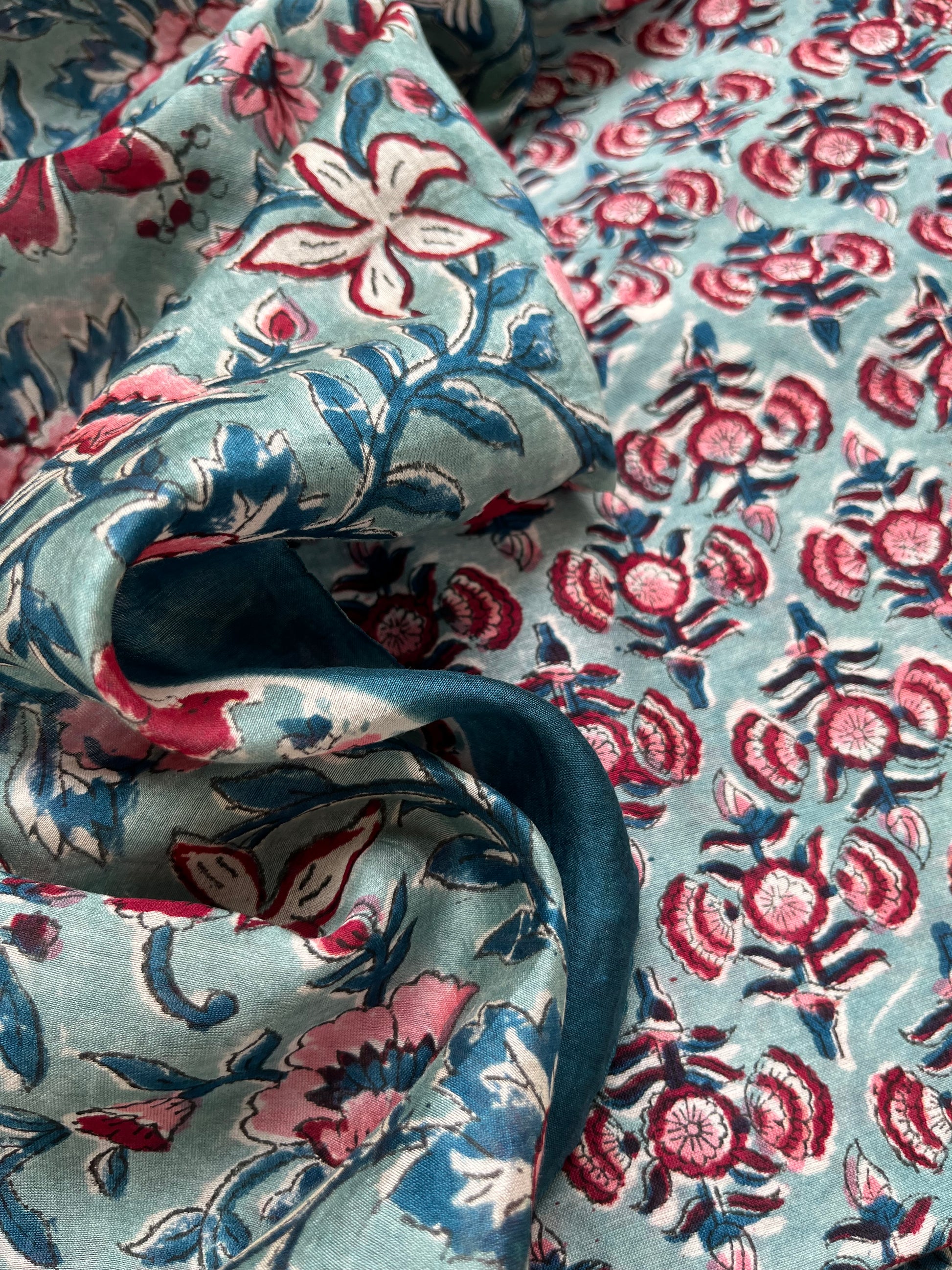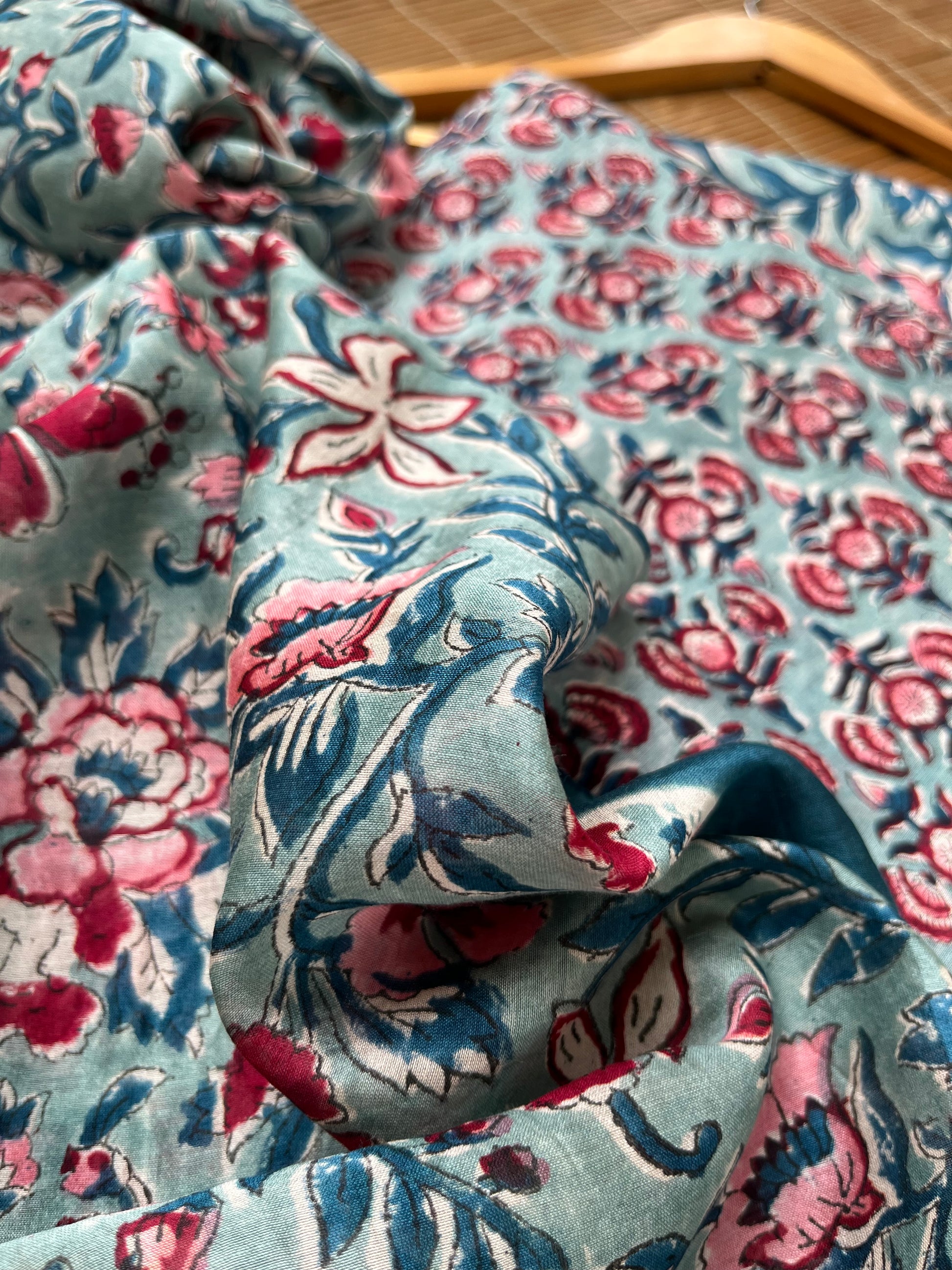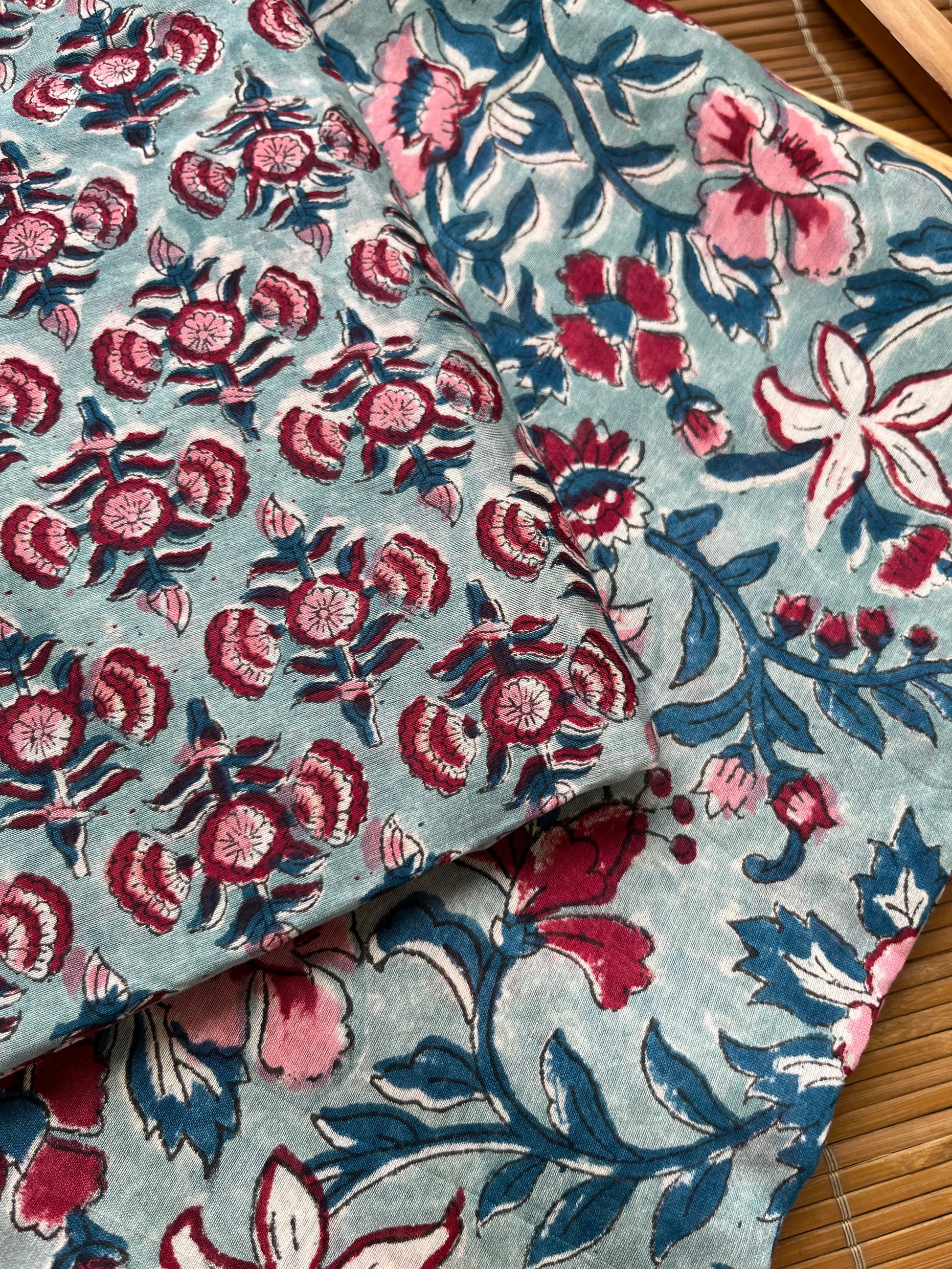 Pure chanderi block print dupatta and Kurta and bottom fabric set