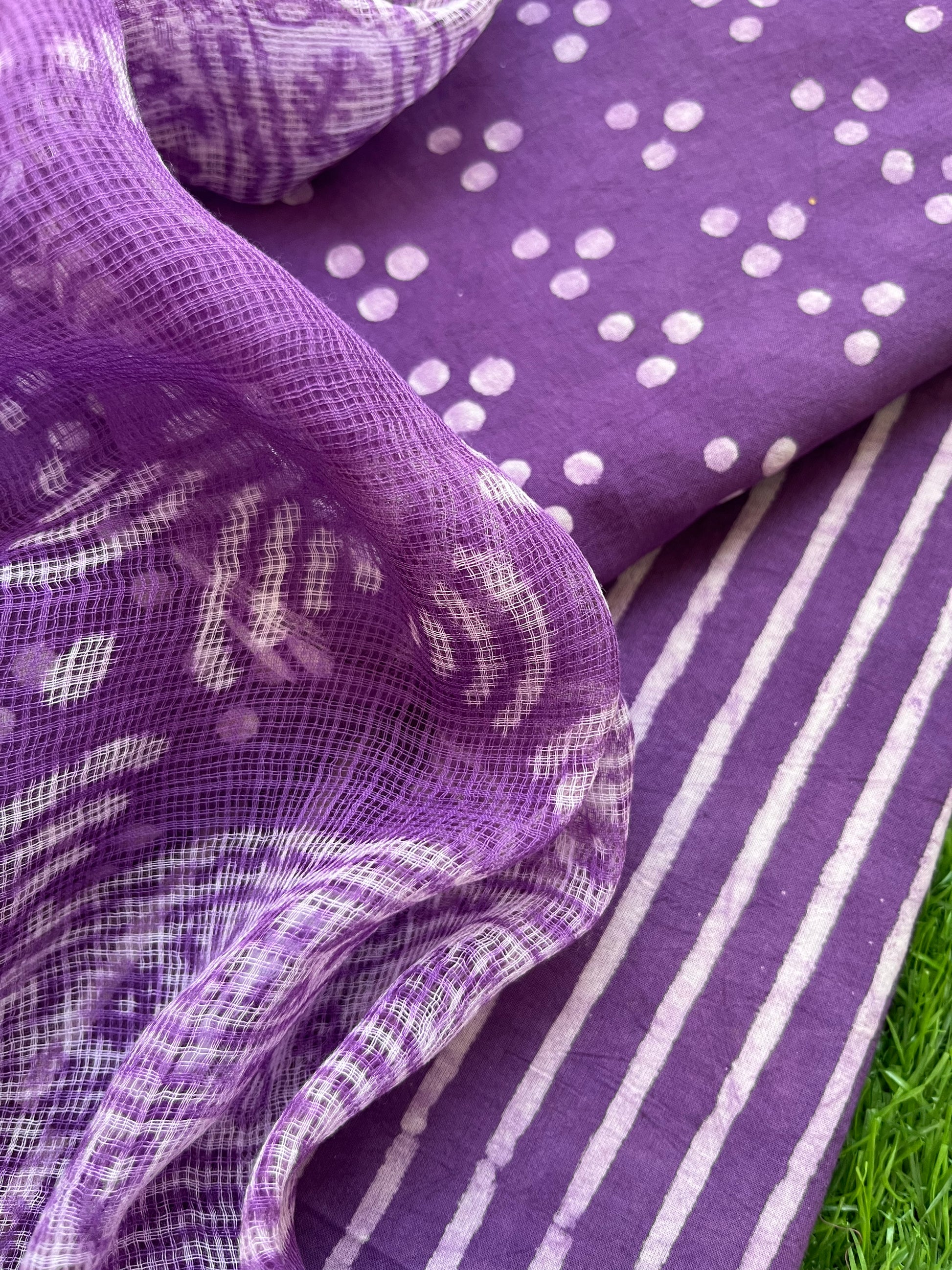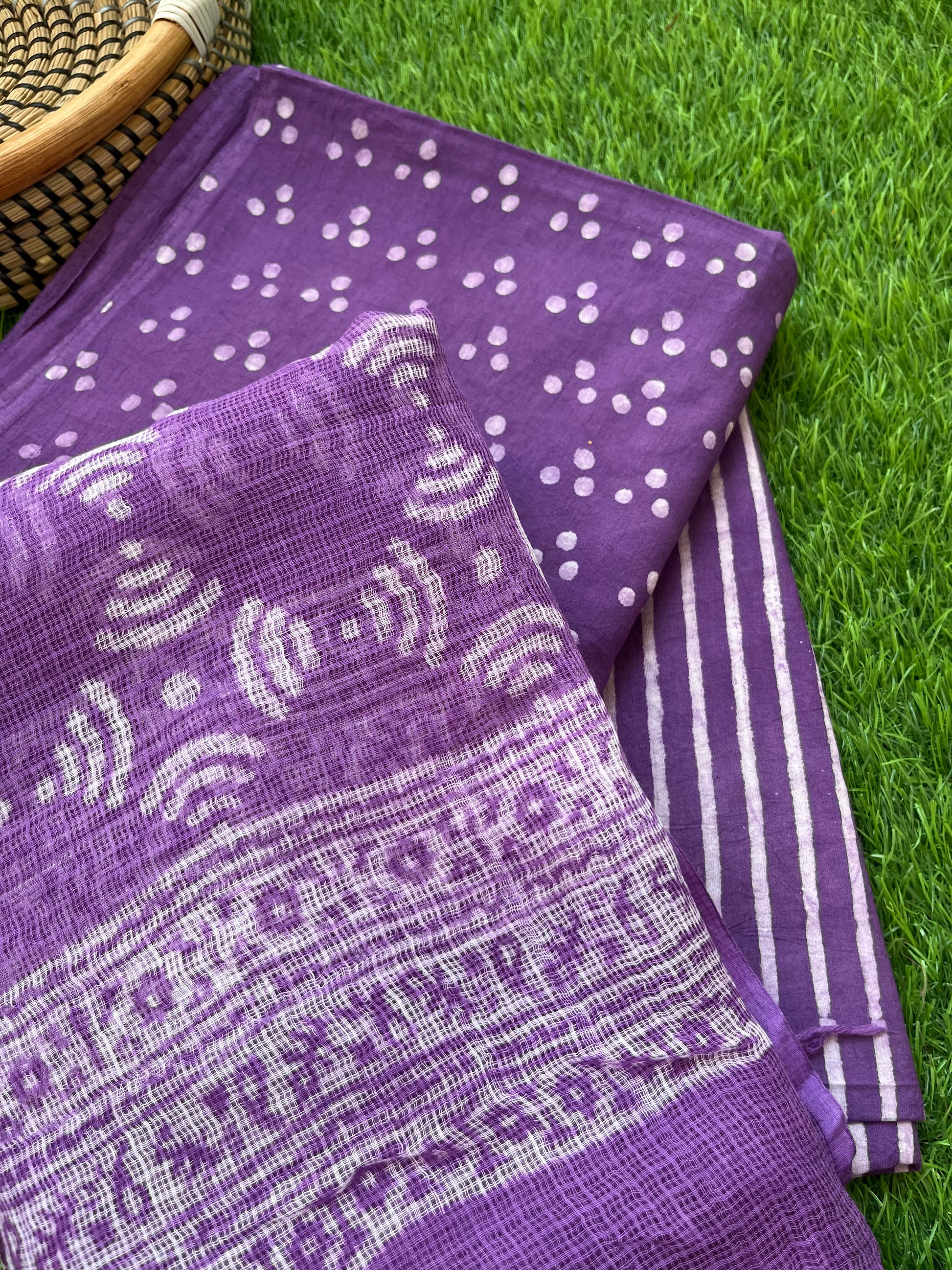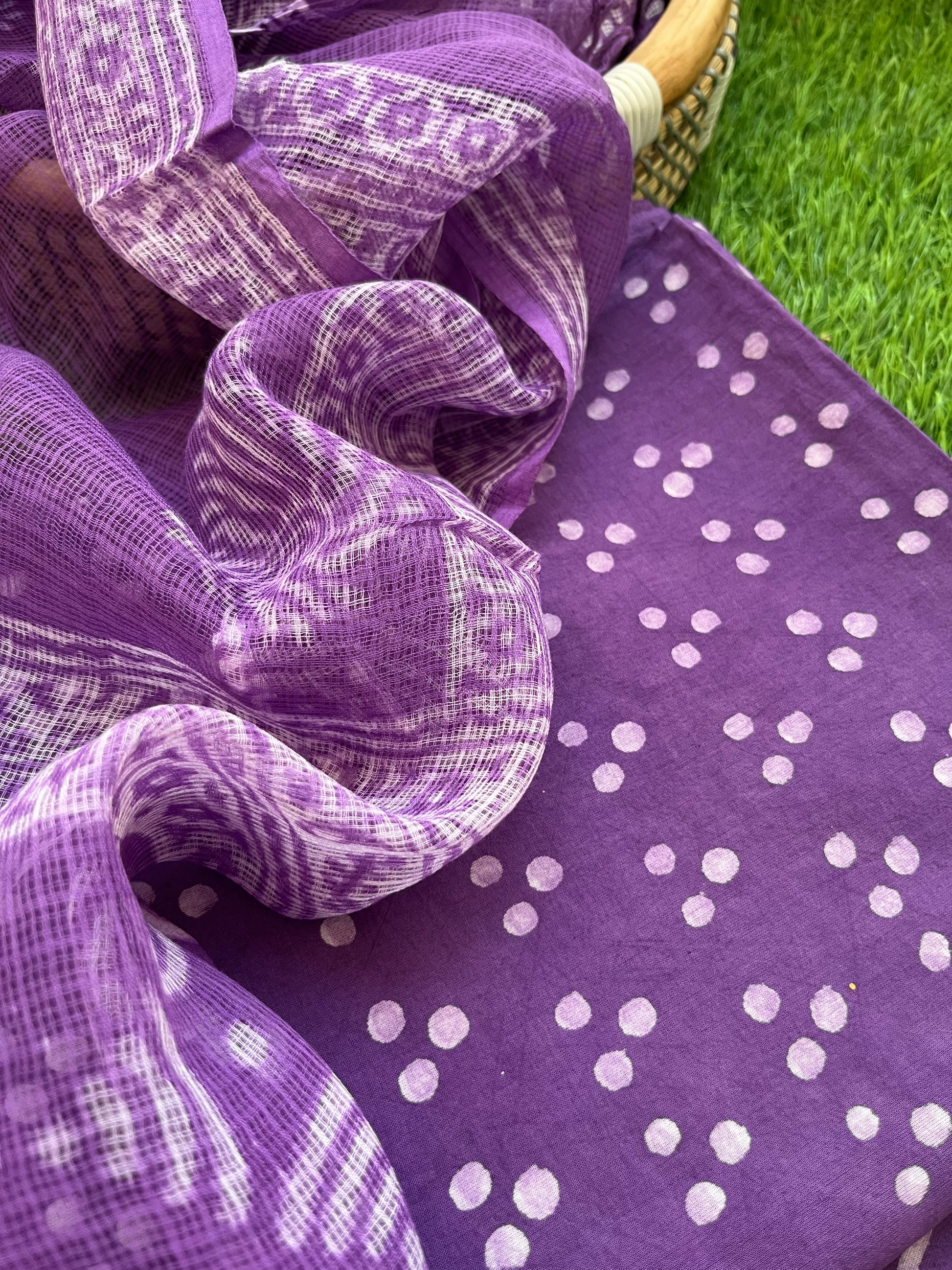 Pure kota doria block print dupatta and cotton Kurta and bottom fabric set