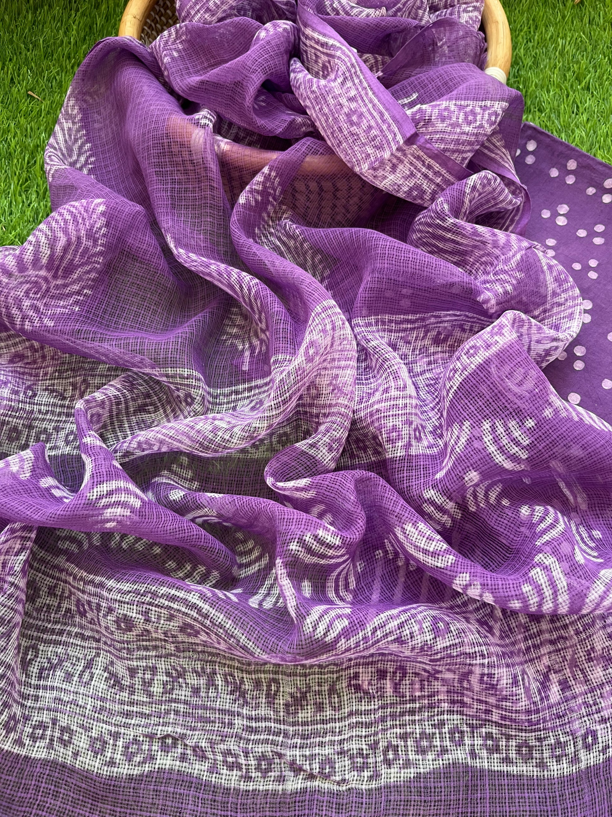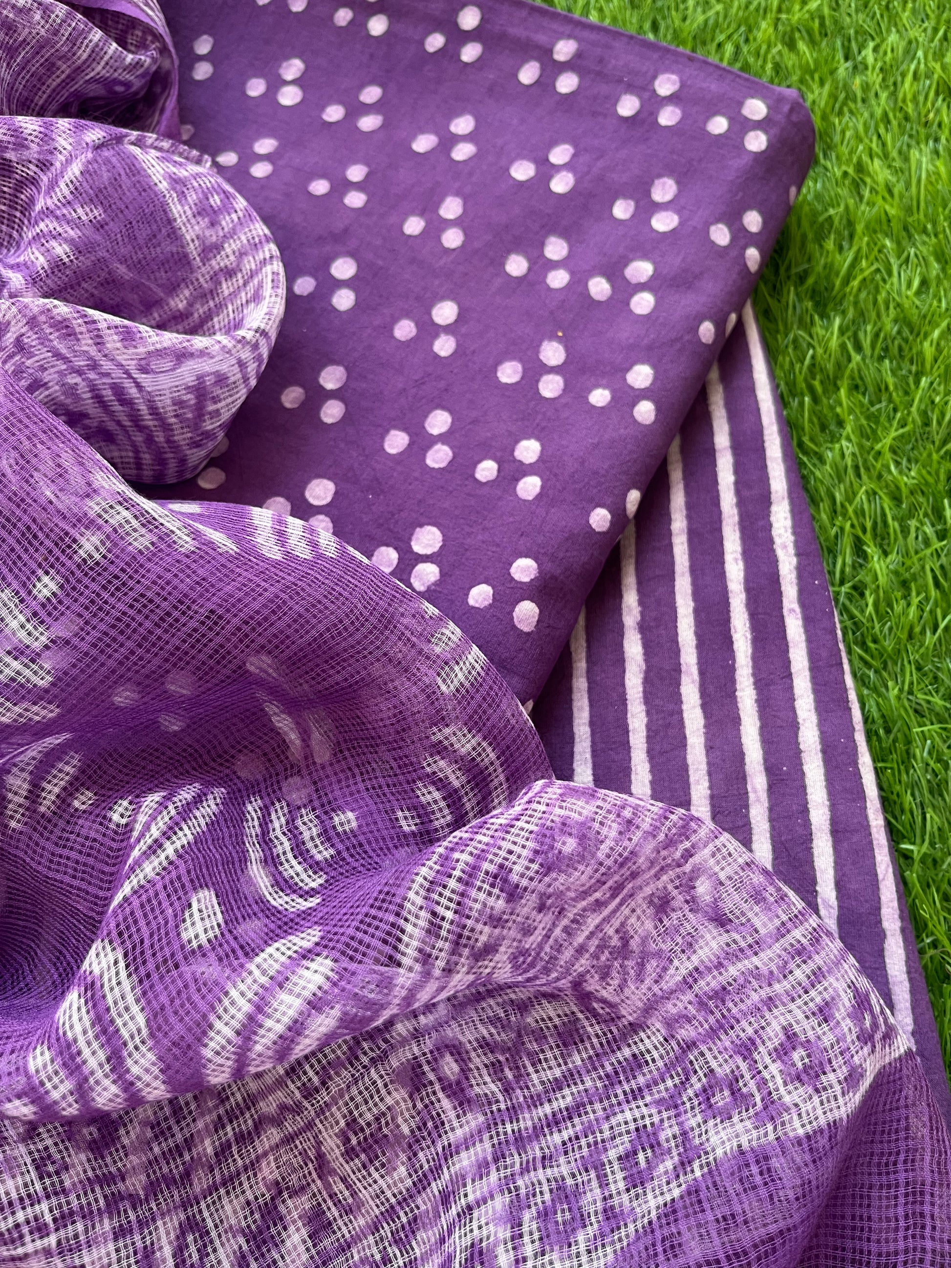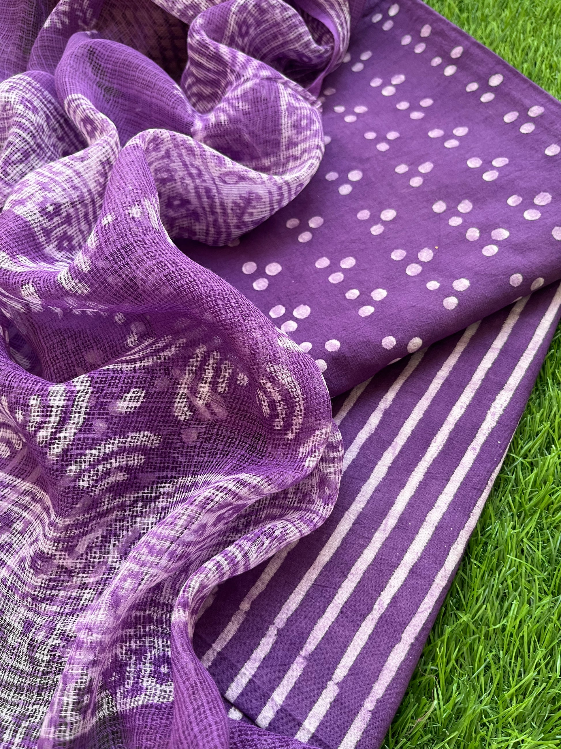 Pure kota doria block print dupatta and cotton Kurta and bottom fabric set