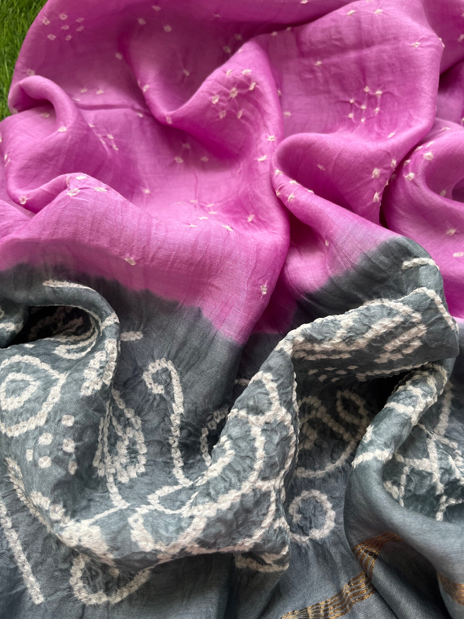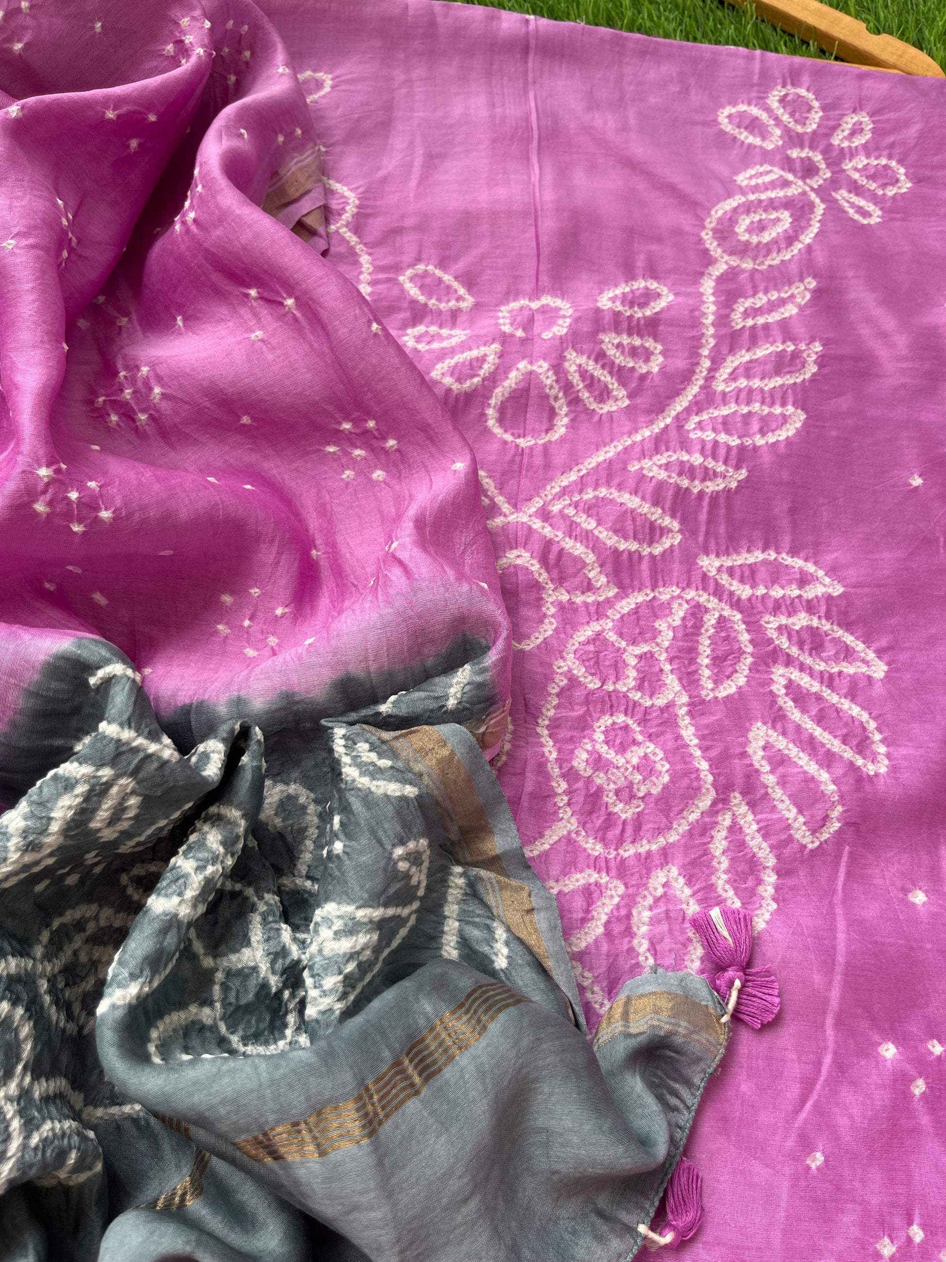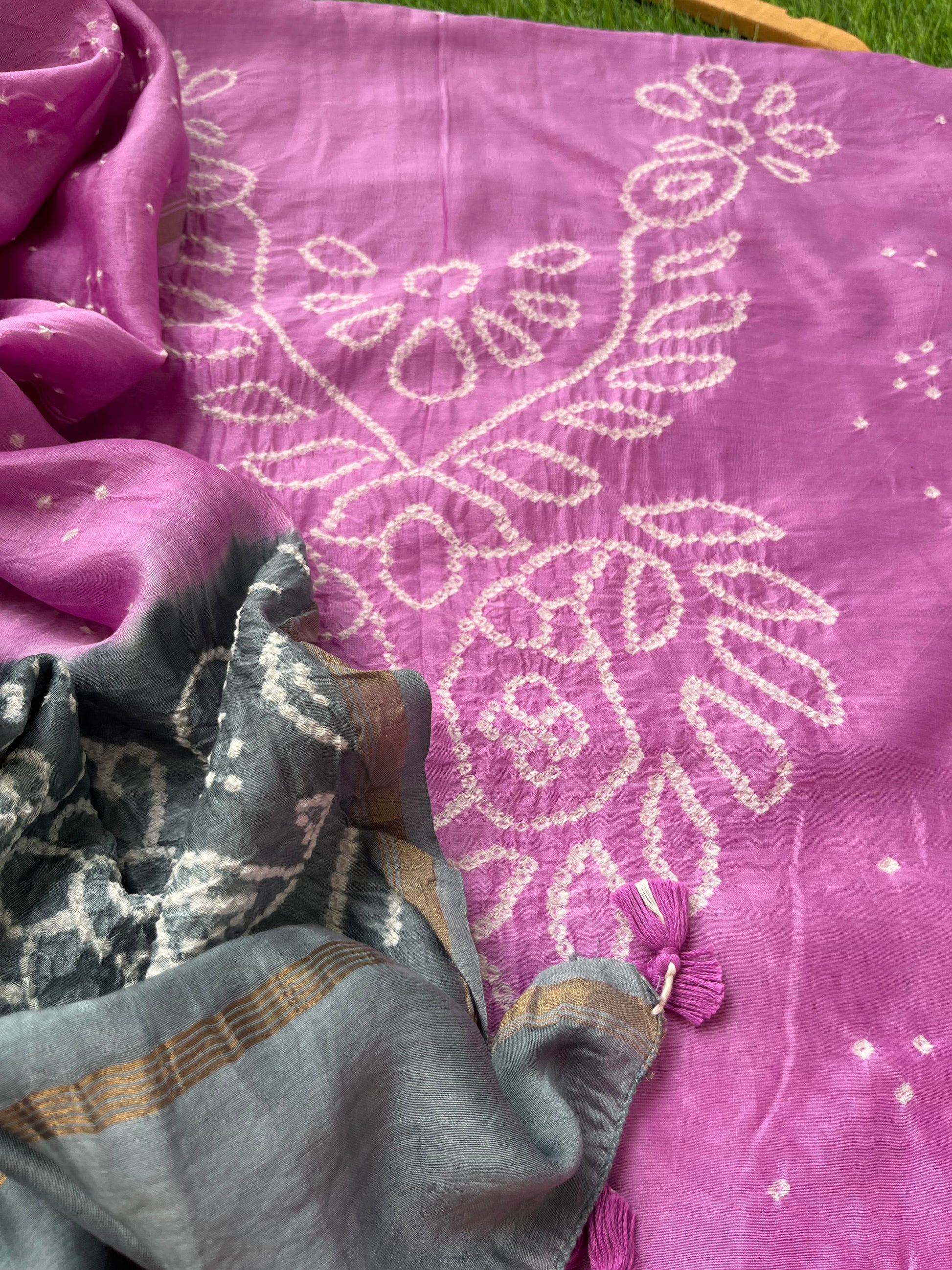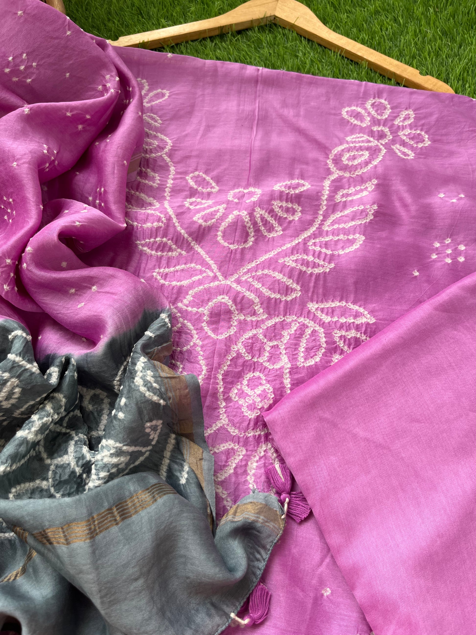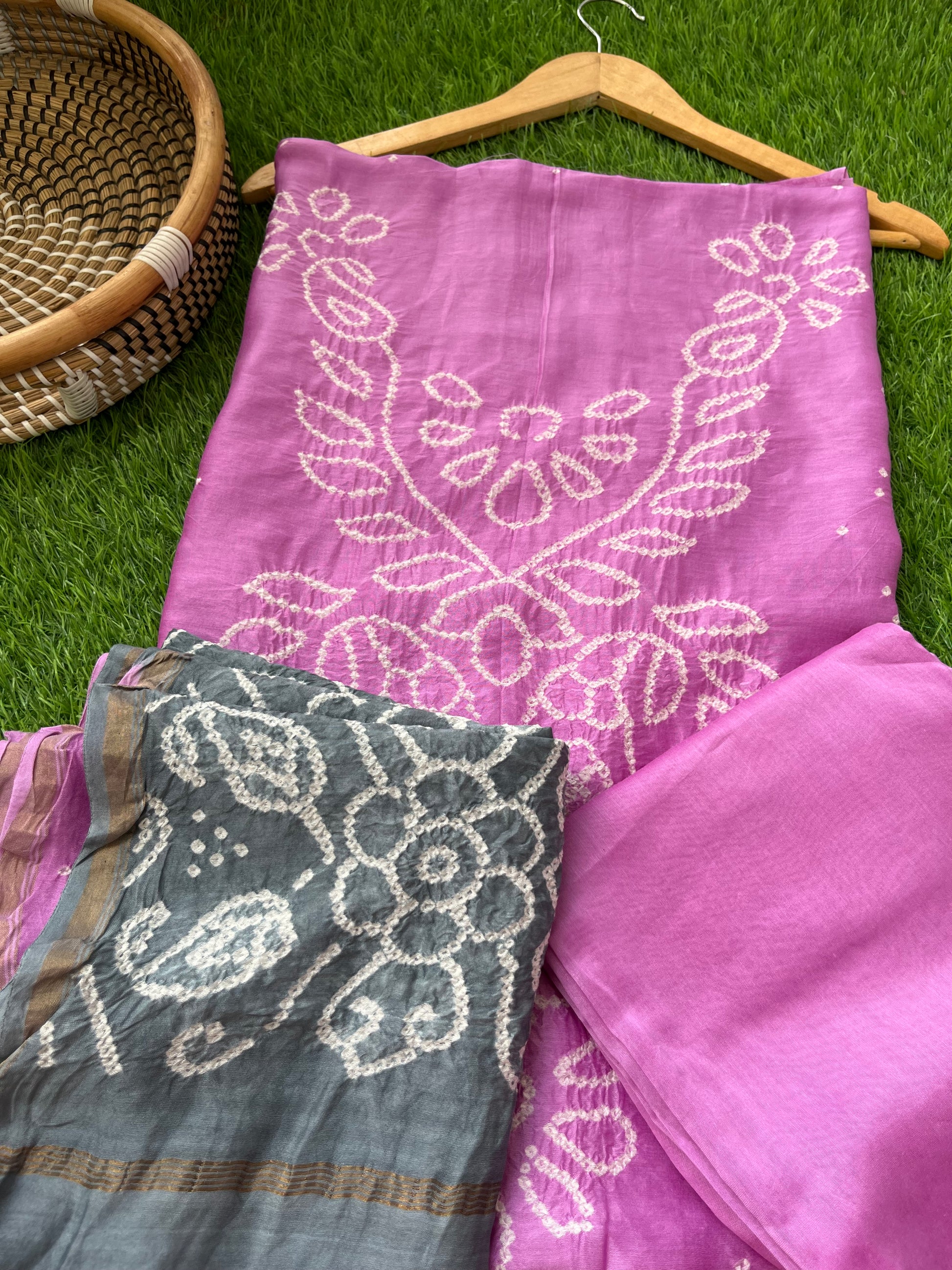 Chanderi Bandhani Kurta Dupatta plain Bottom