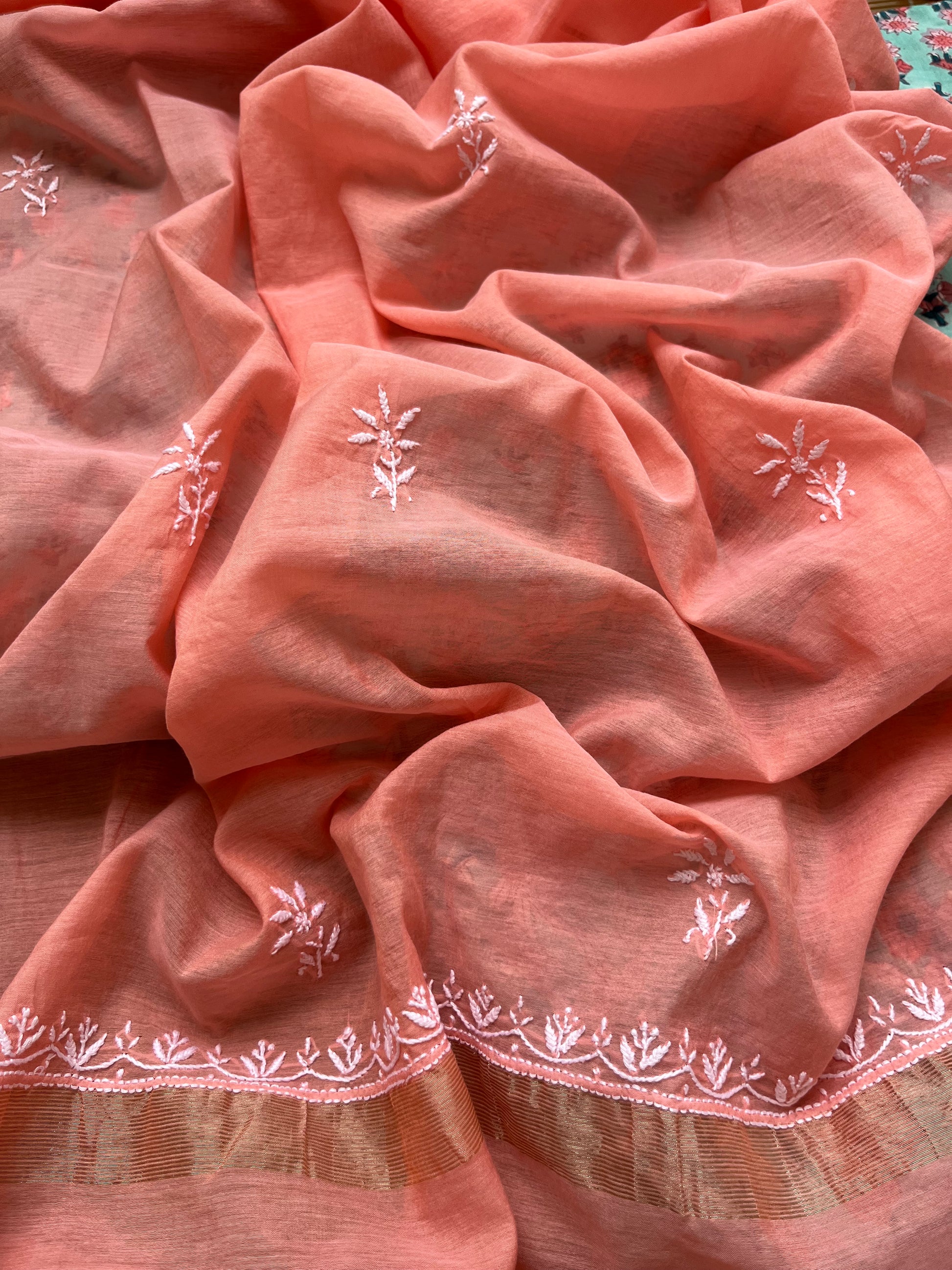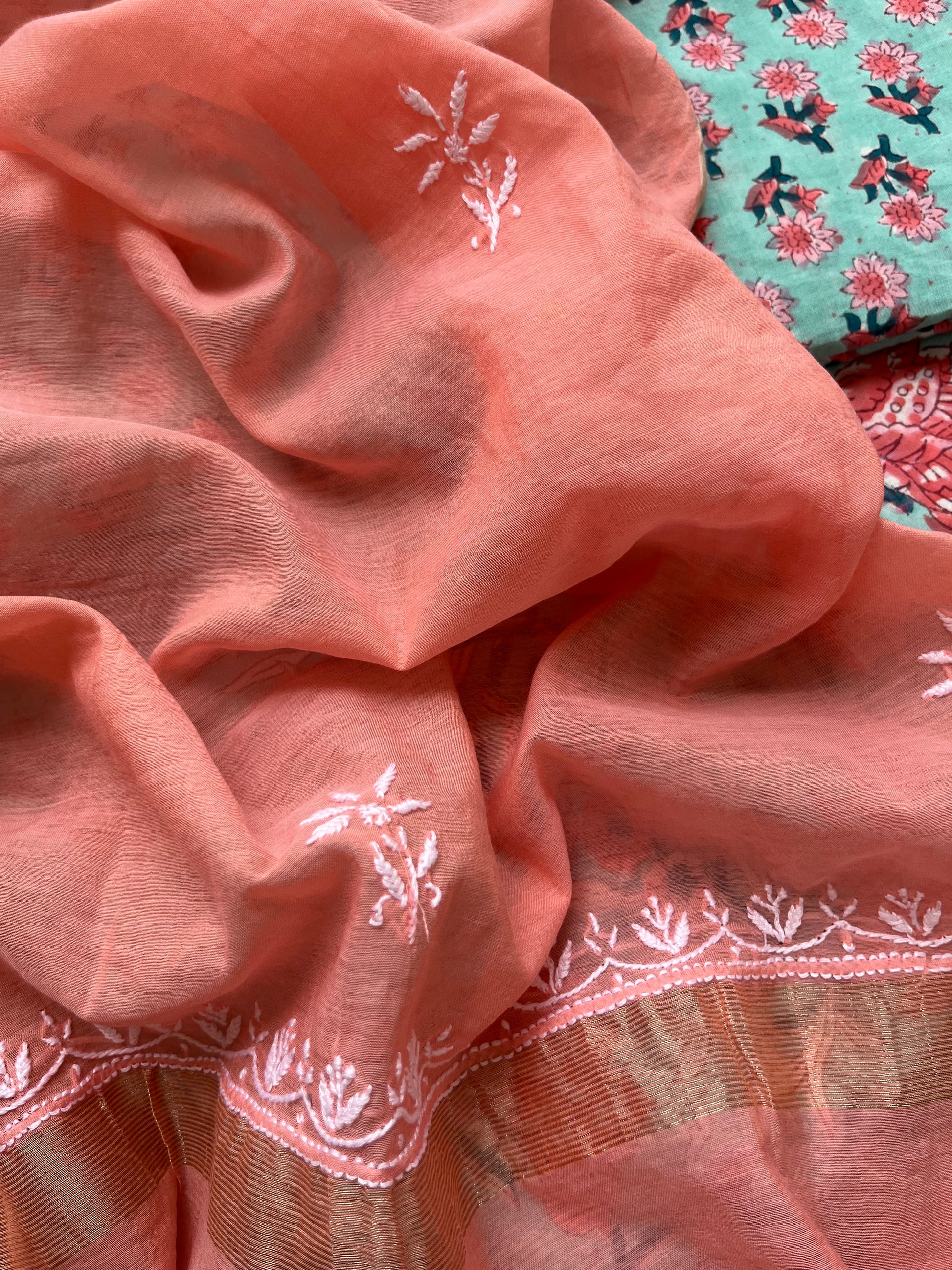 Chanderi Chikankari Dupatta with print kurta bottom Fabric