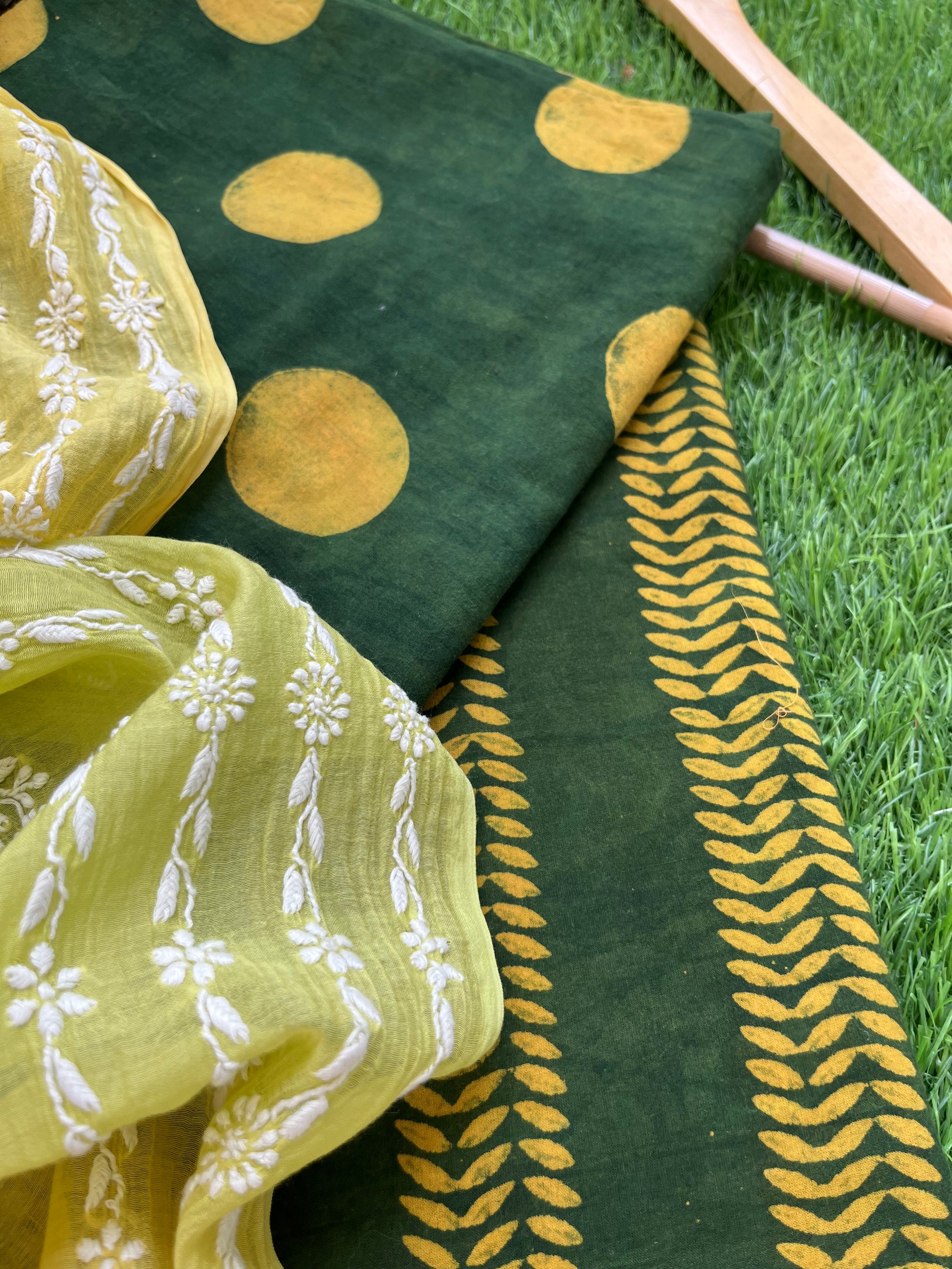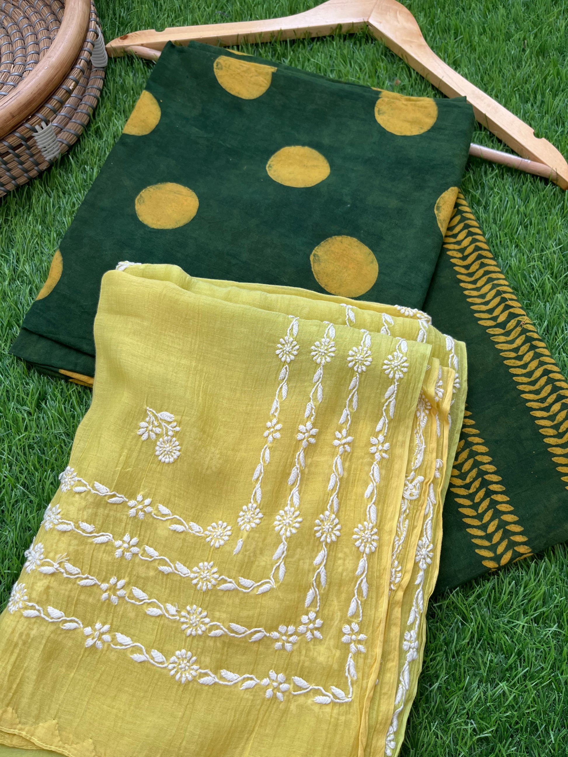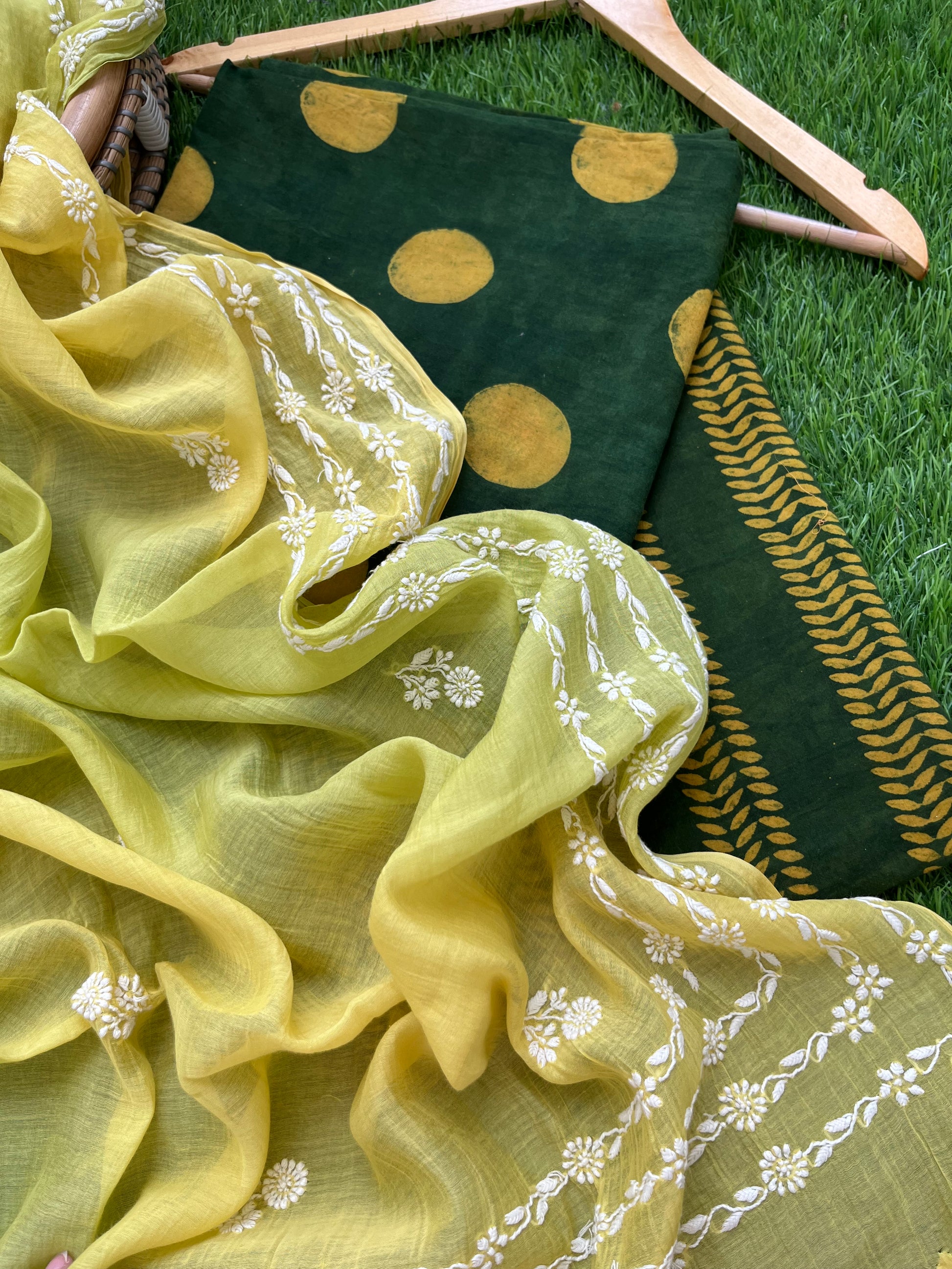 Cotton block print kurta bottom fabric paired with a chanderi chikankari Dupatta