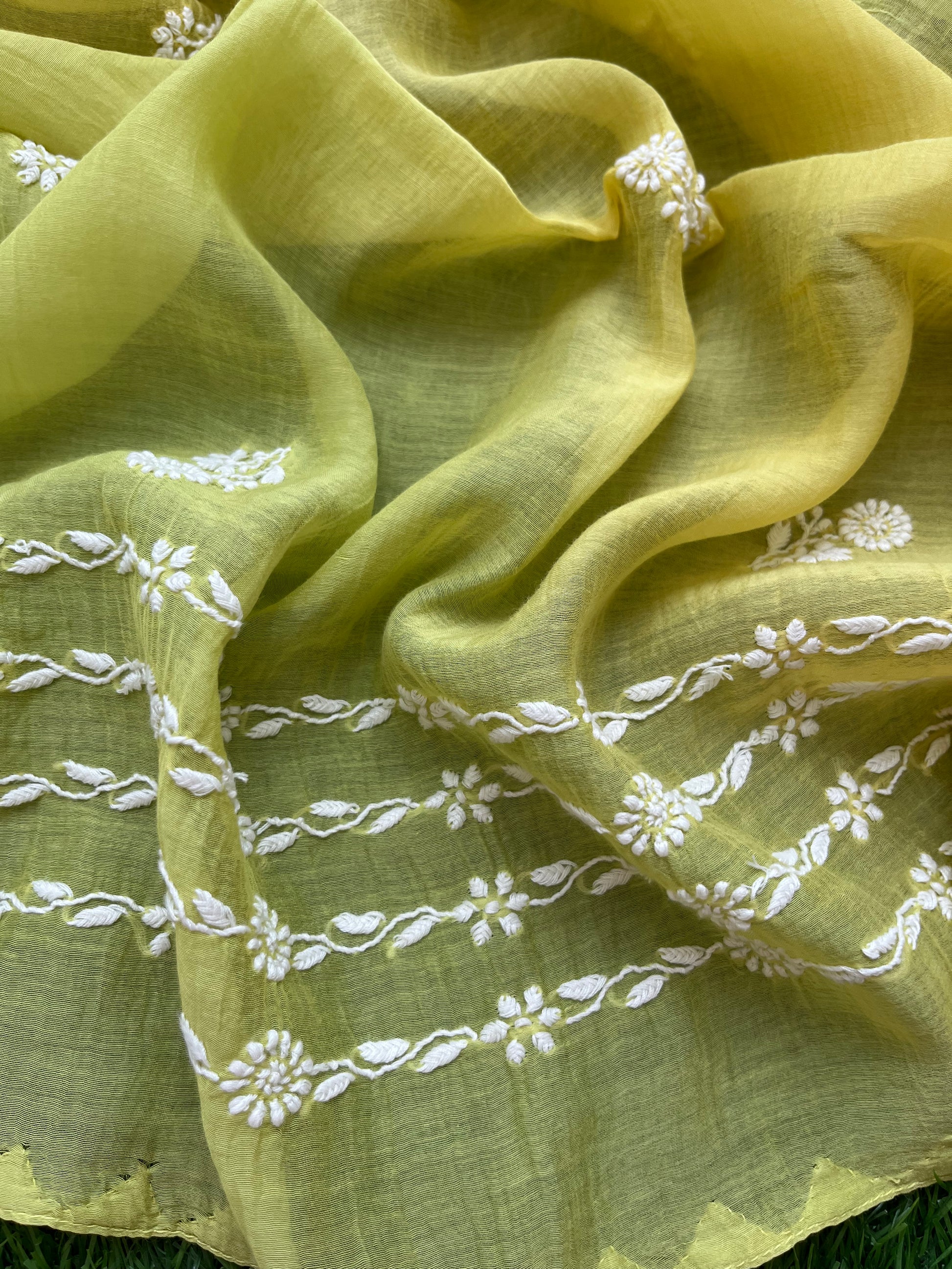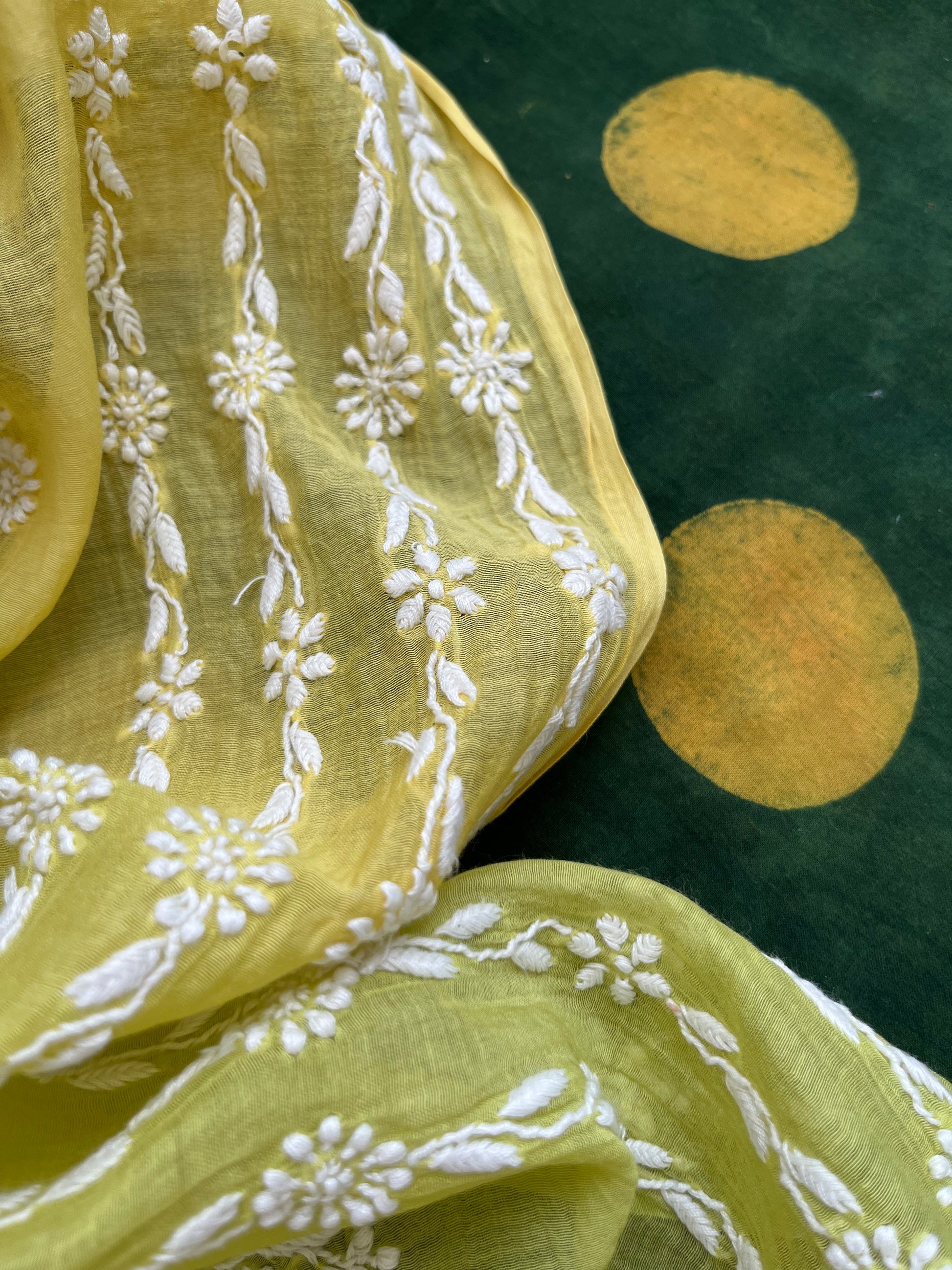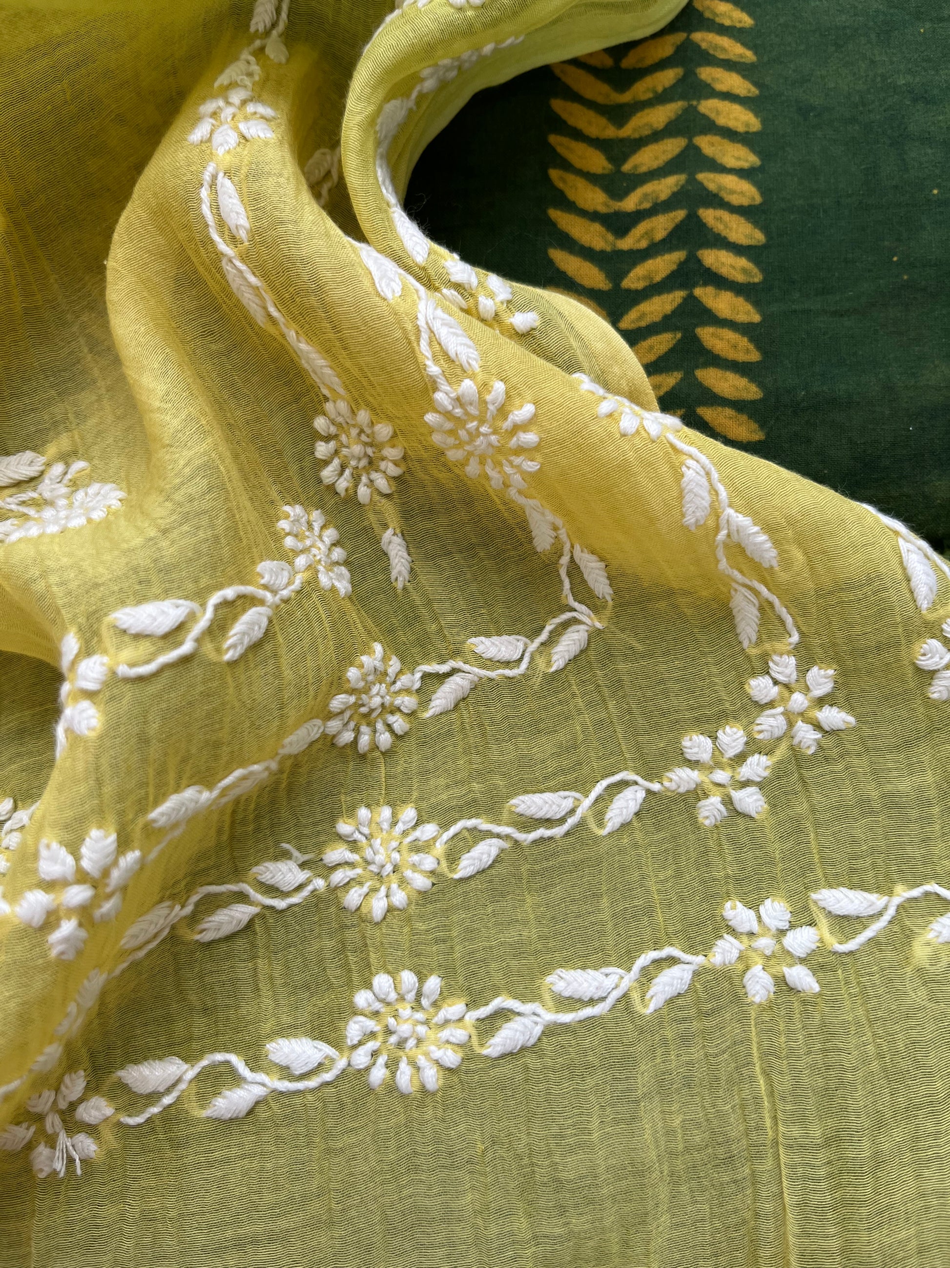 Chanderi Chikankari Dupatta with print kurta bottom Fabric