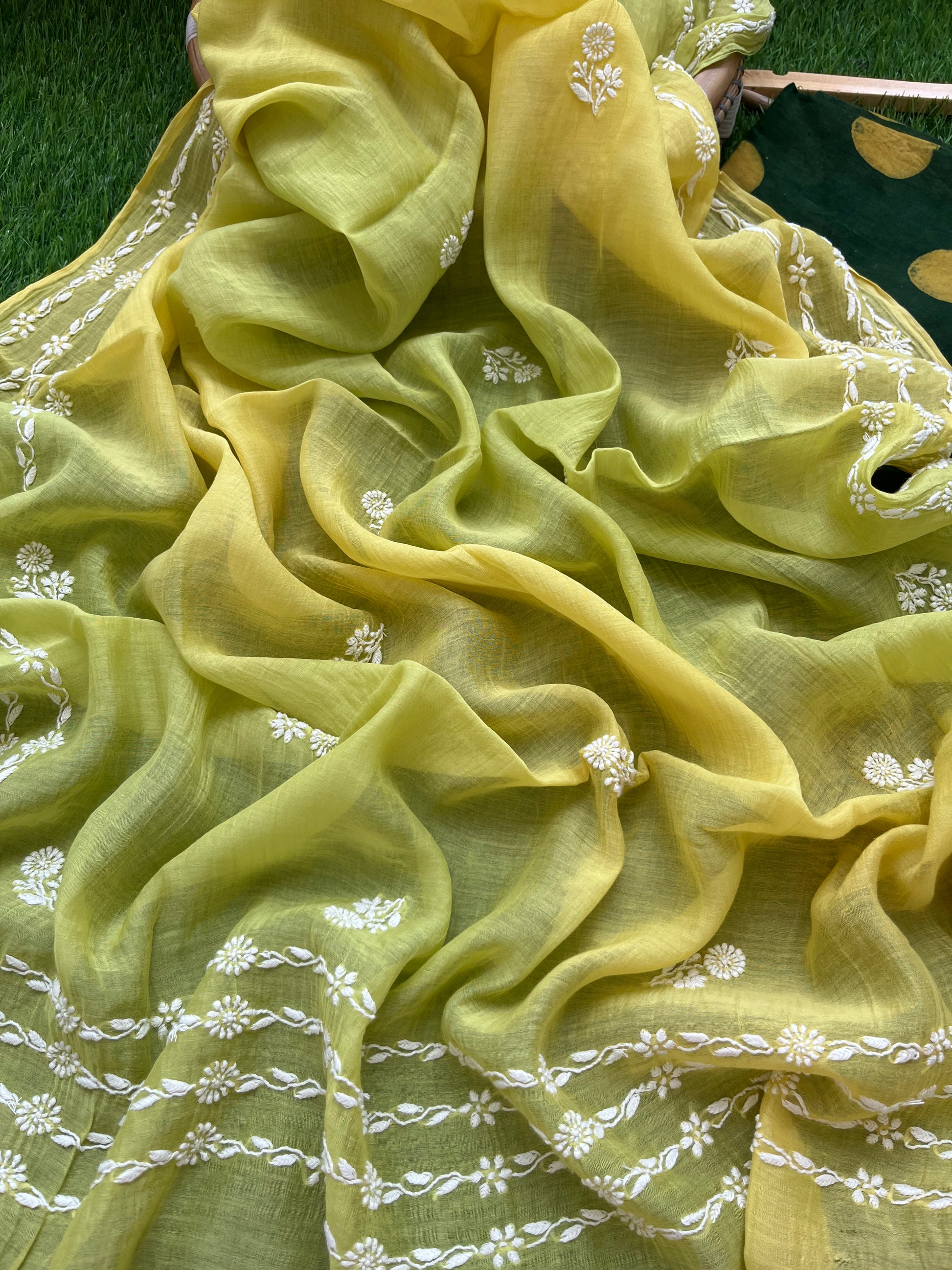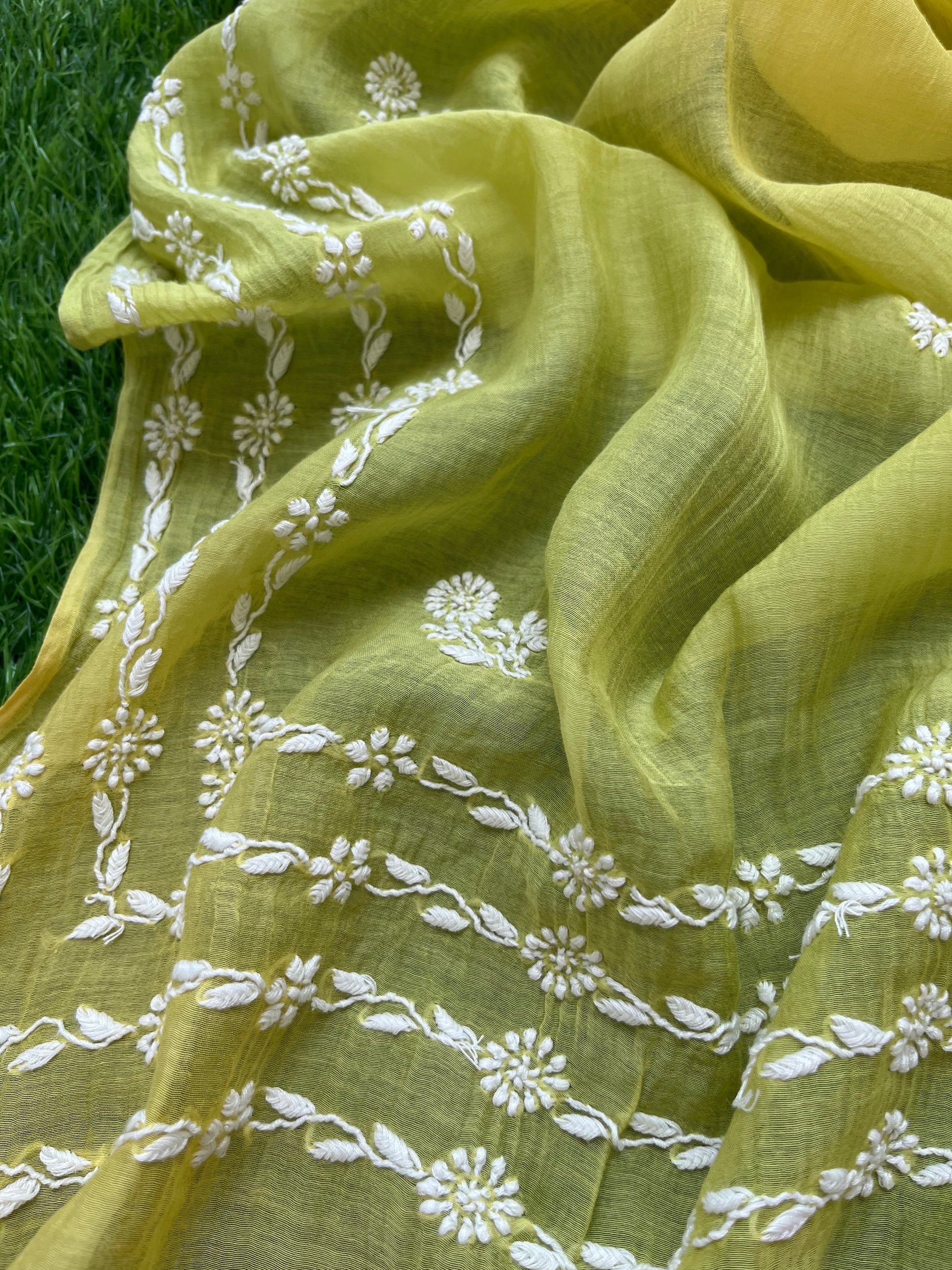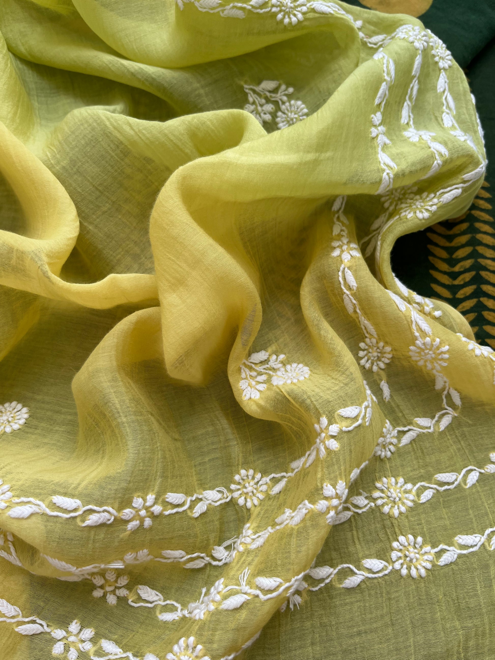 Chanderi Chikankari Dupatta with print kurta bottom Fabric