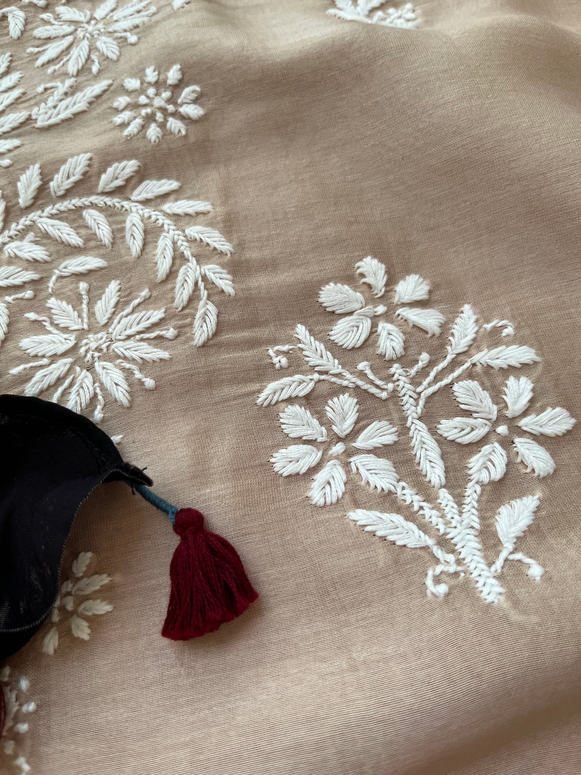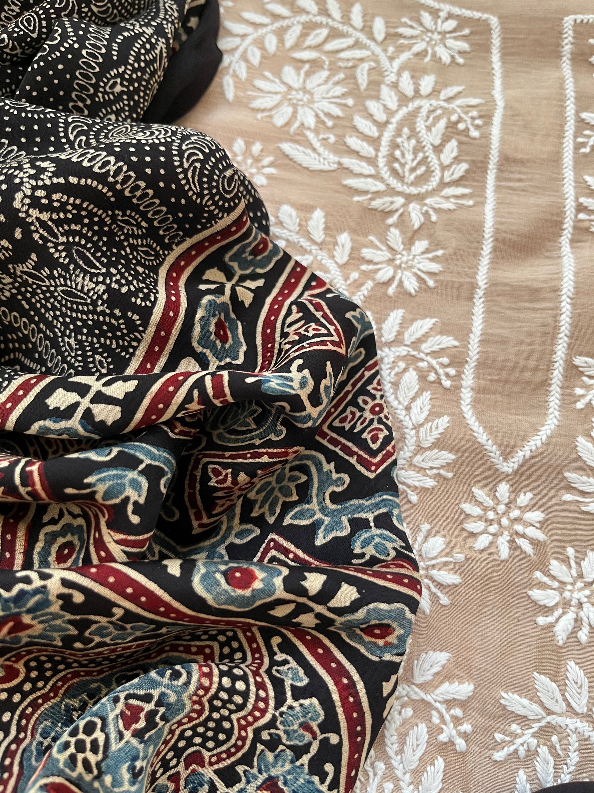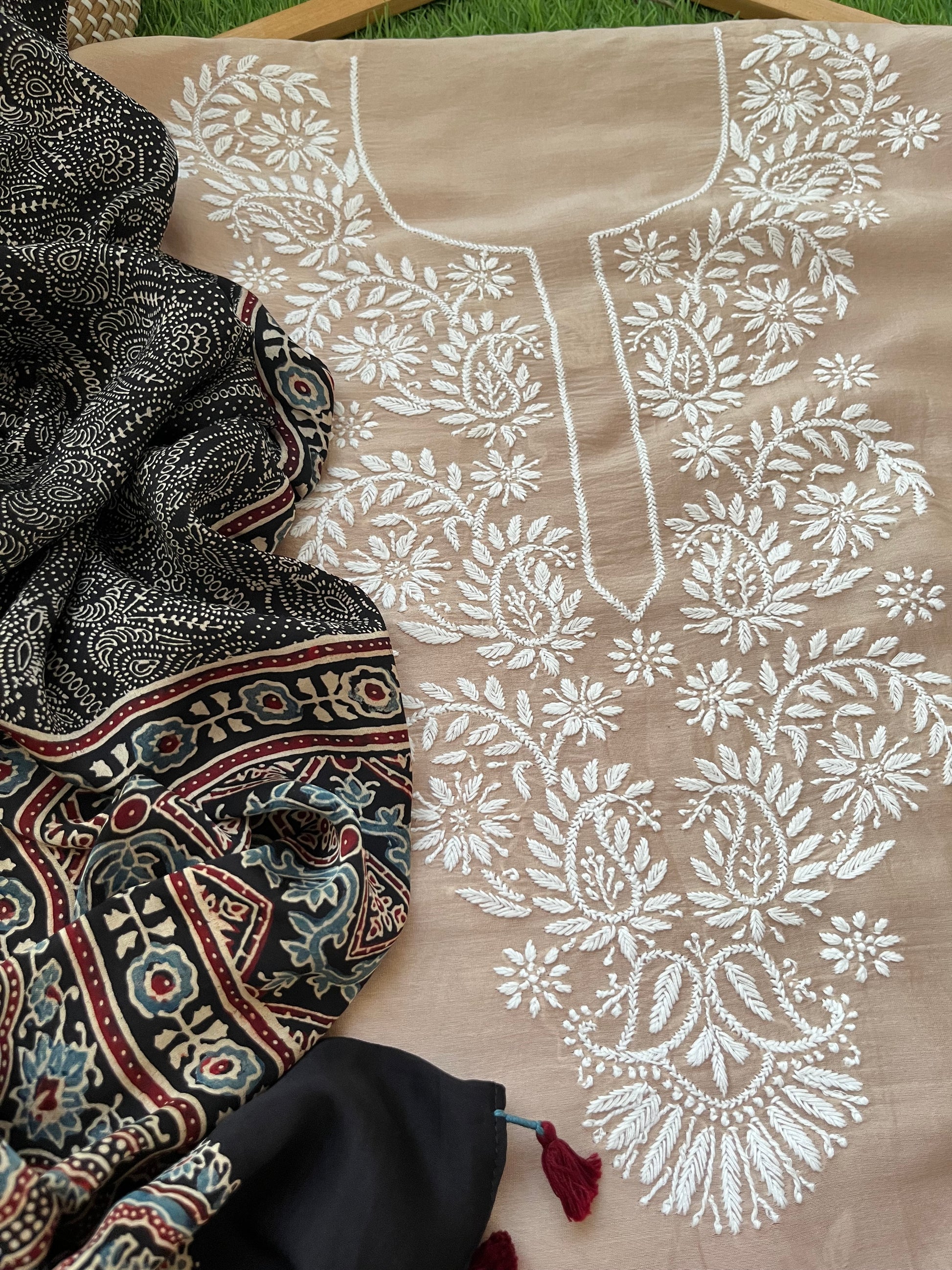 chanderi chikankari kurta Paired with a ajrakh dupatta