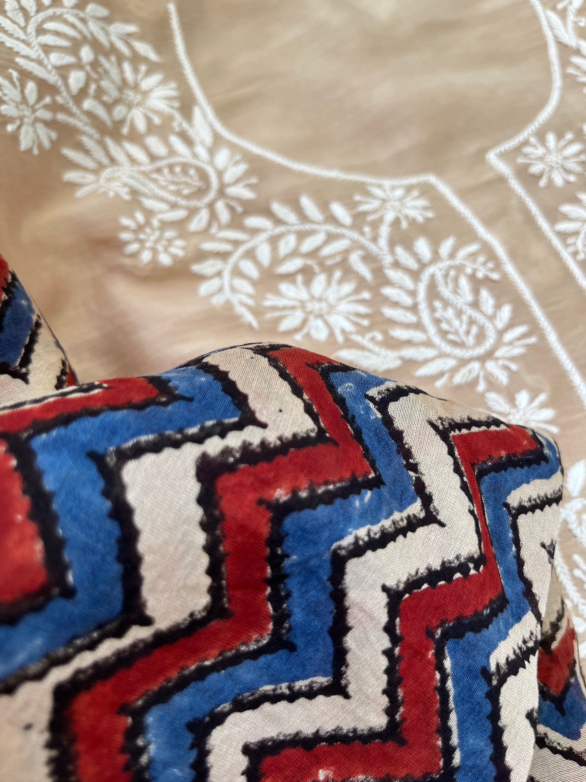 Chanderi Chikankari Kurta ajrakh Dupatta
