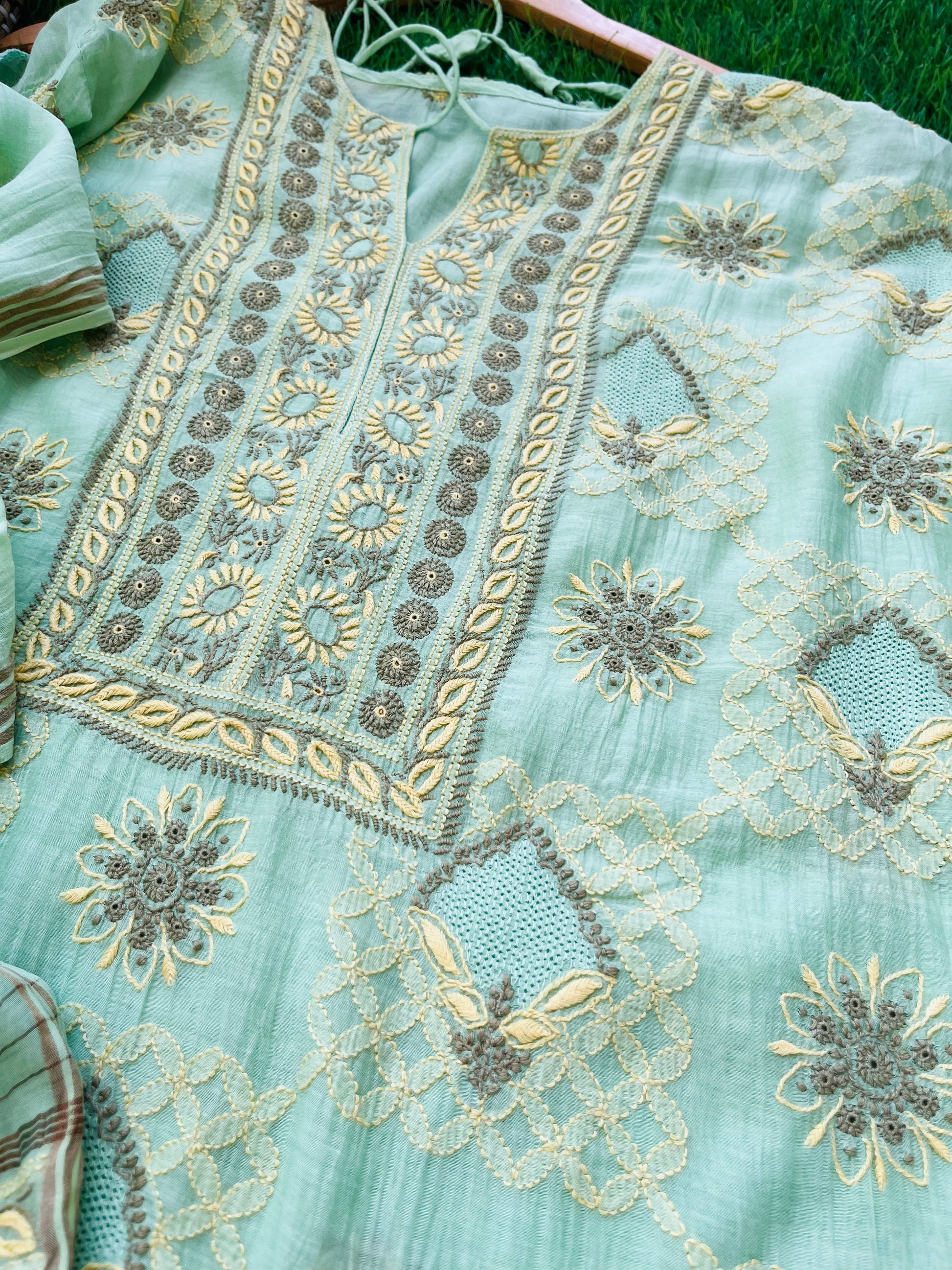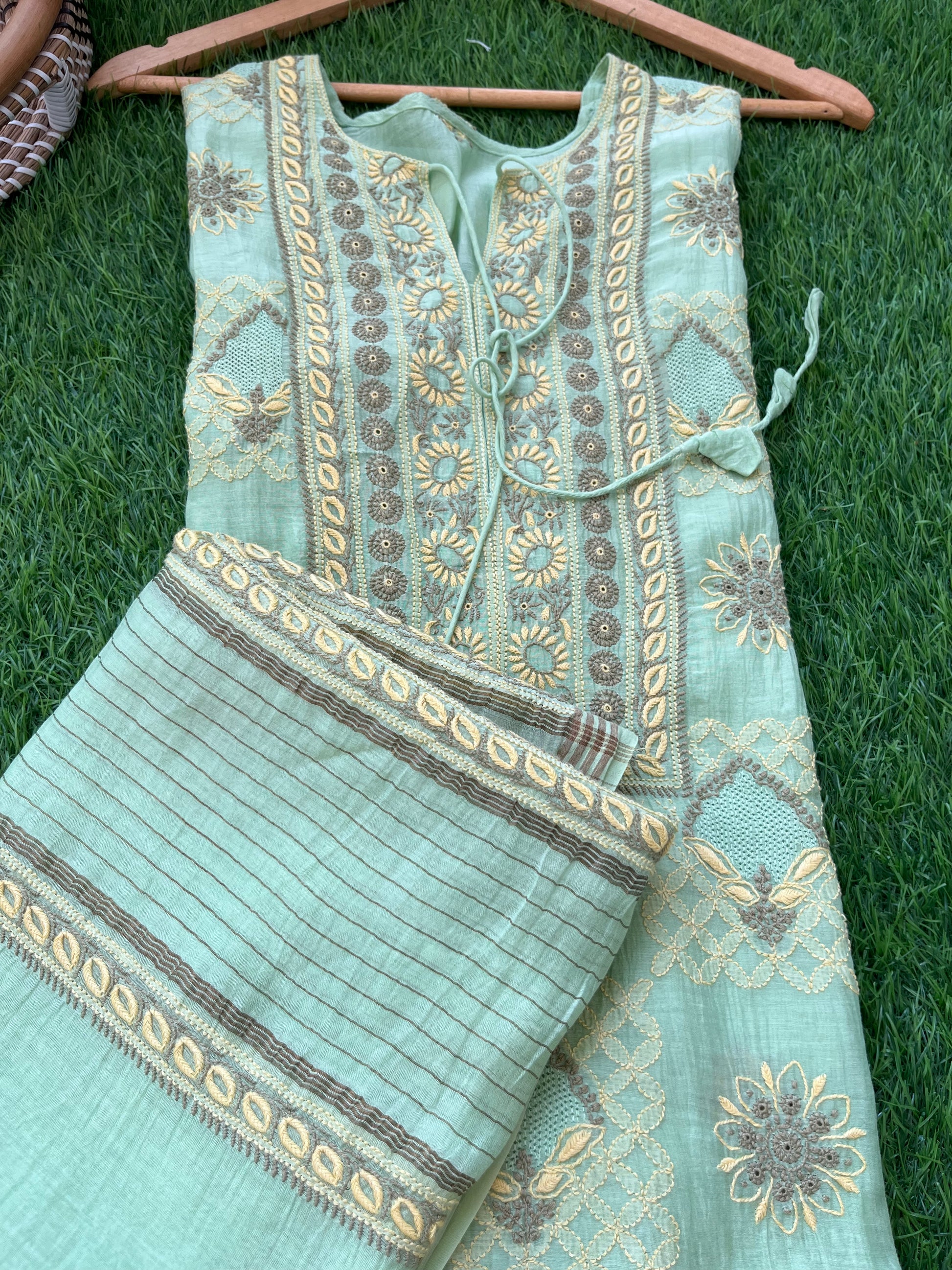 ✨Delicate Chikankari on soft chanderi hues of grace,