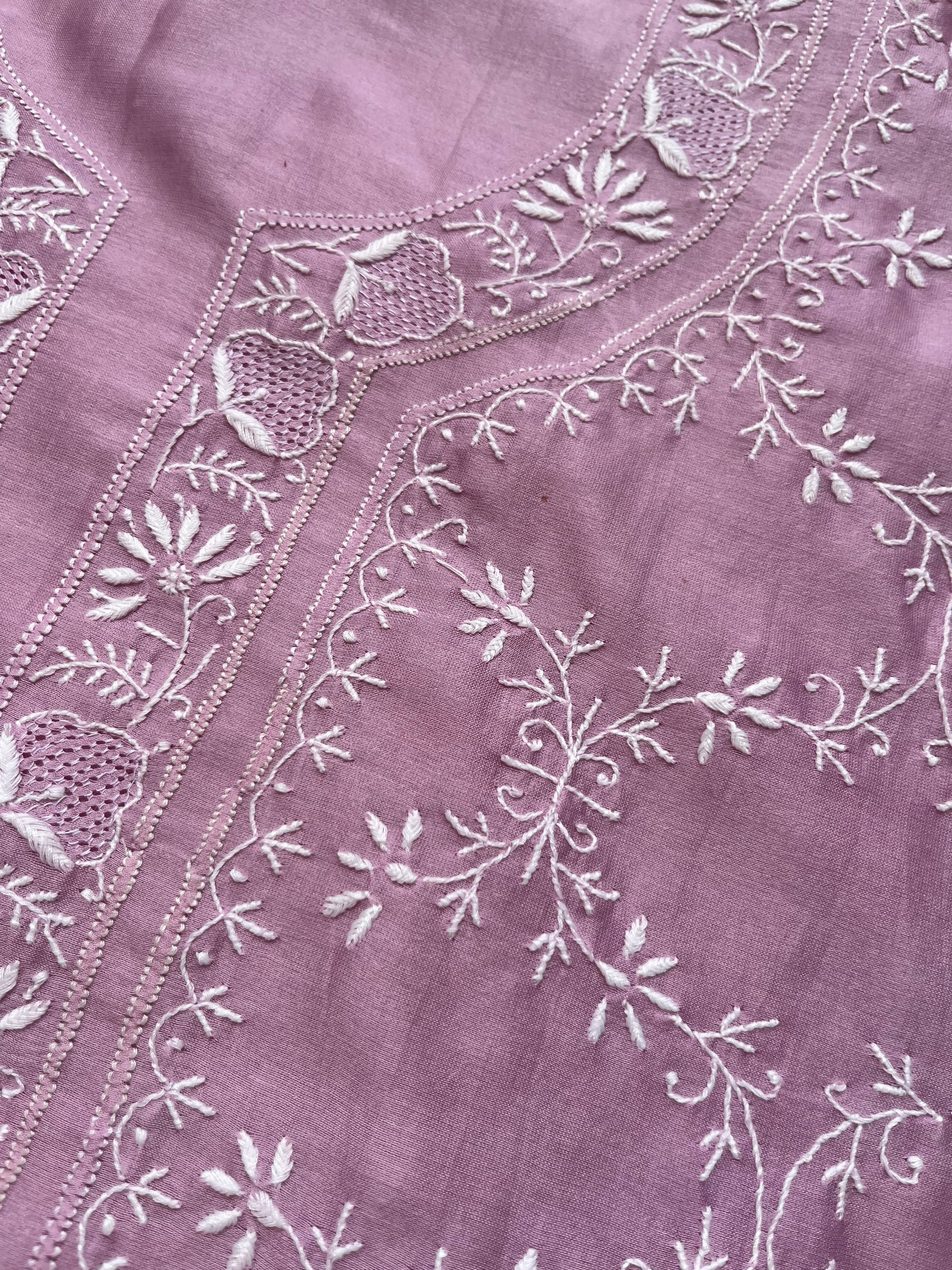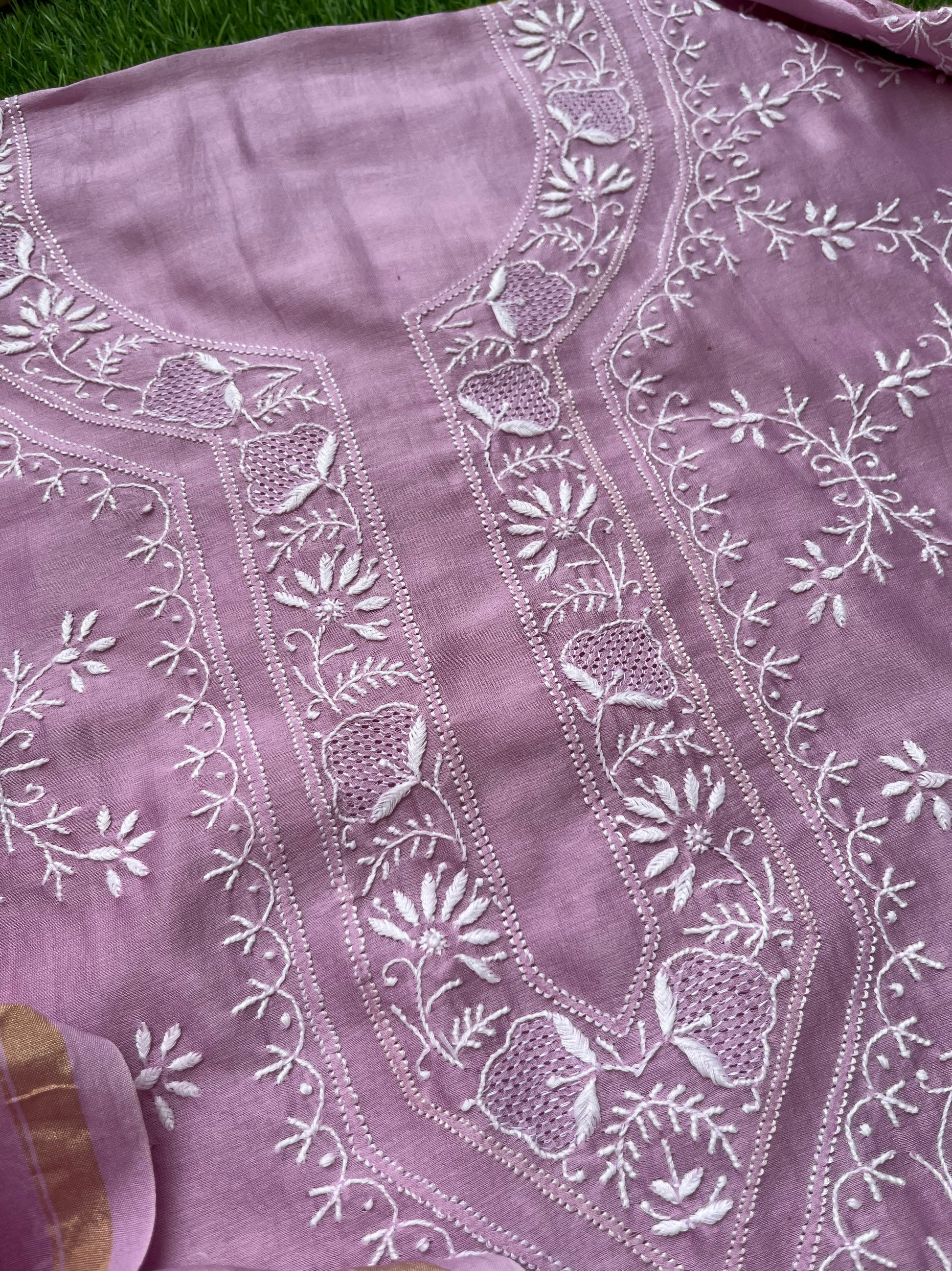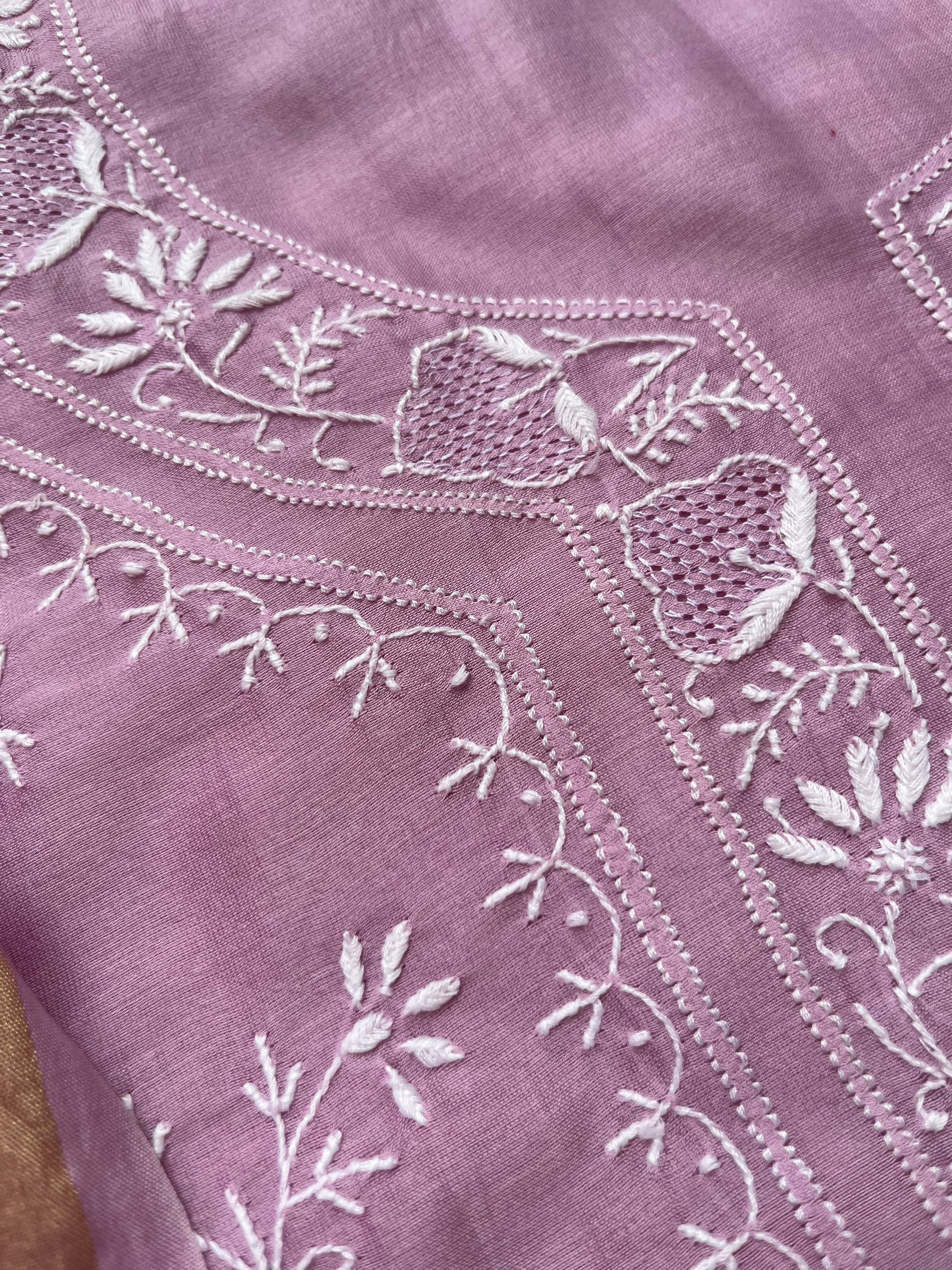 Chanderi chikankari kurta dupatta. Kurta has work all over front sleeves has hemline and boities .