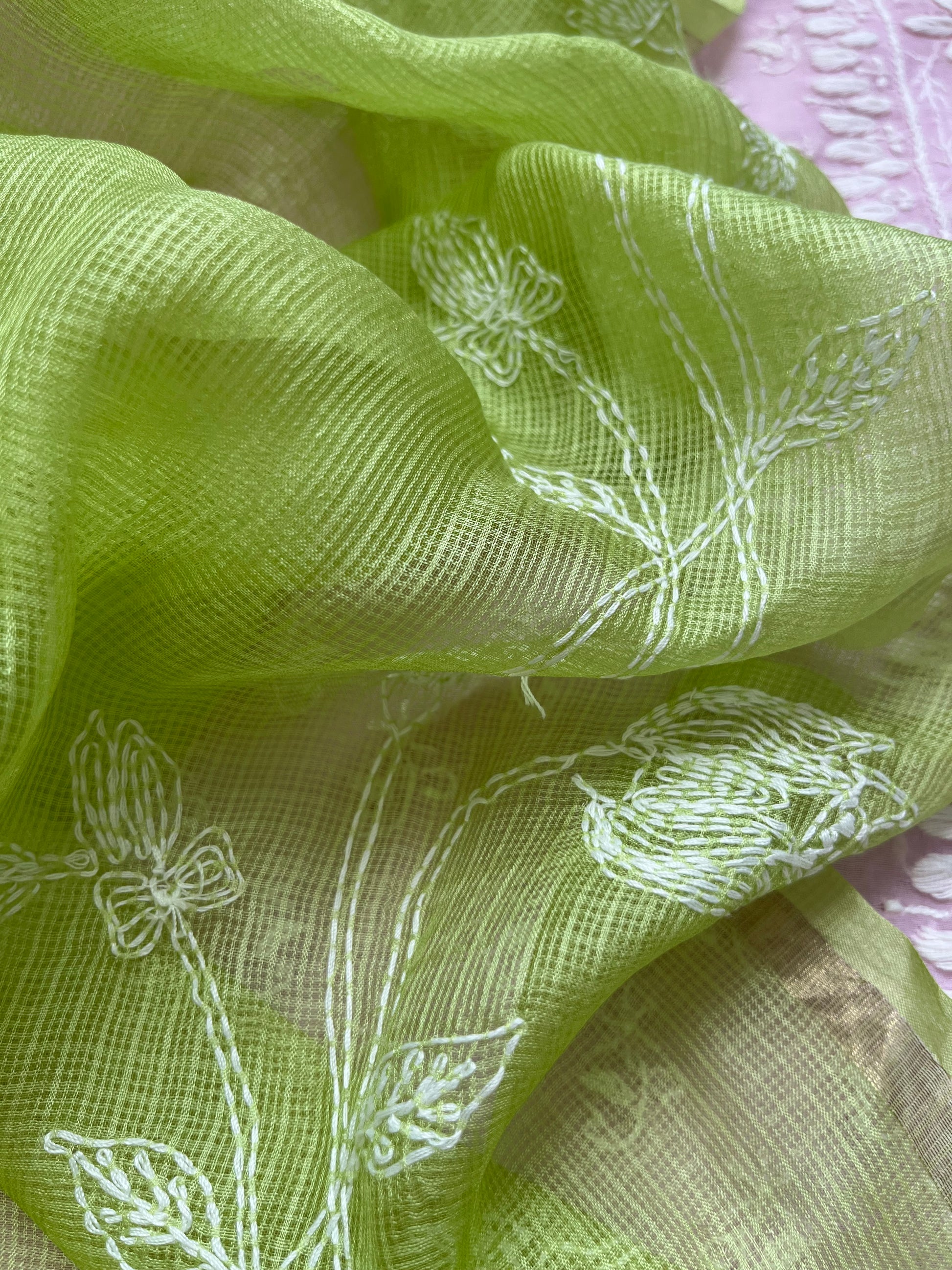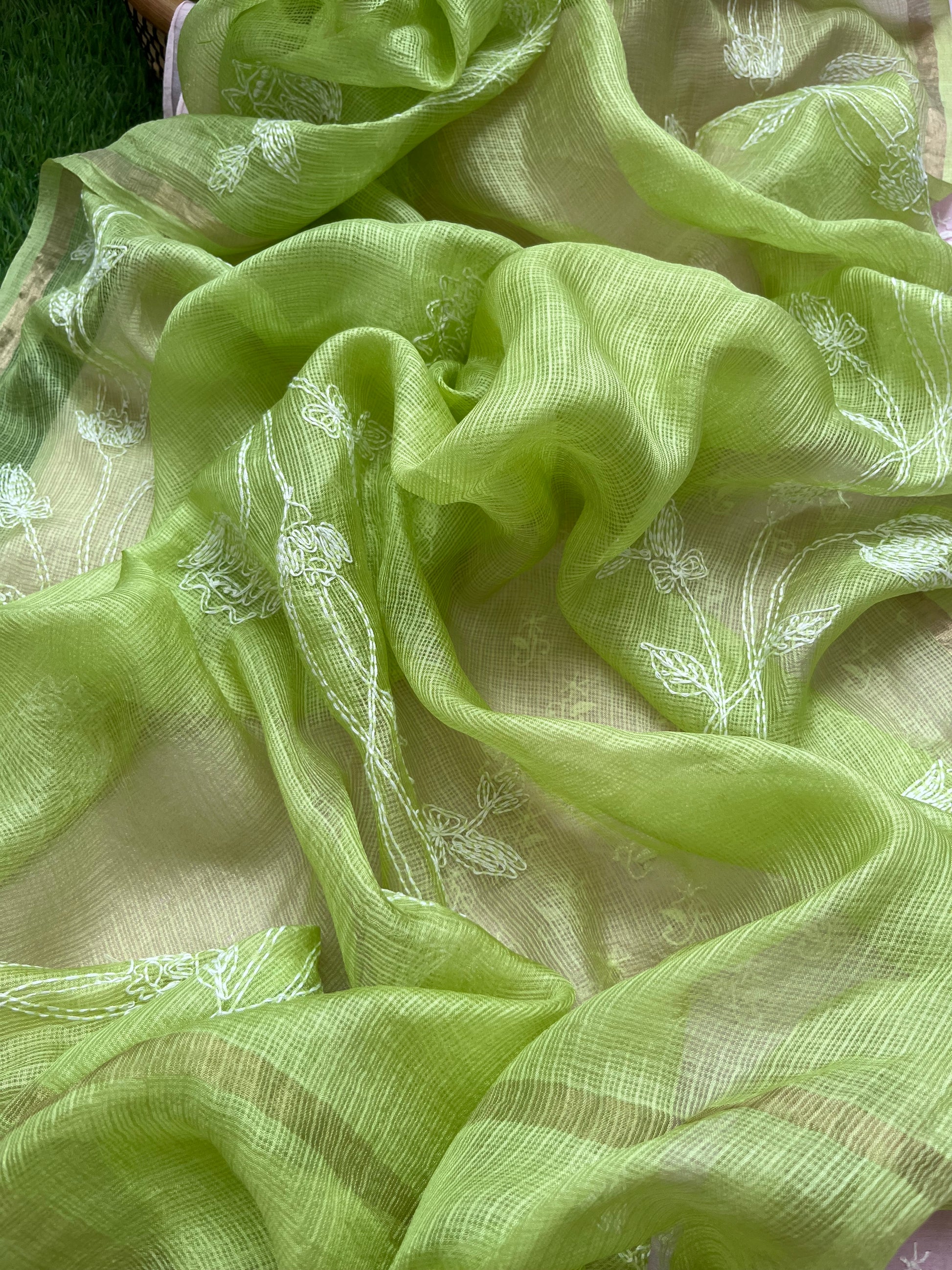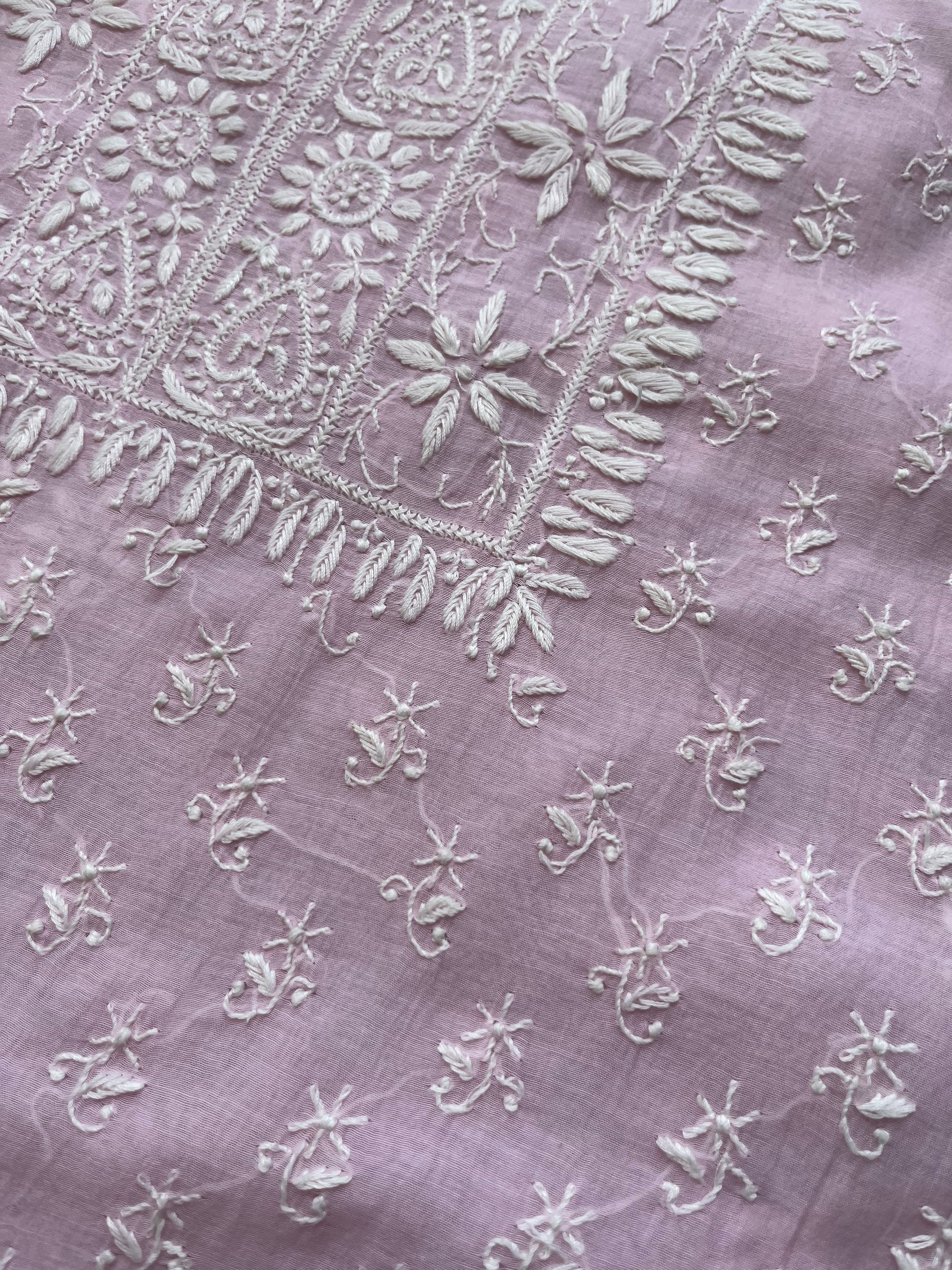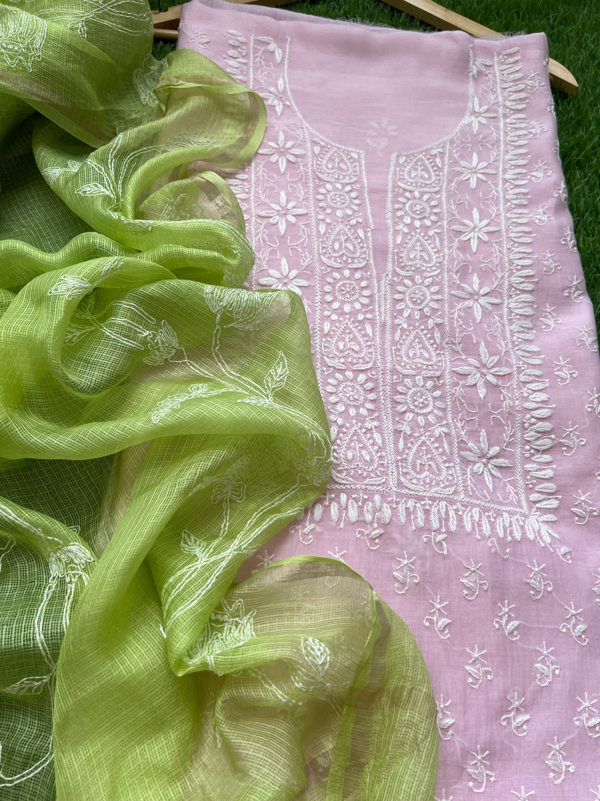 Chanderi chikankari kurta. Kurta has worl all over front sleeves has hemline and boities .with a kota silk tepchi work dupatta