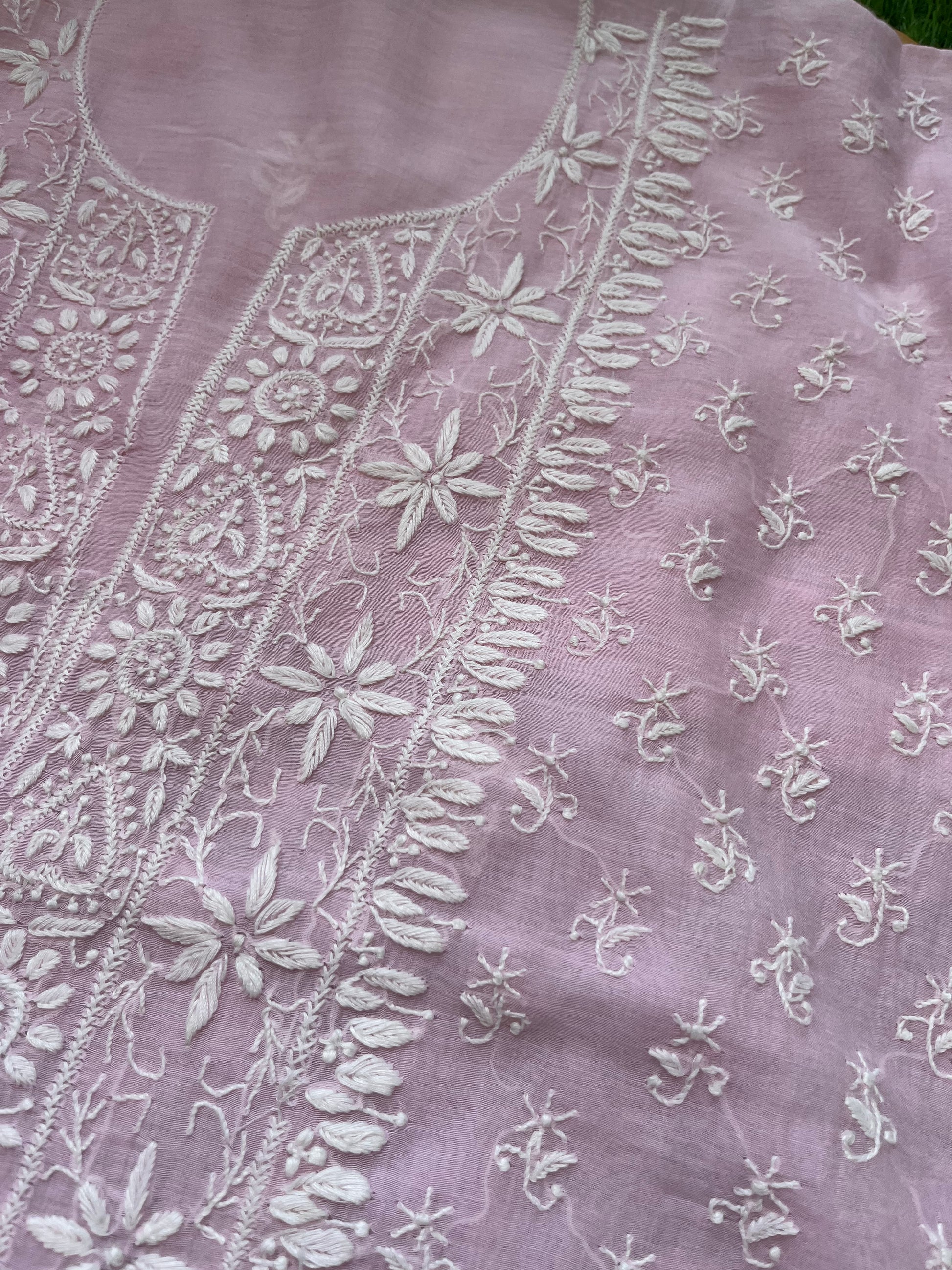 Crafted in rich Chanderi fabric, kurta is adorned with intricate Chikan embroidery, bringing out the timeless charm of Lucknowi craftsmanship. making it perfect for festive celebrations and special gatherings. Paired with a matching kota silk dupatta, this ensemble strikes the perfect balance between grace and sophistication.