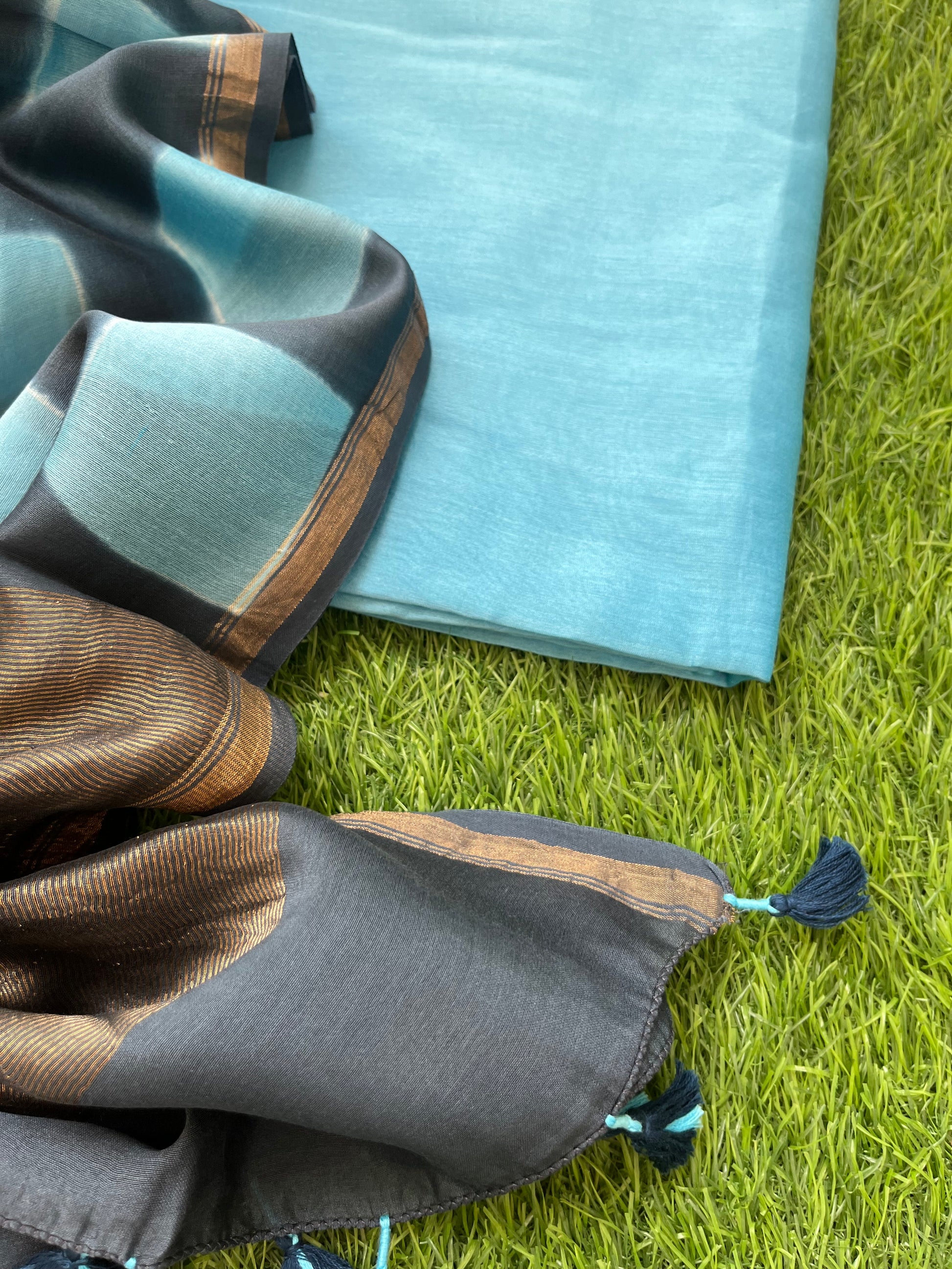 Chanderi clamp dye  Dupatta with plain kurta and Bottom fabric