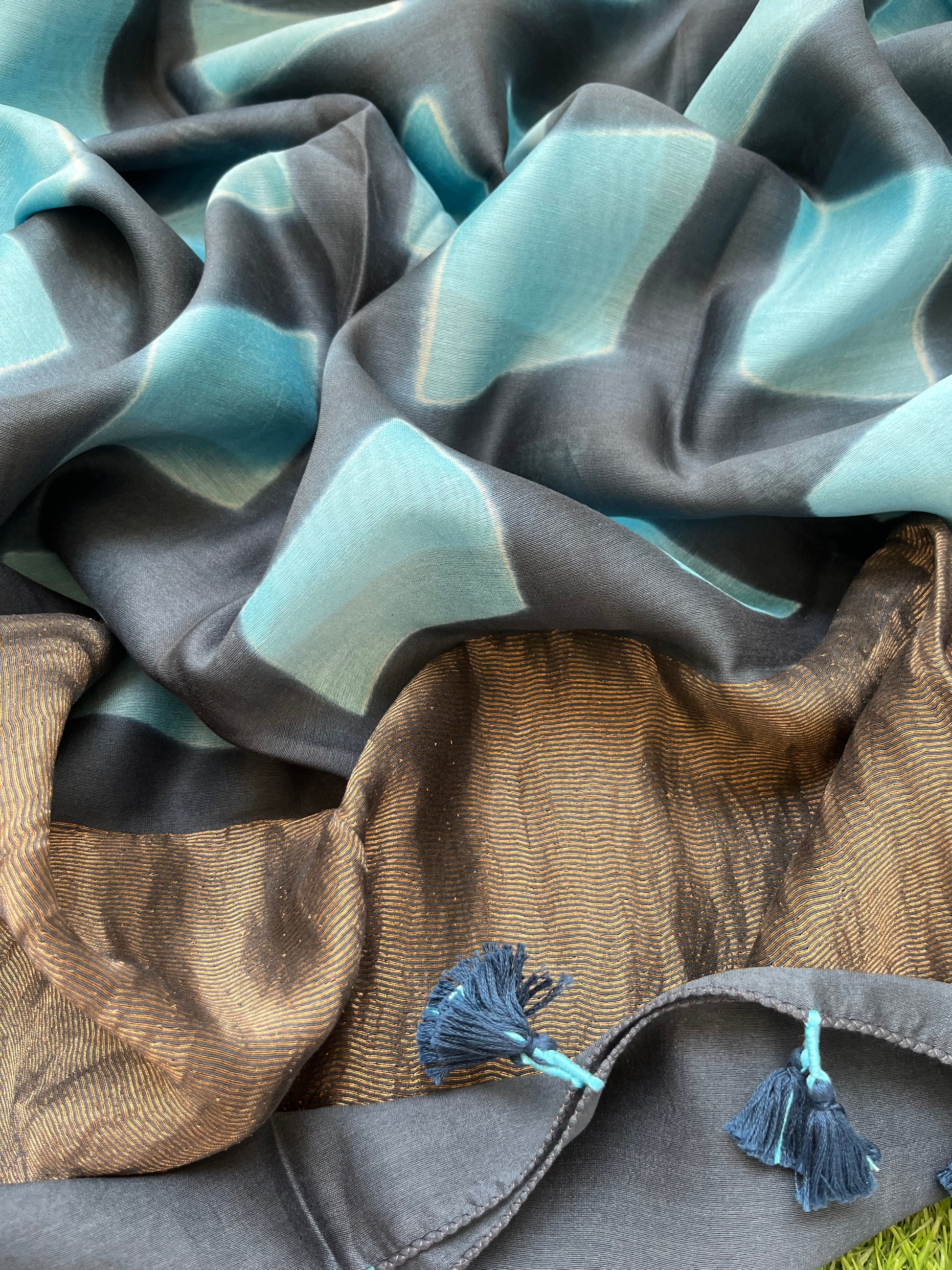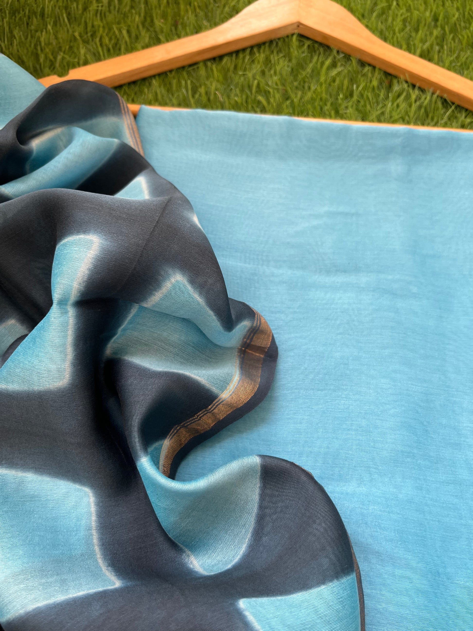 A beautifully crafted clamp dye dupatta, rich in colour and texture, paired with a soft plain chanderi fabric. The duo creates the perfect balance—subtle on one side, artistic on the other. Ideal for festive wear or intimate gatherings.