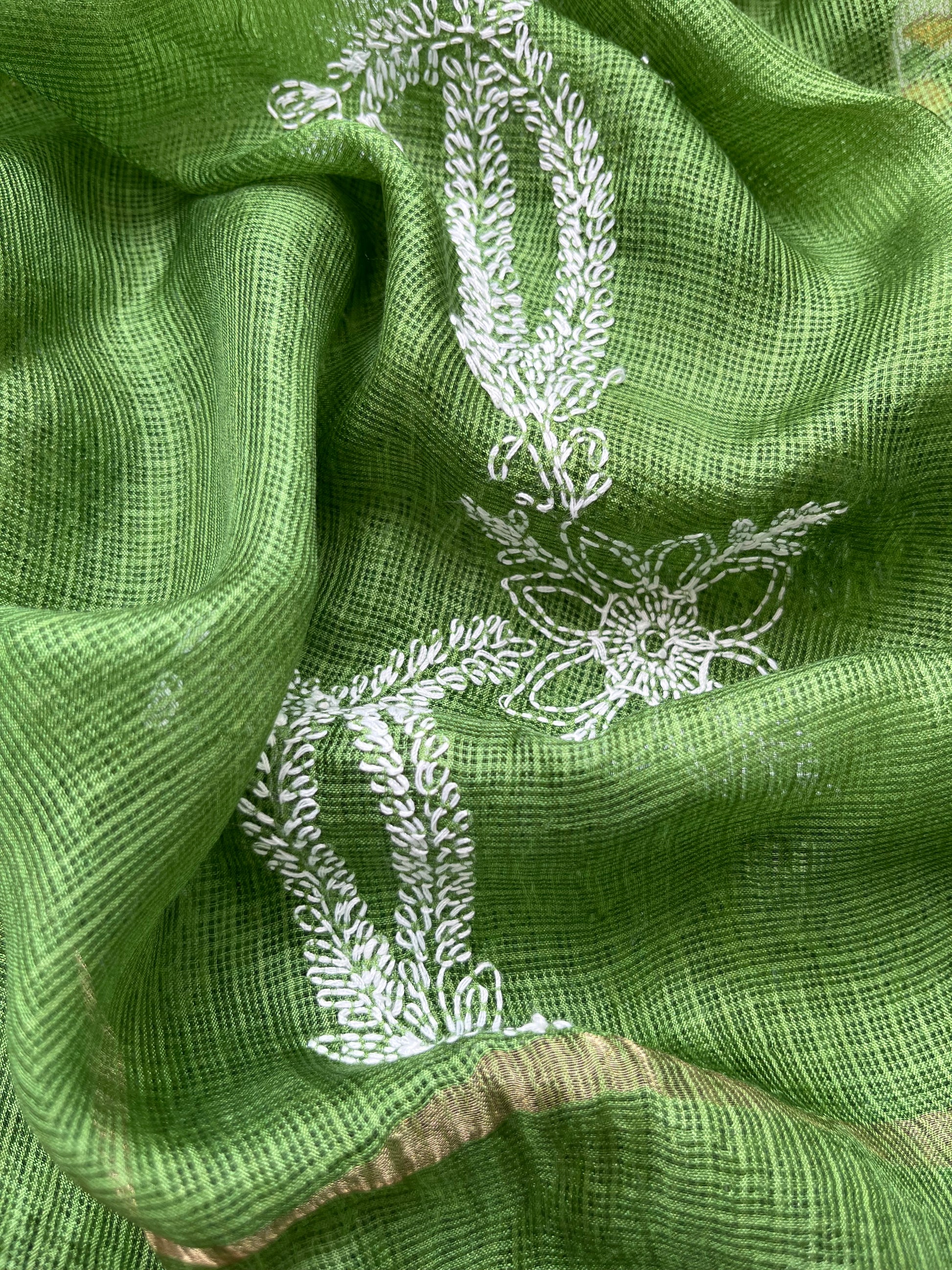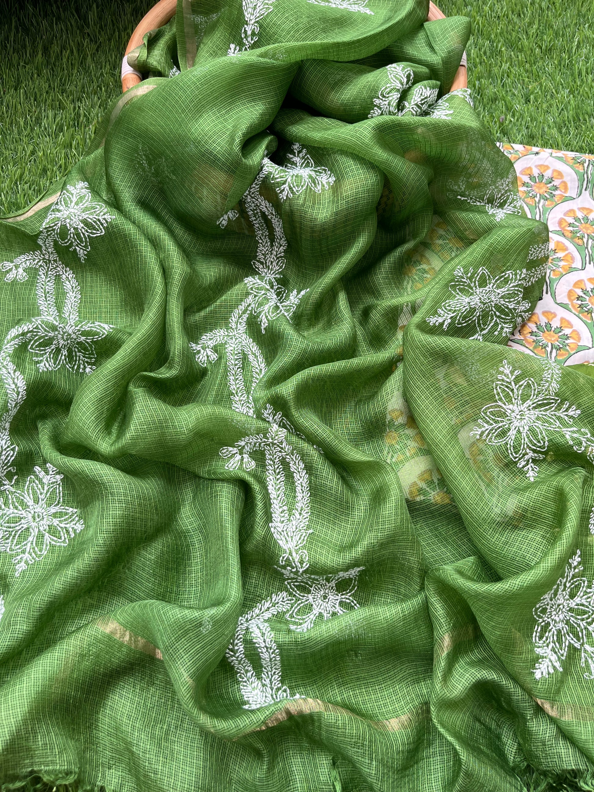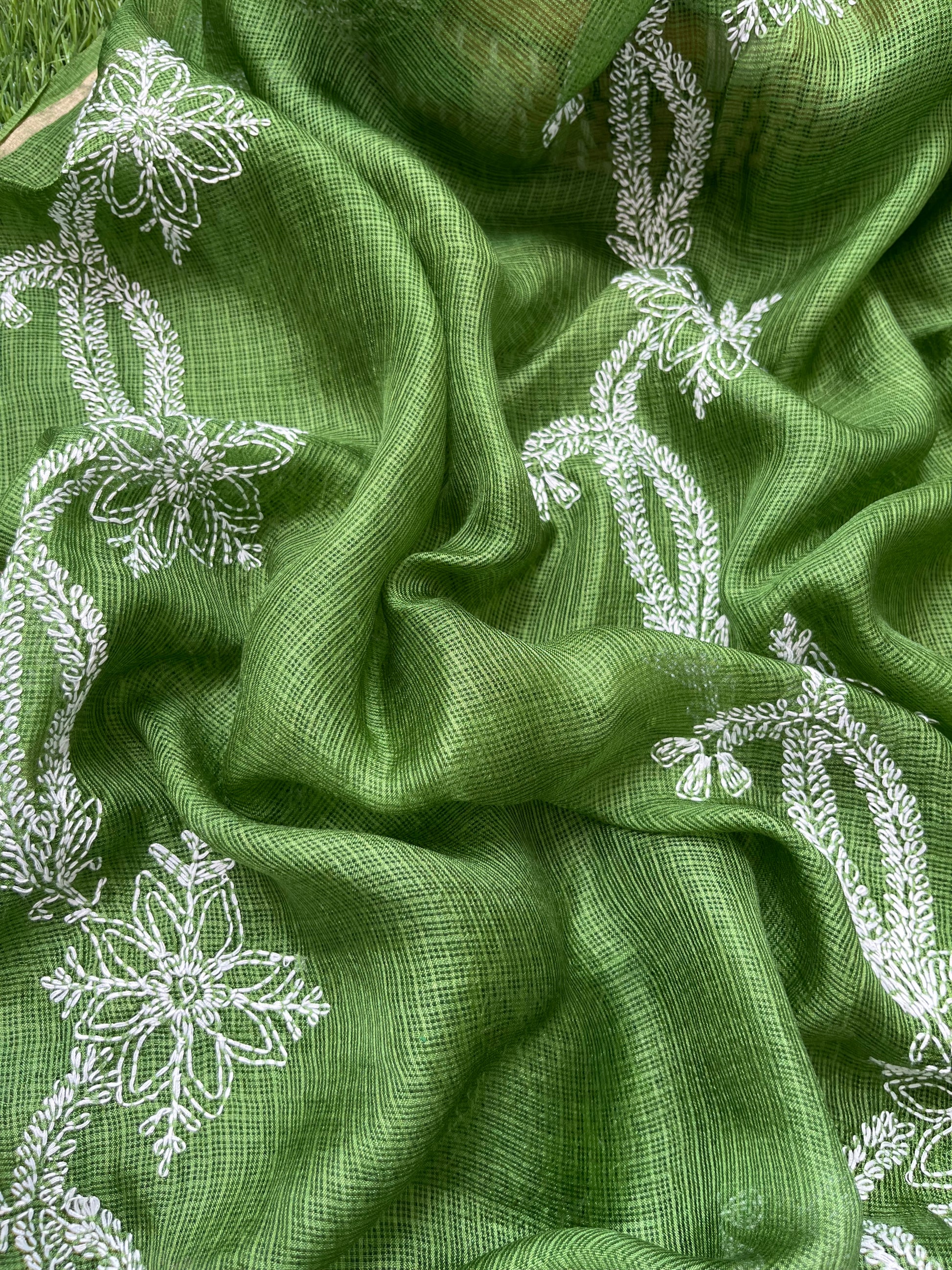 Chikankari kota silk Dupatta and block print kurta bandhani bottom Fabric