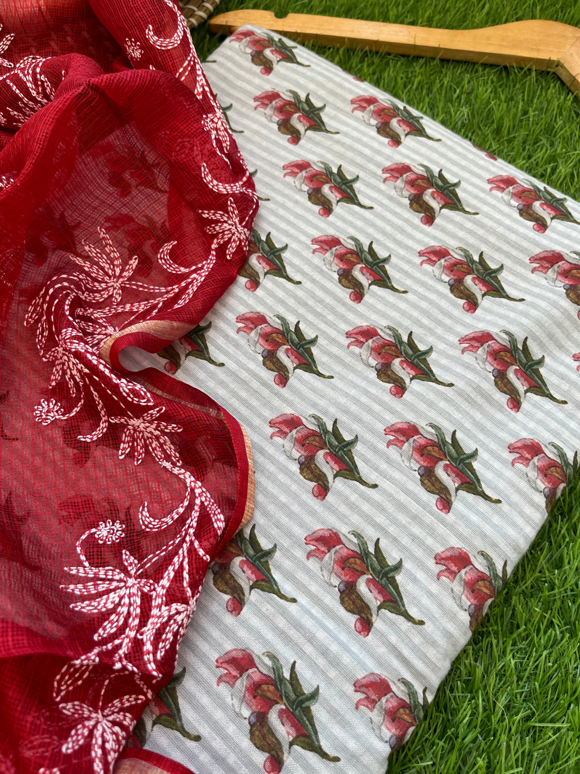 Chikankari kota silk Dupatta and block print kurta bottom Fabric