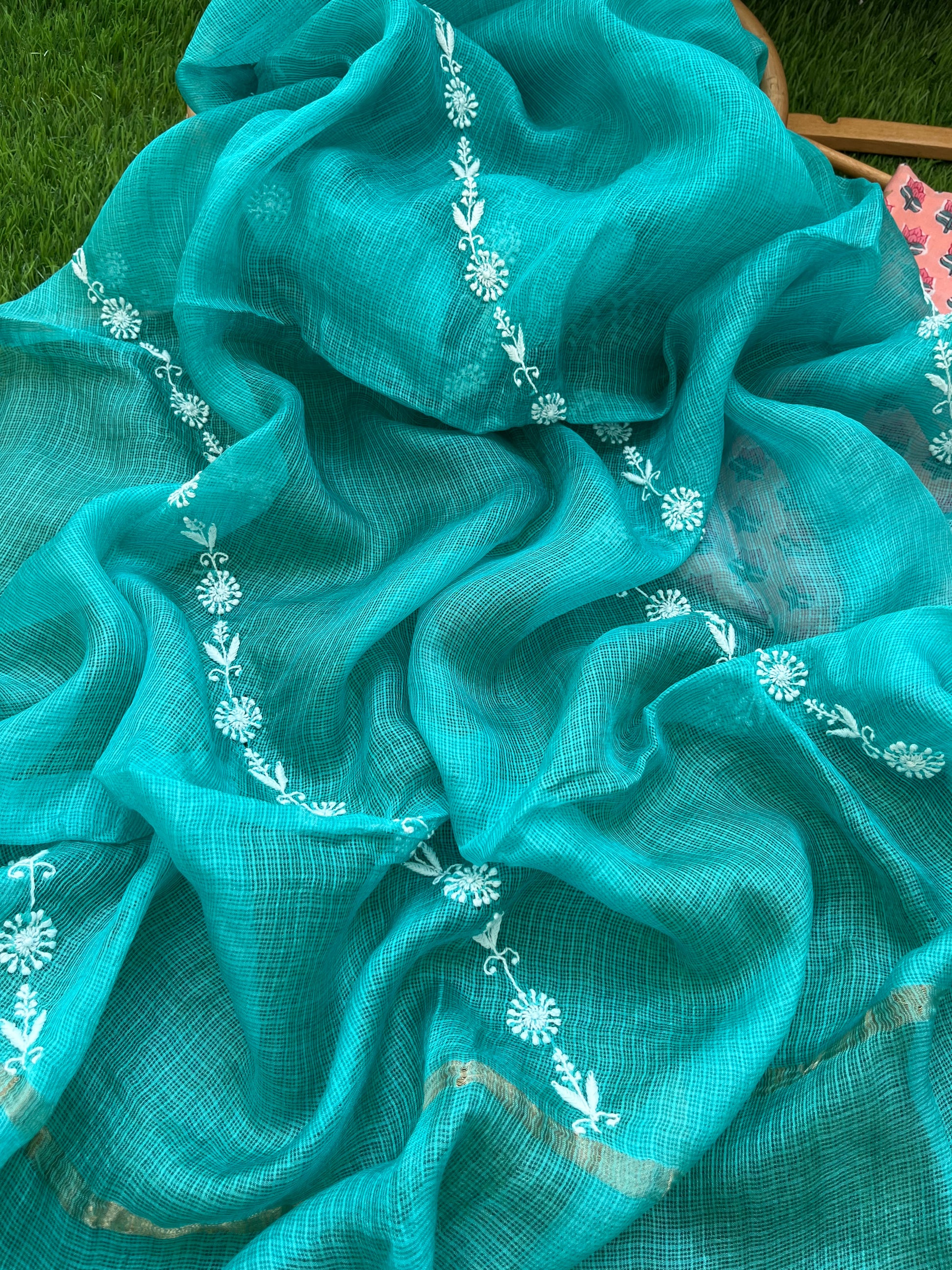 Chikankari kota silk Dupatta and block print kurta Fabric