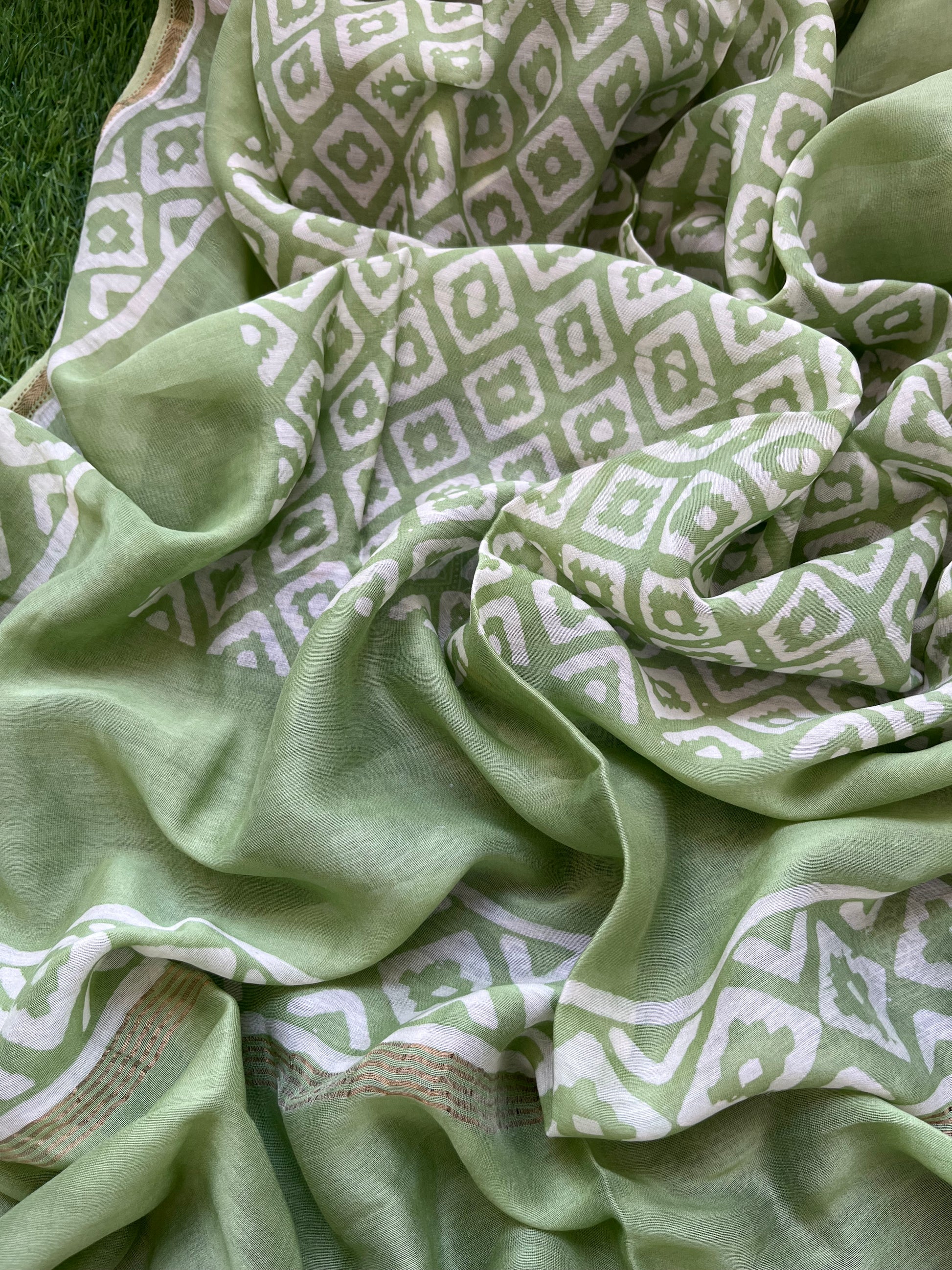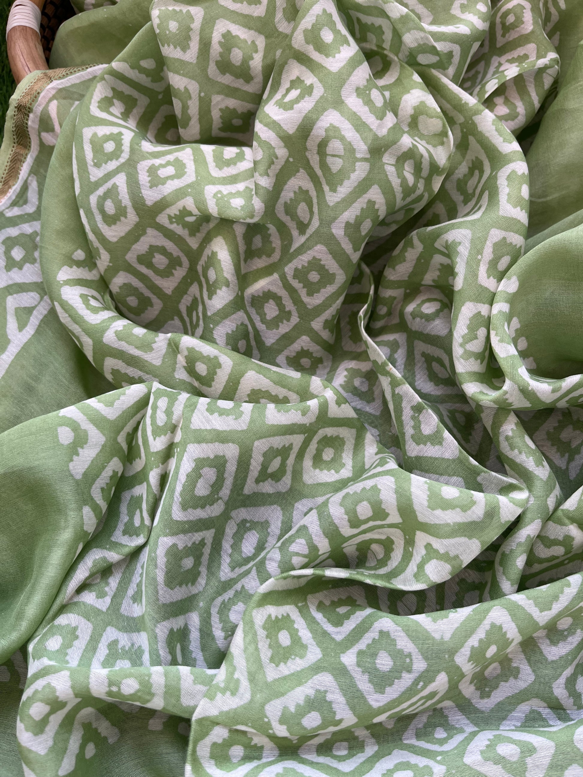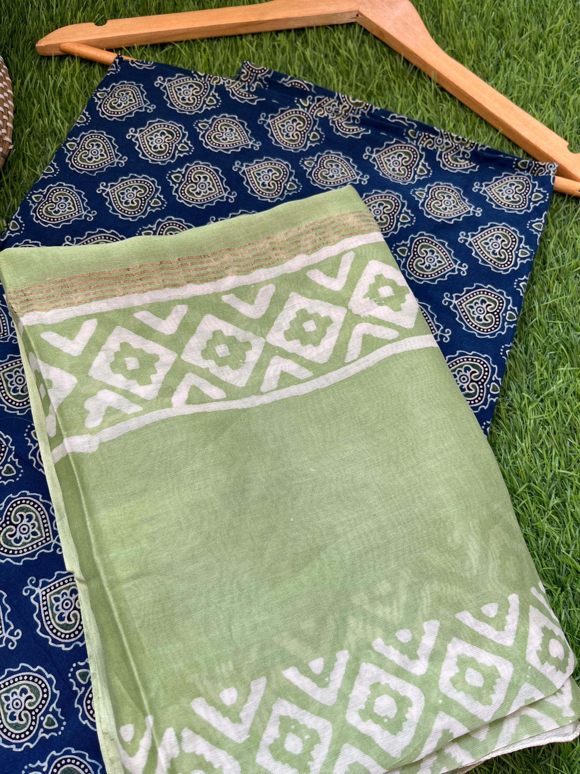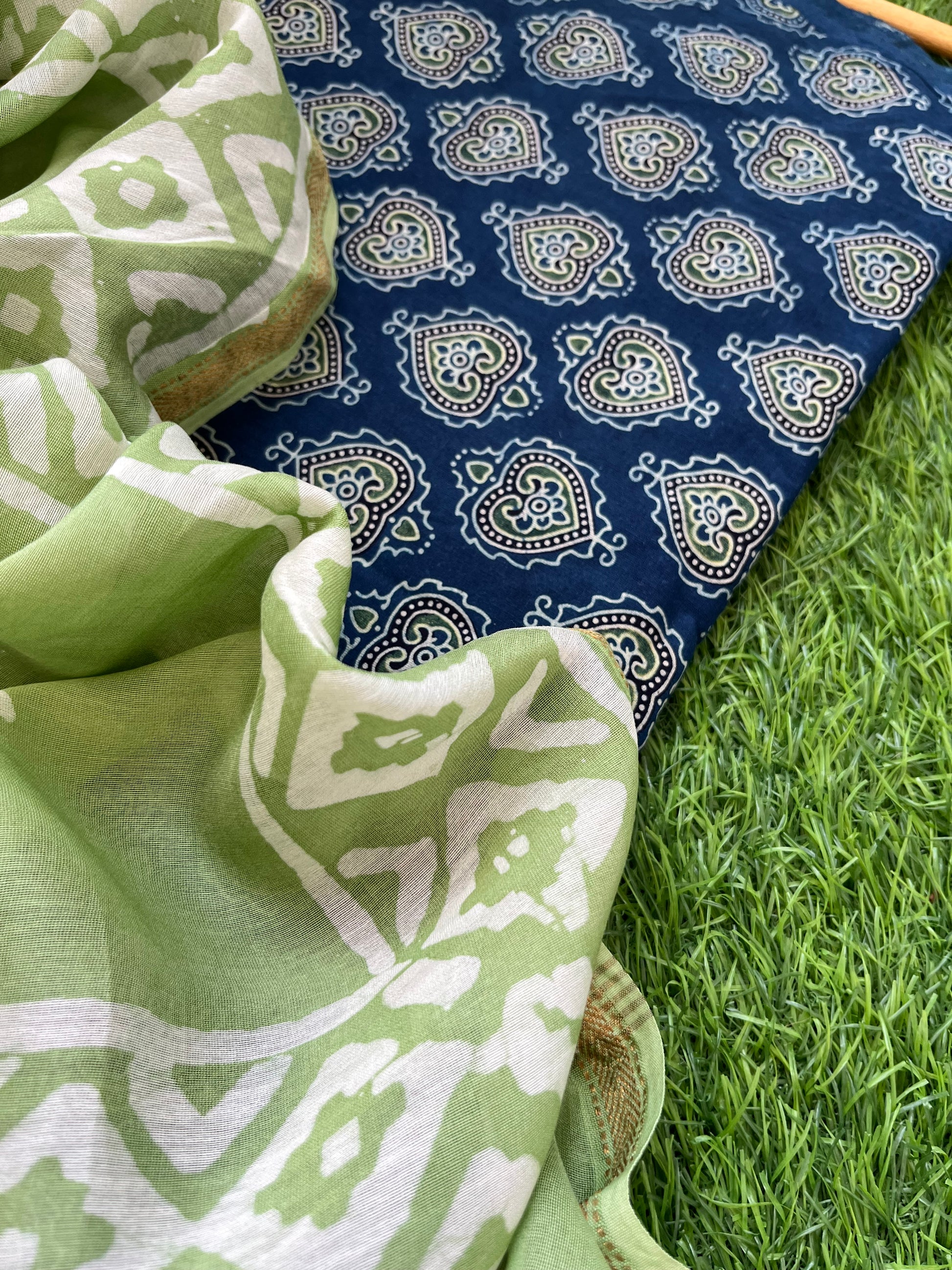 “Cotton block print kurta fabric with a chanderi baatik dupatta