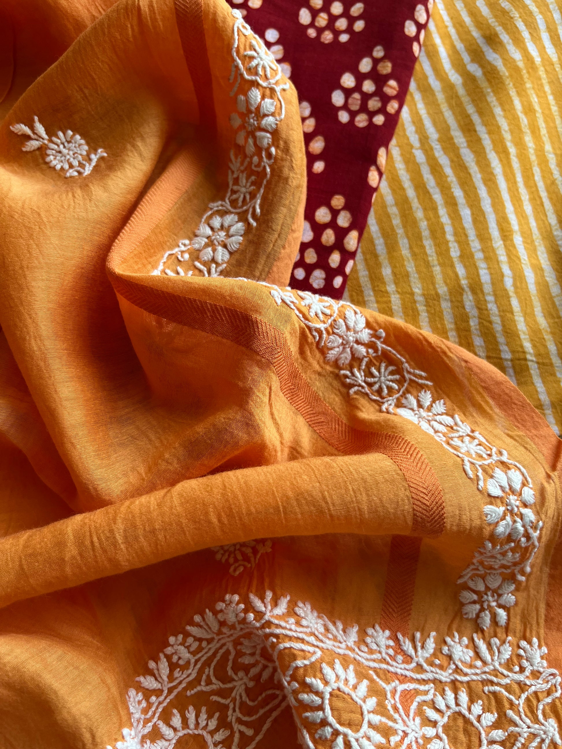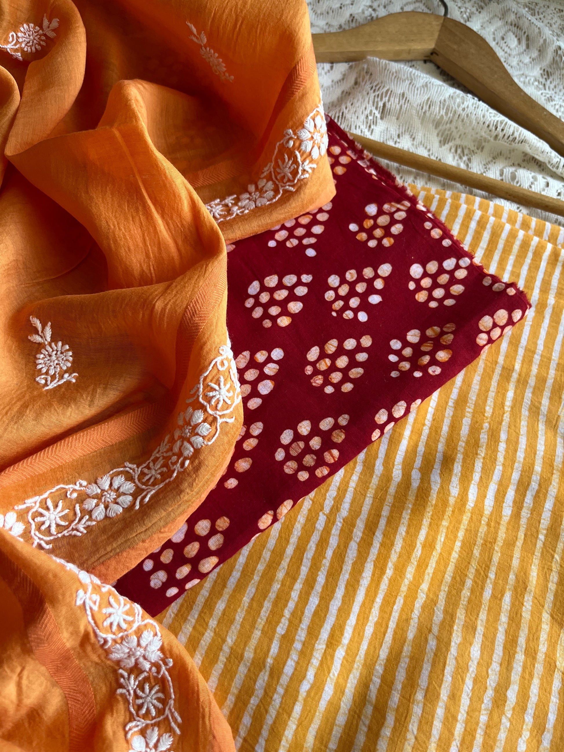 “Cotton mangalgiri kurta bottom fabric chikankari dupatta