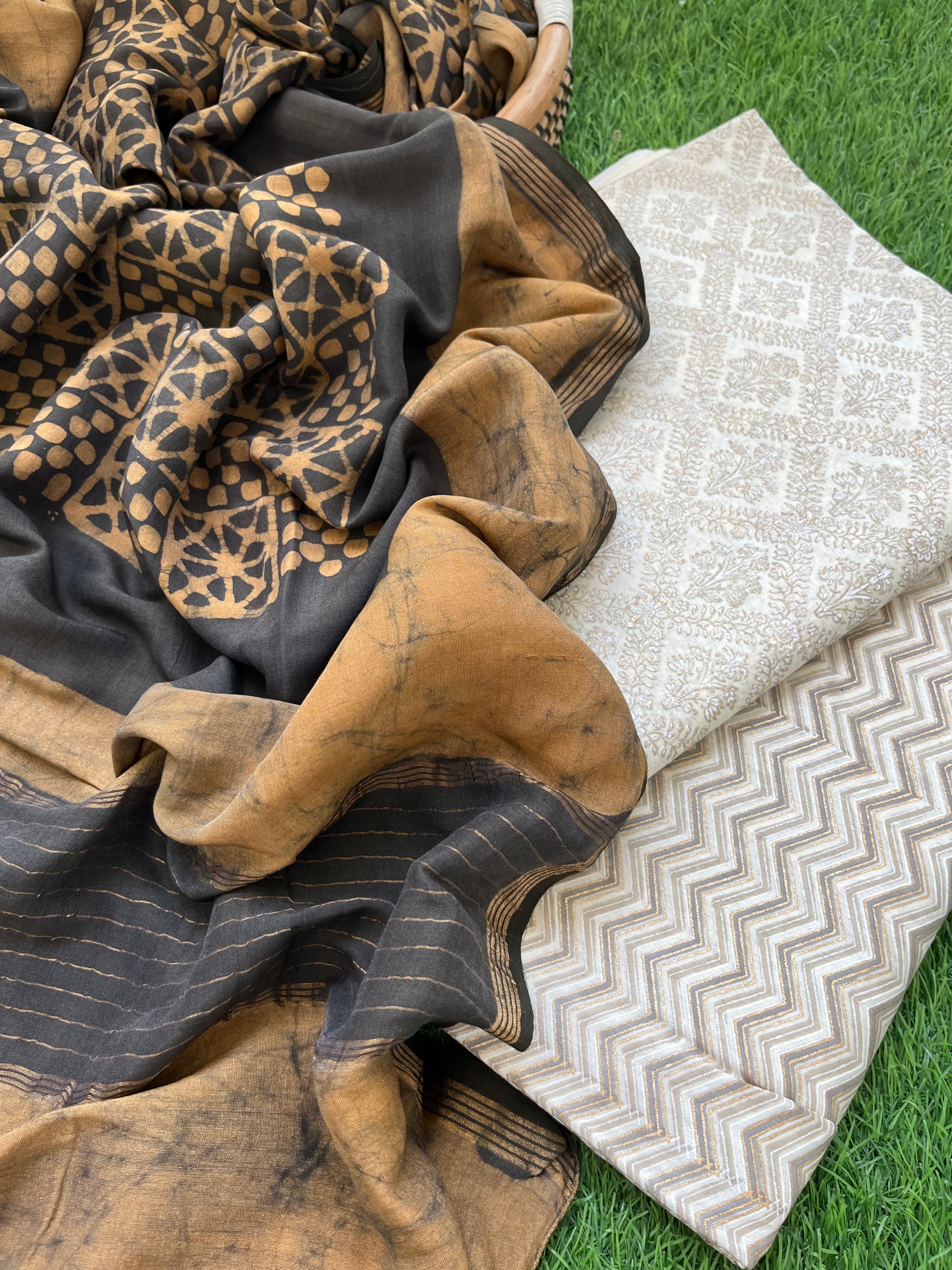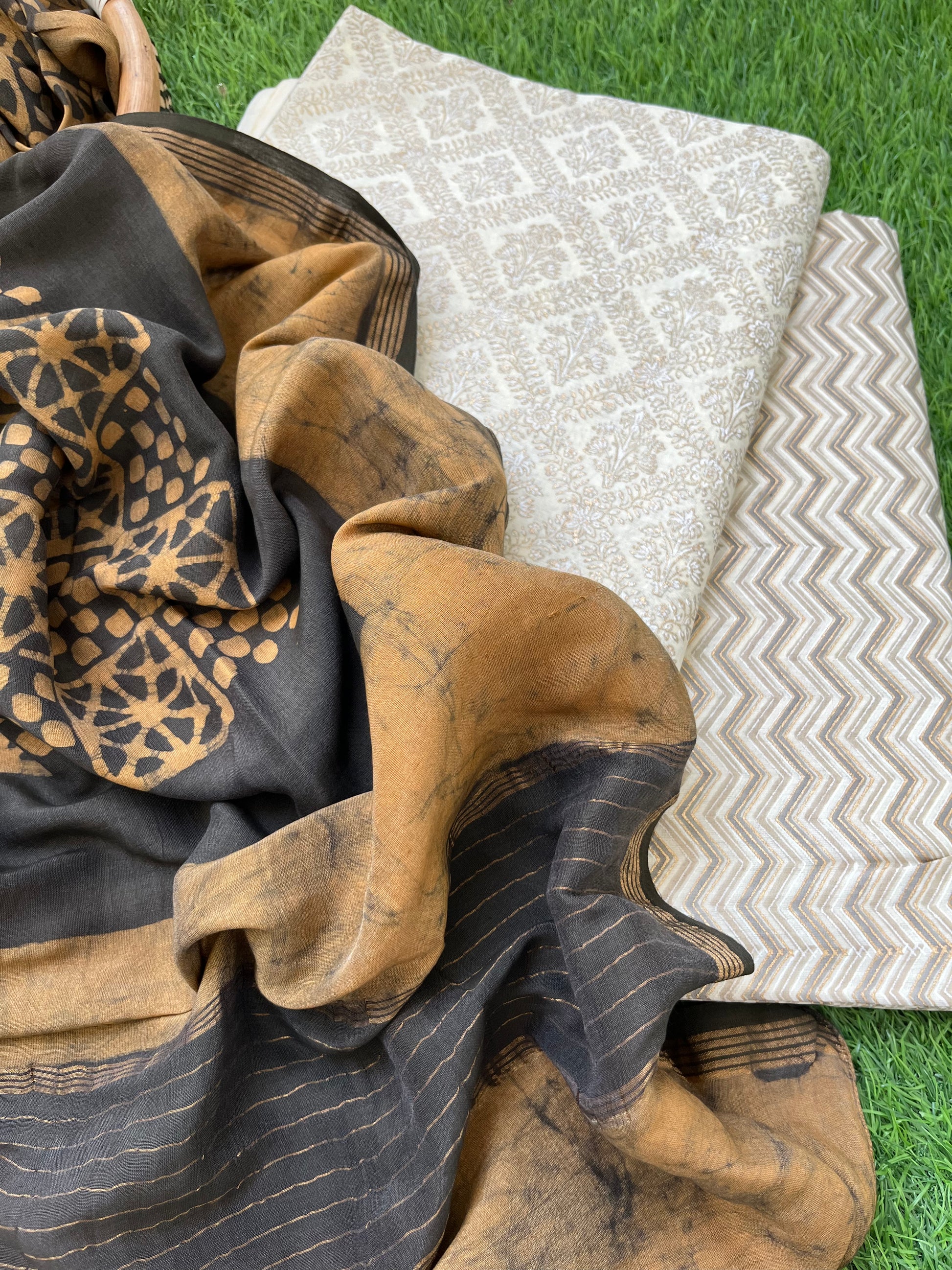 “Chanderi block print kurta bottom fabric with a chanderi baatik dupatta