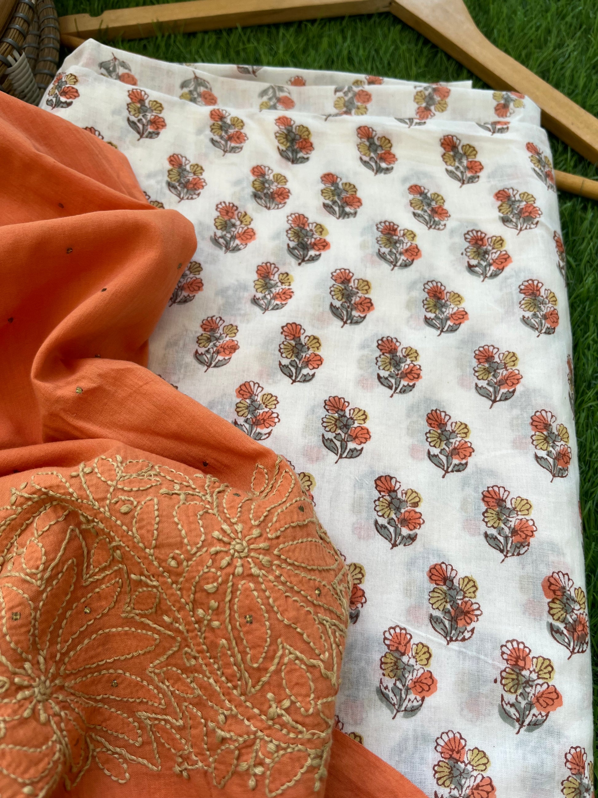 “Cotton block print kurta bottom fabric chikankari dupatta