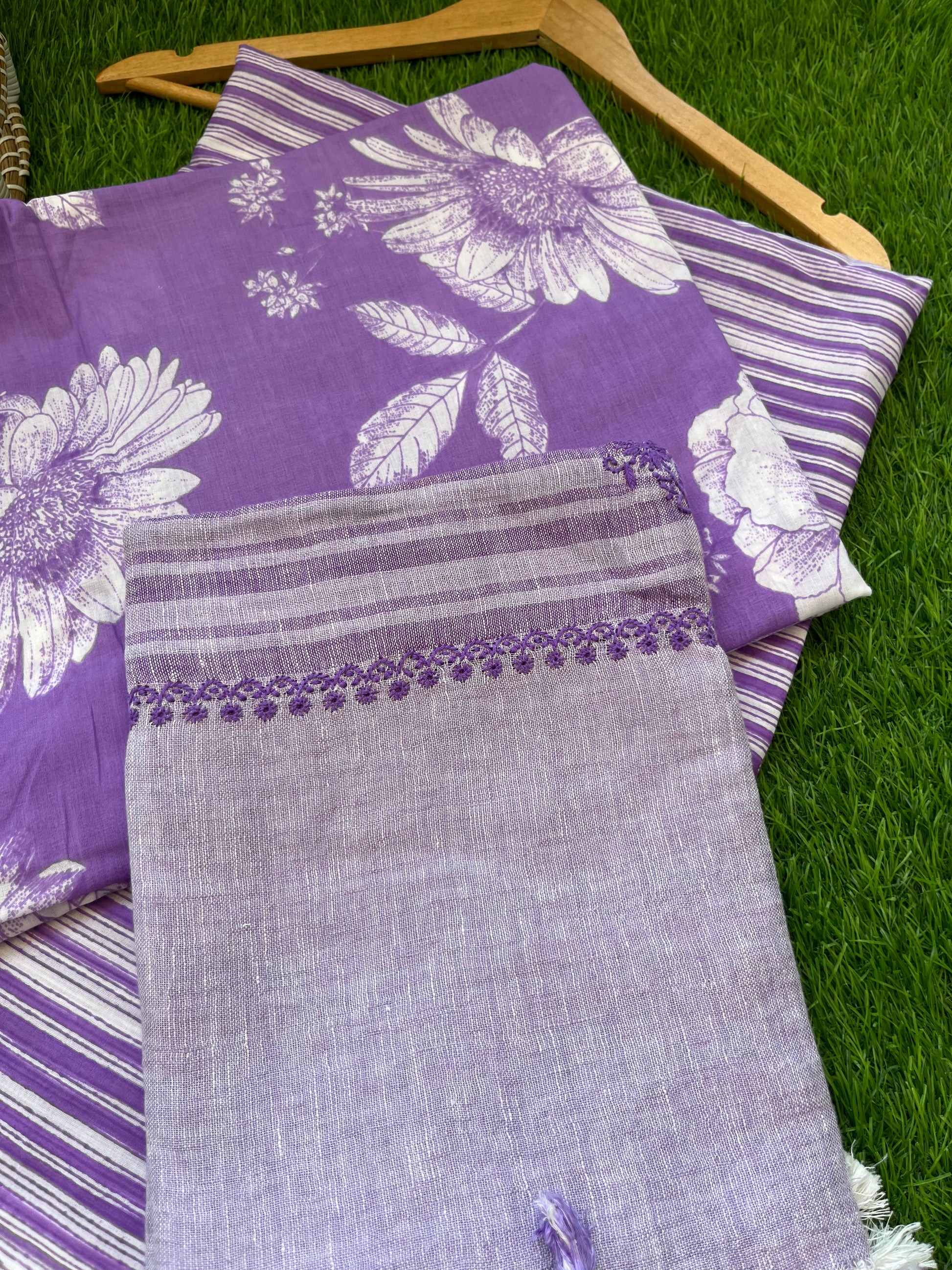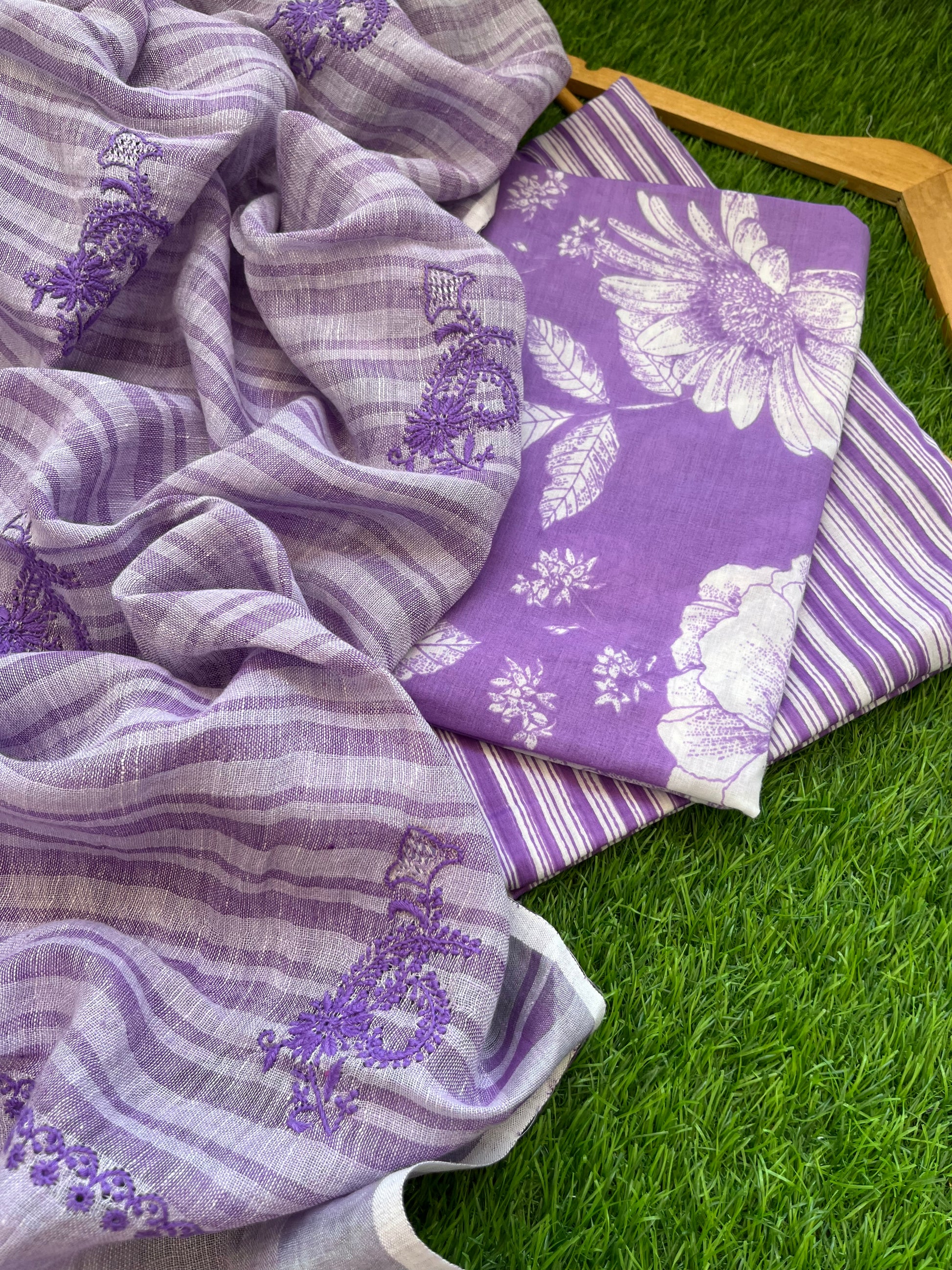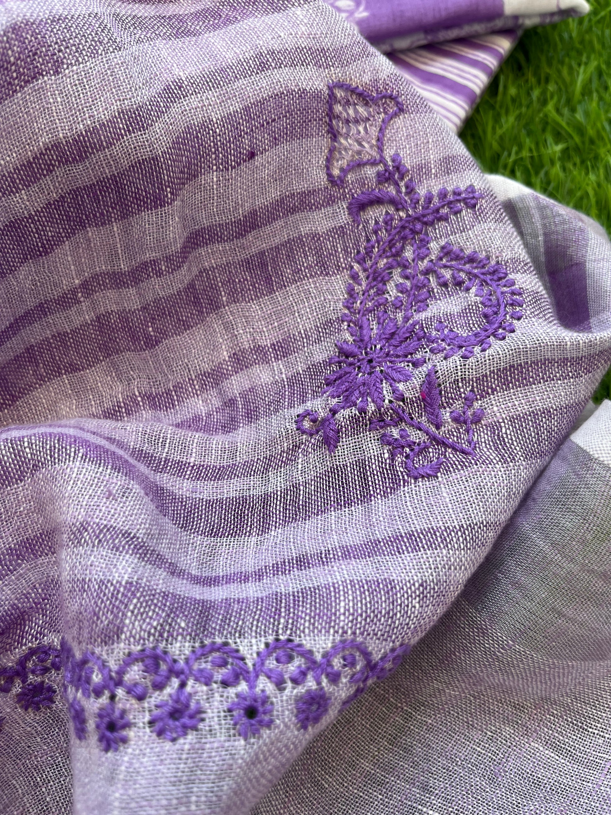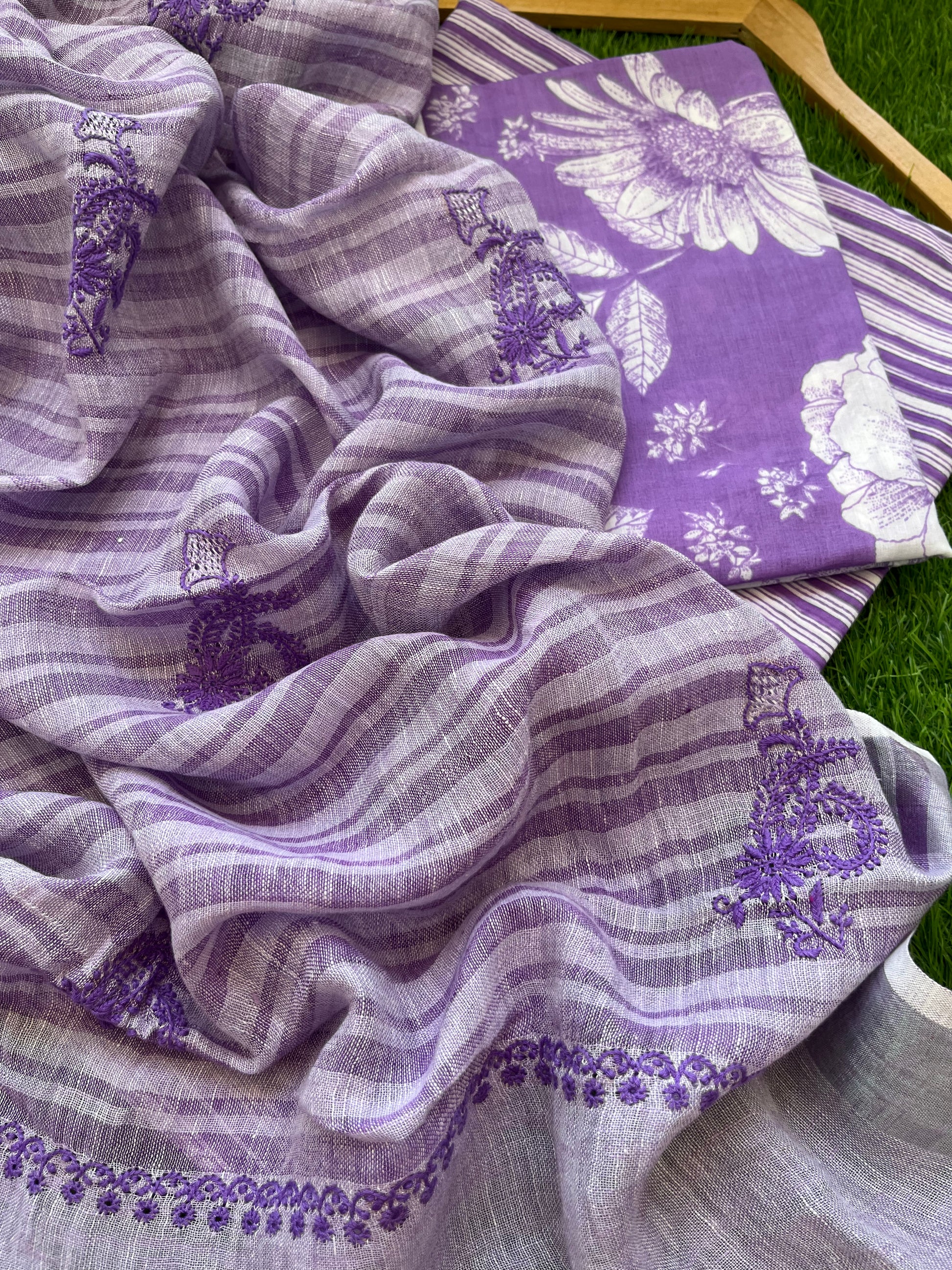 Cotton block print kurta bottom fabric with linen chikan work dupatta