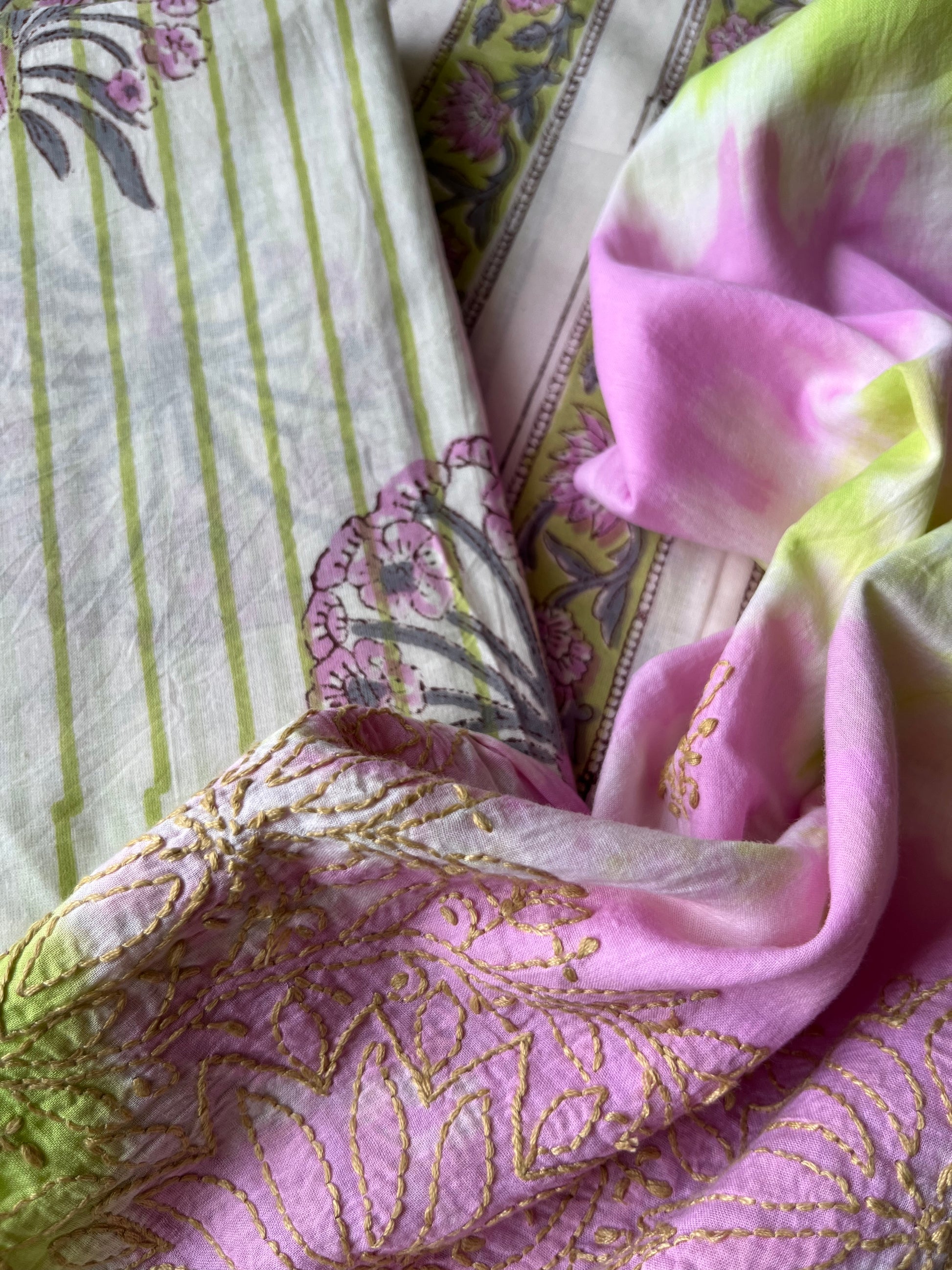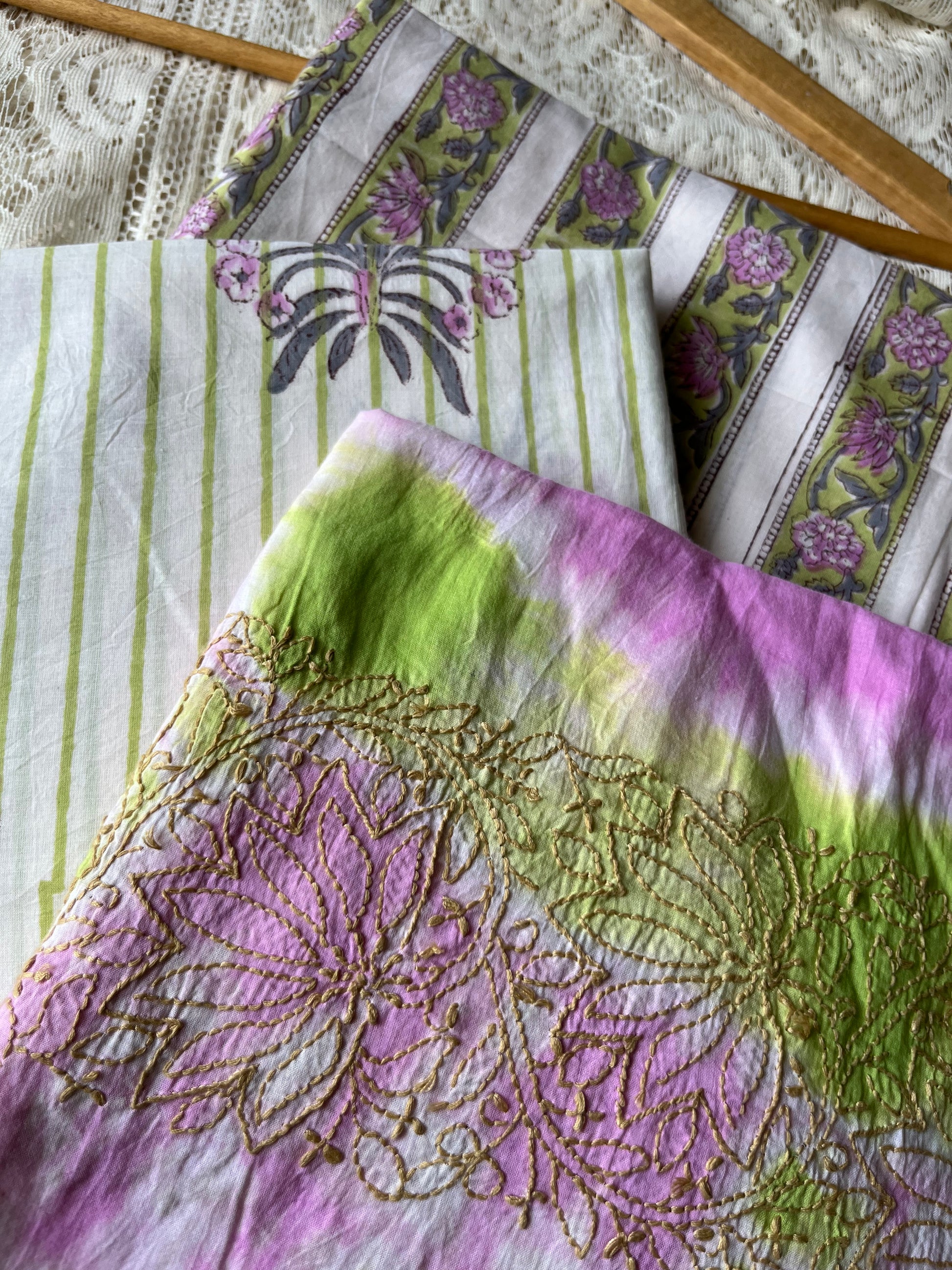 “Cotton block print kurta bottom fabric chikankari dupatta