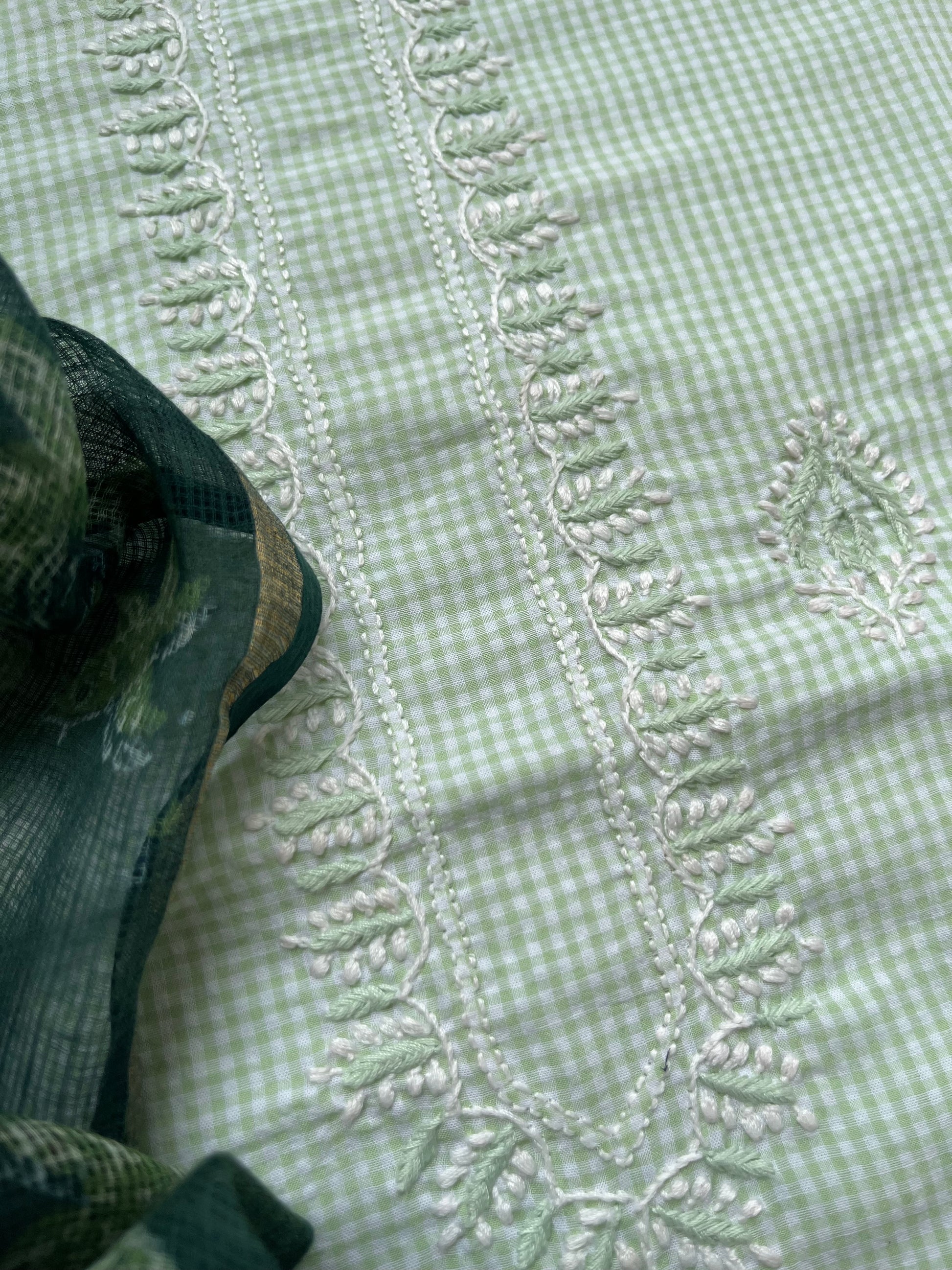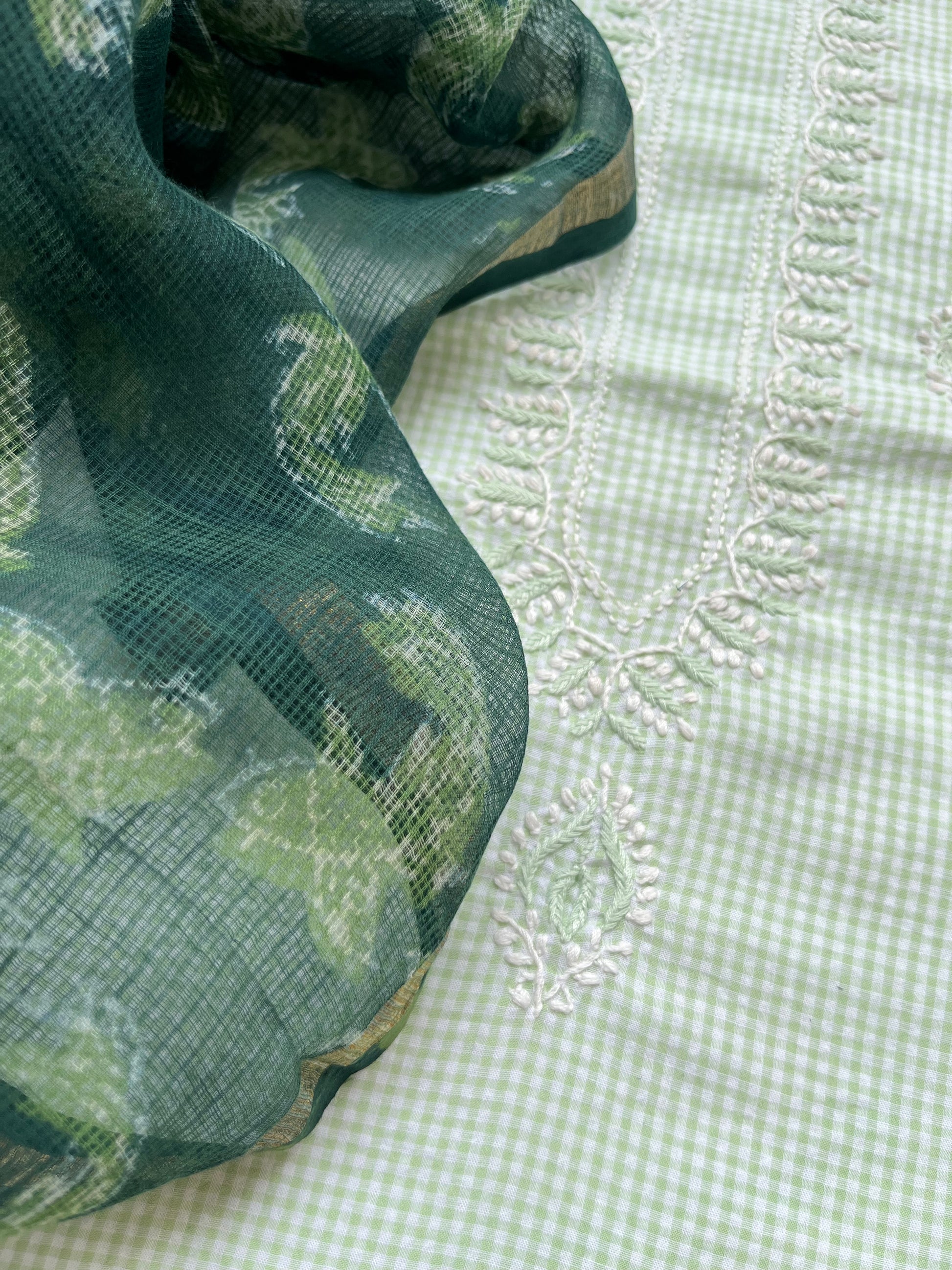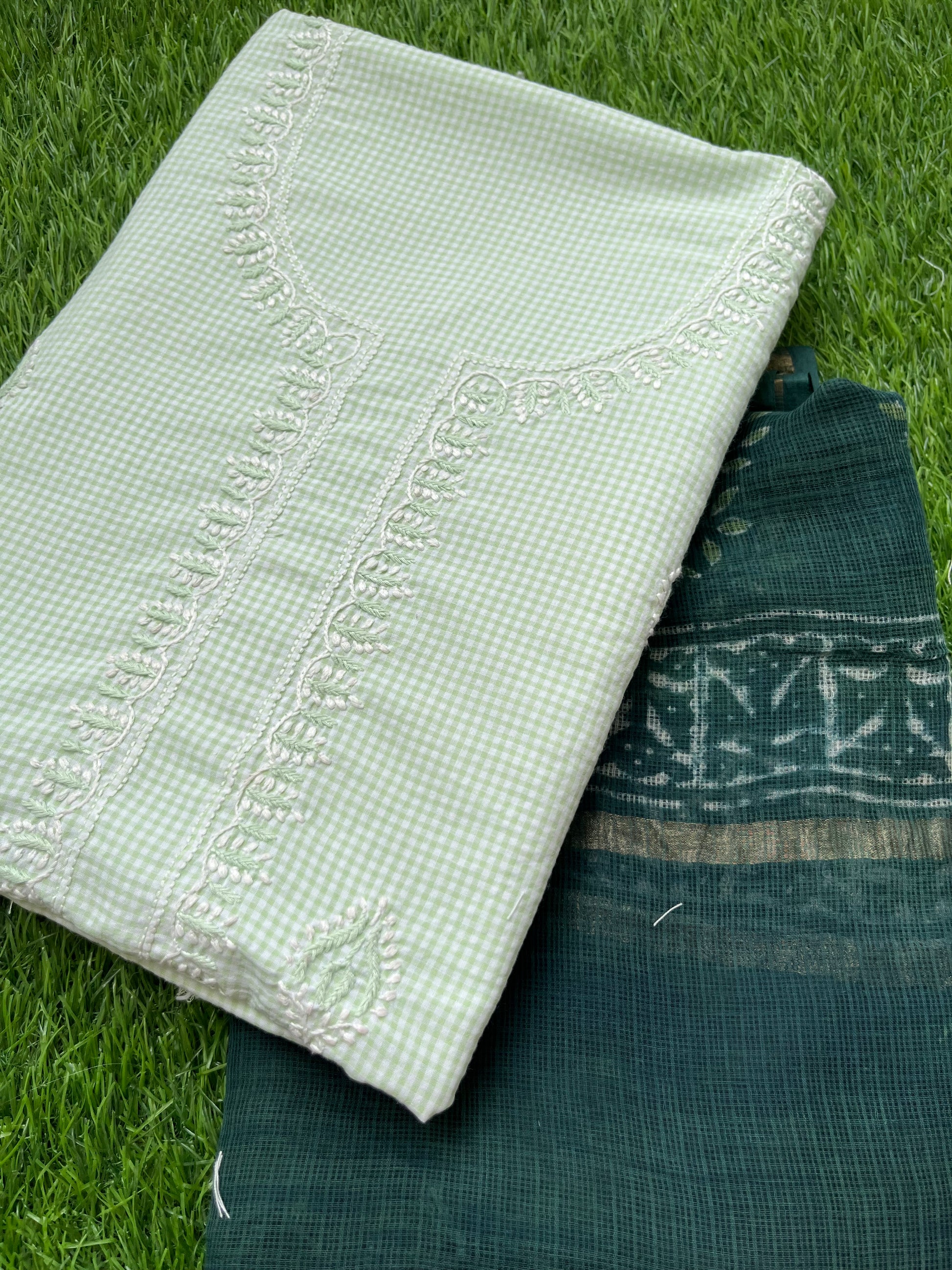 Cotton chikankari kurta with kotadoria block print Dupatta