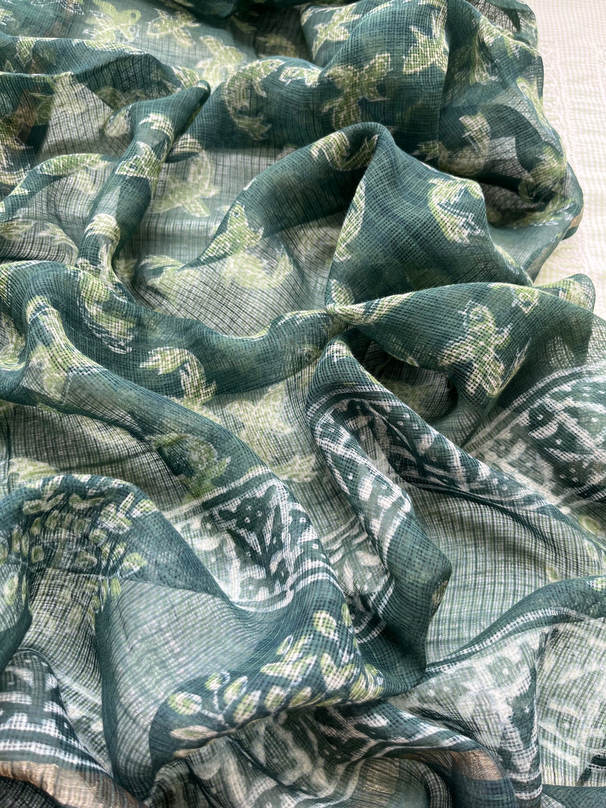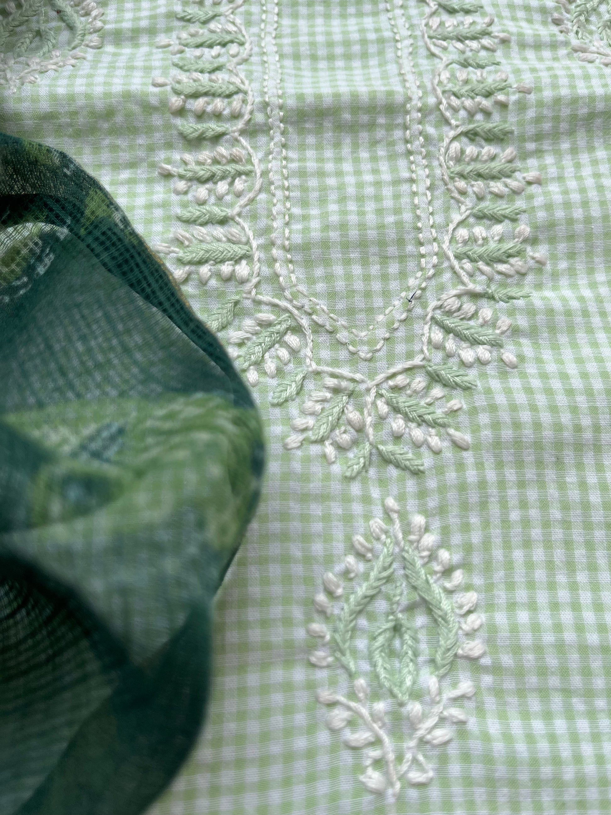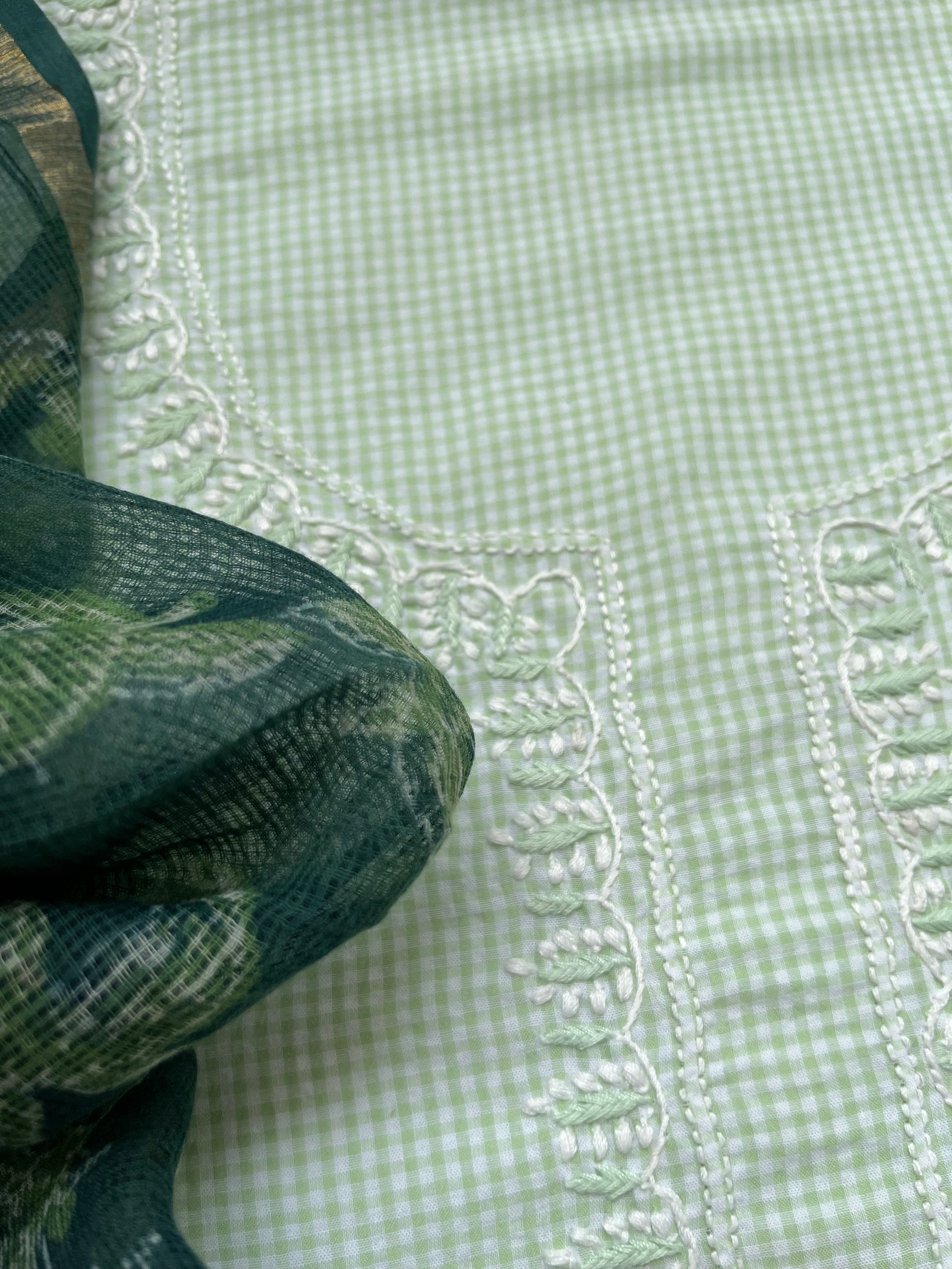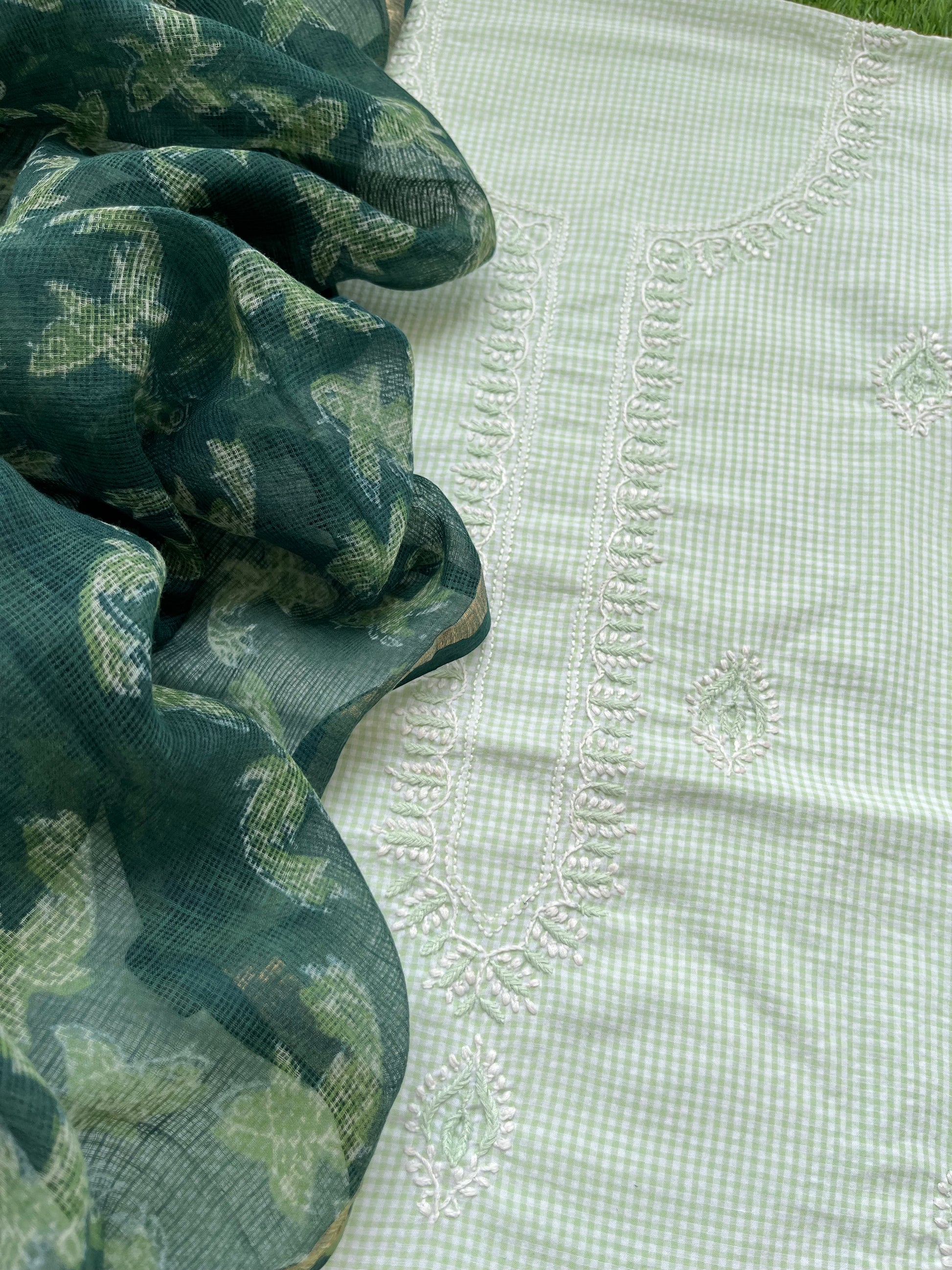 Cotton chikankari kurta with kotadoria block print Dupatta