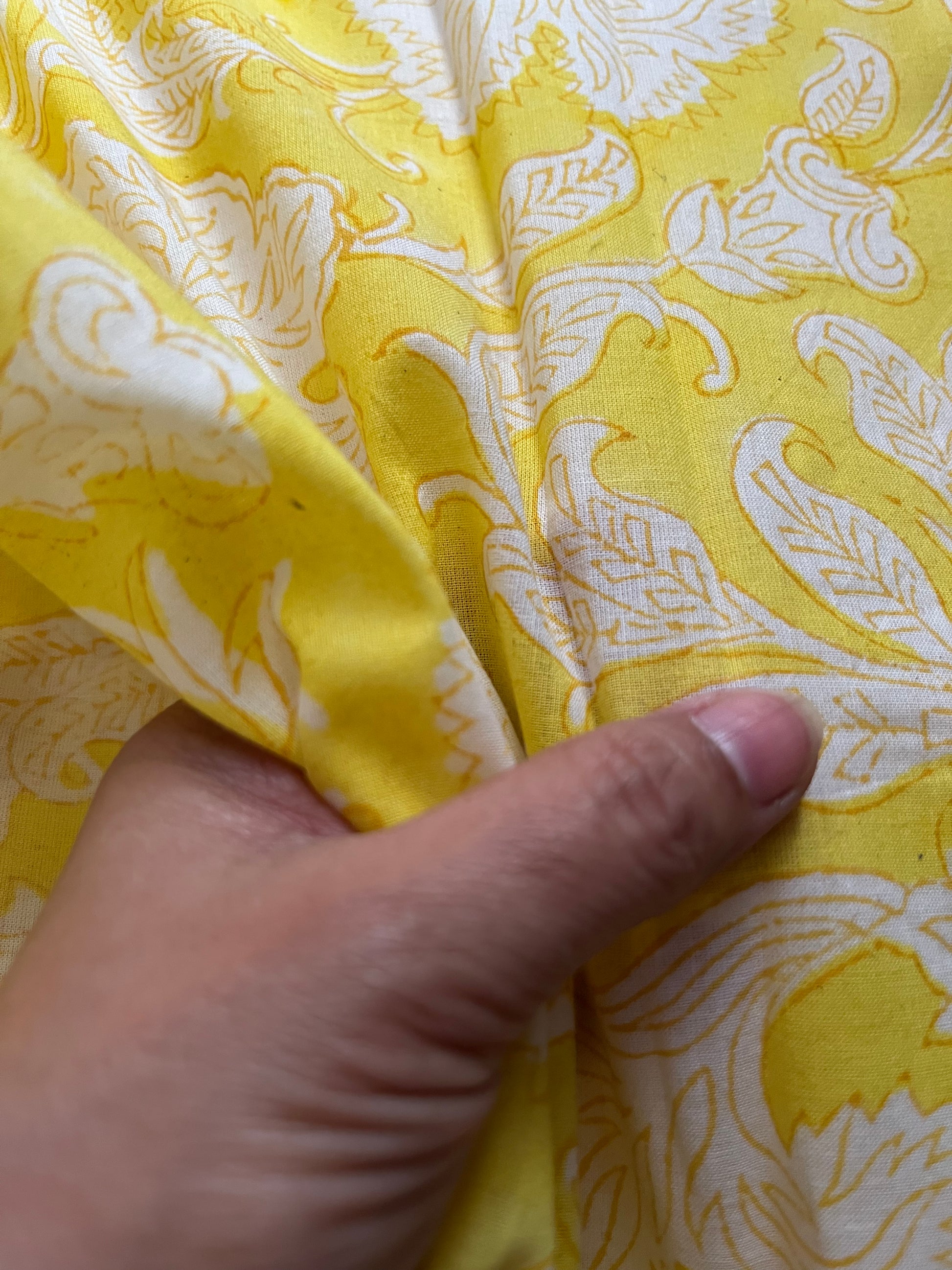 -Hand block fabrics also tend to shrink and bleed out excess color in initial washes so Wash fabrics separately