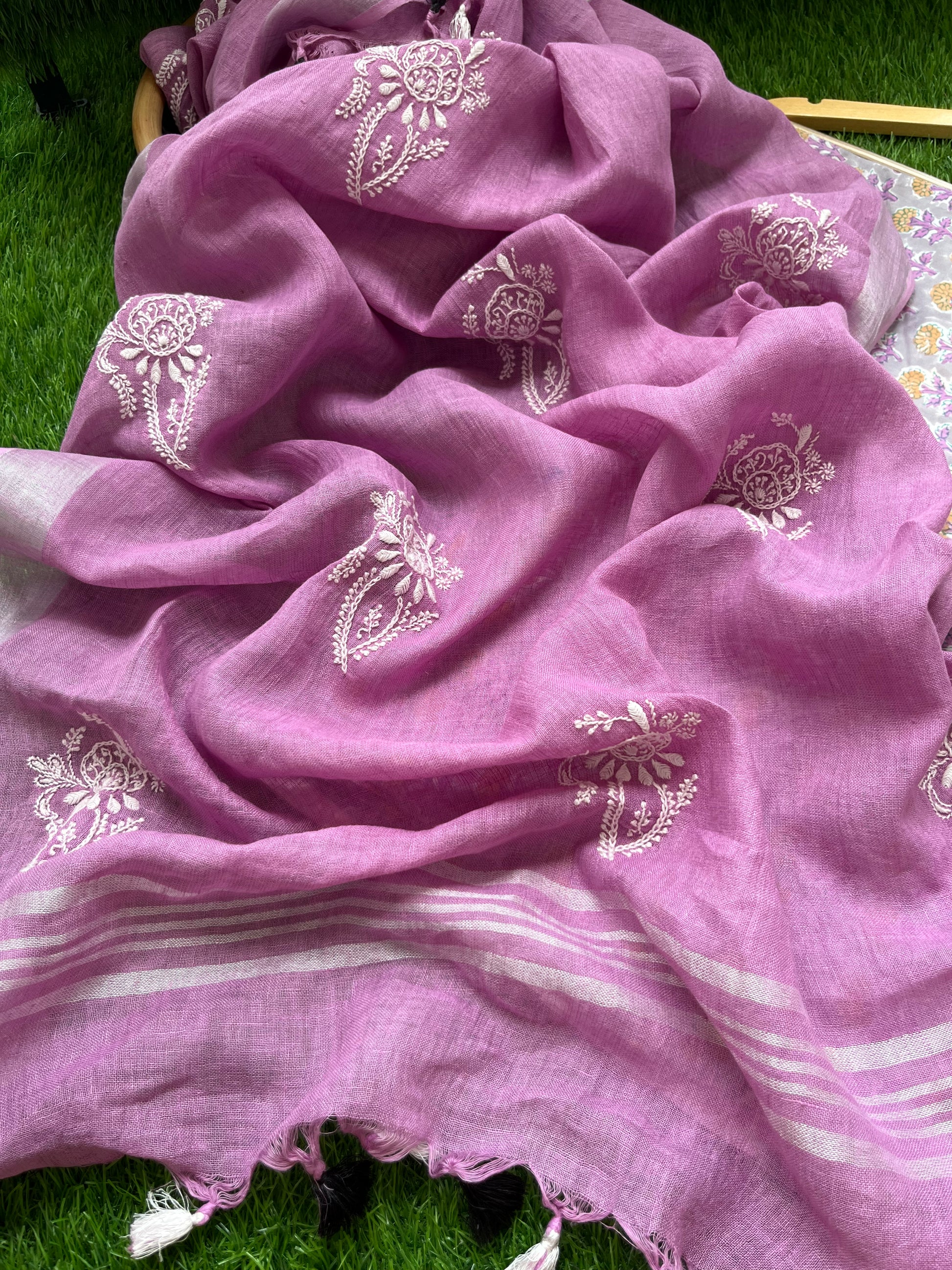 Cotton print kurta bottom fabric with linen tissue chikan work dupatta