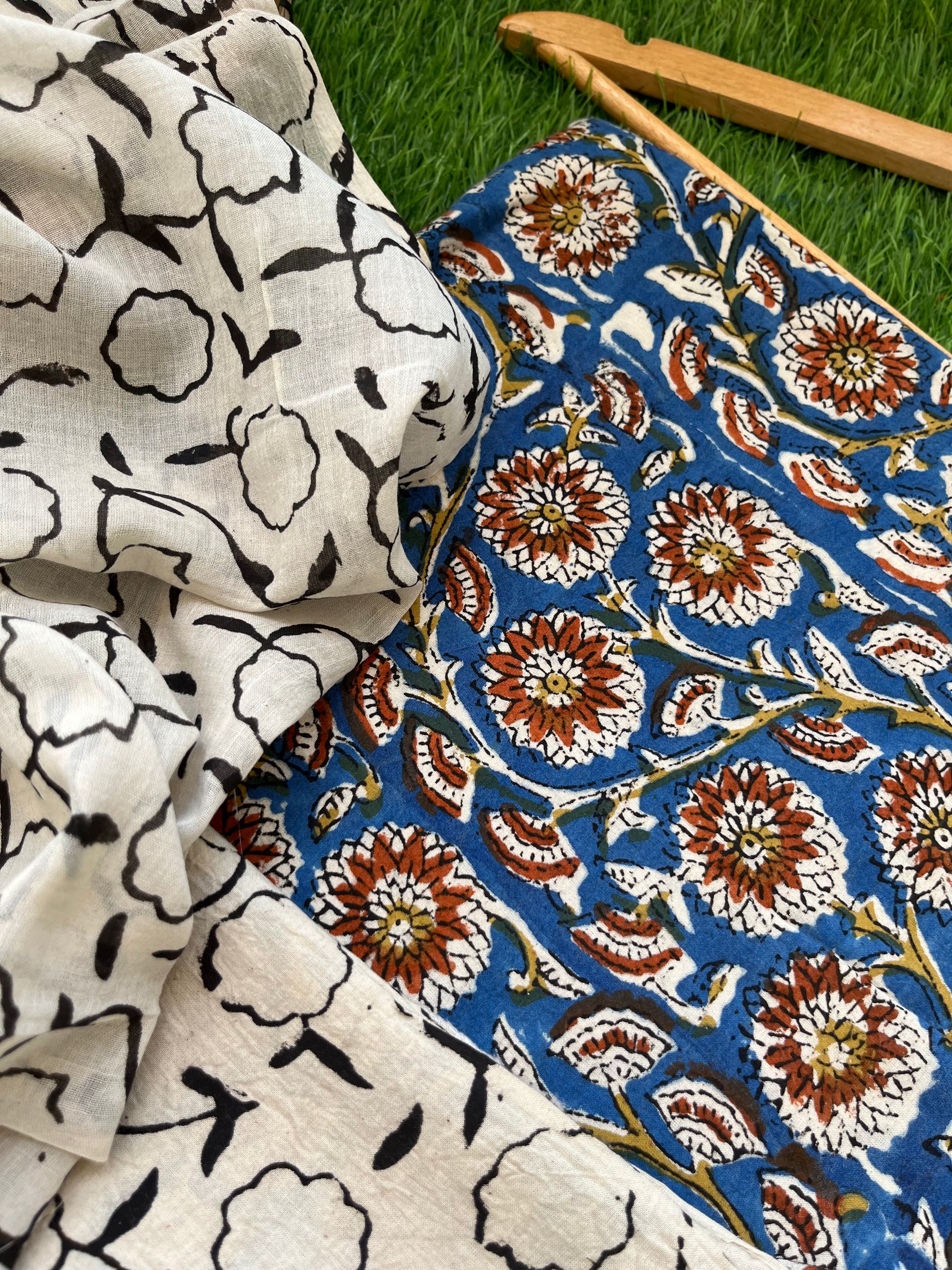 Cotton kalamkari block print kurta bottom fabric with mul dupatta …