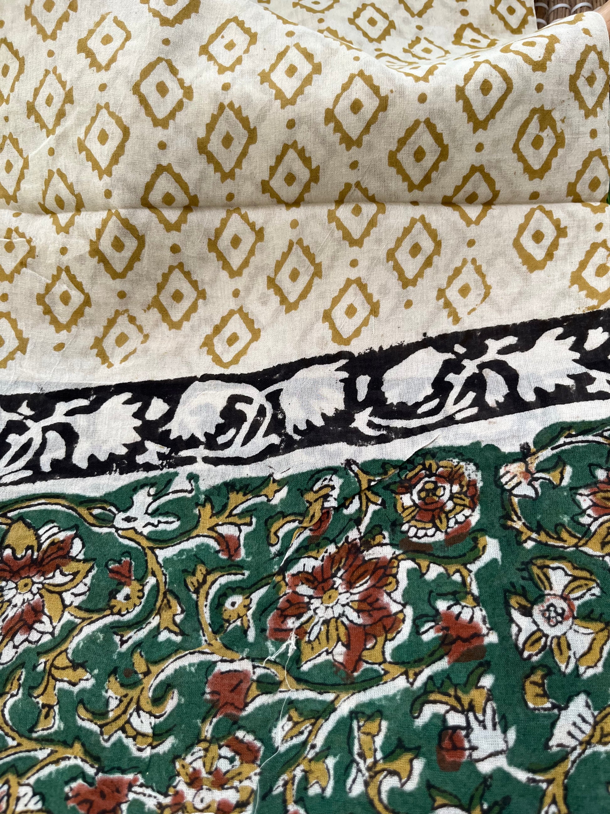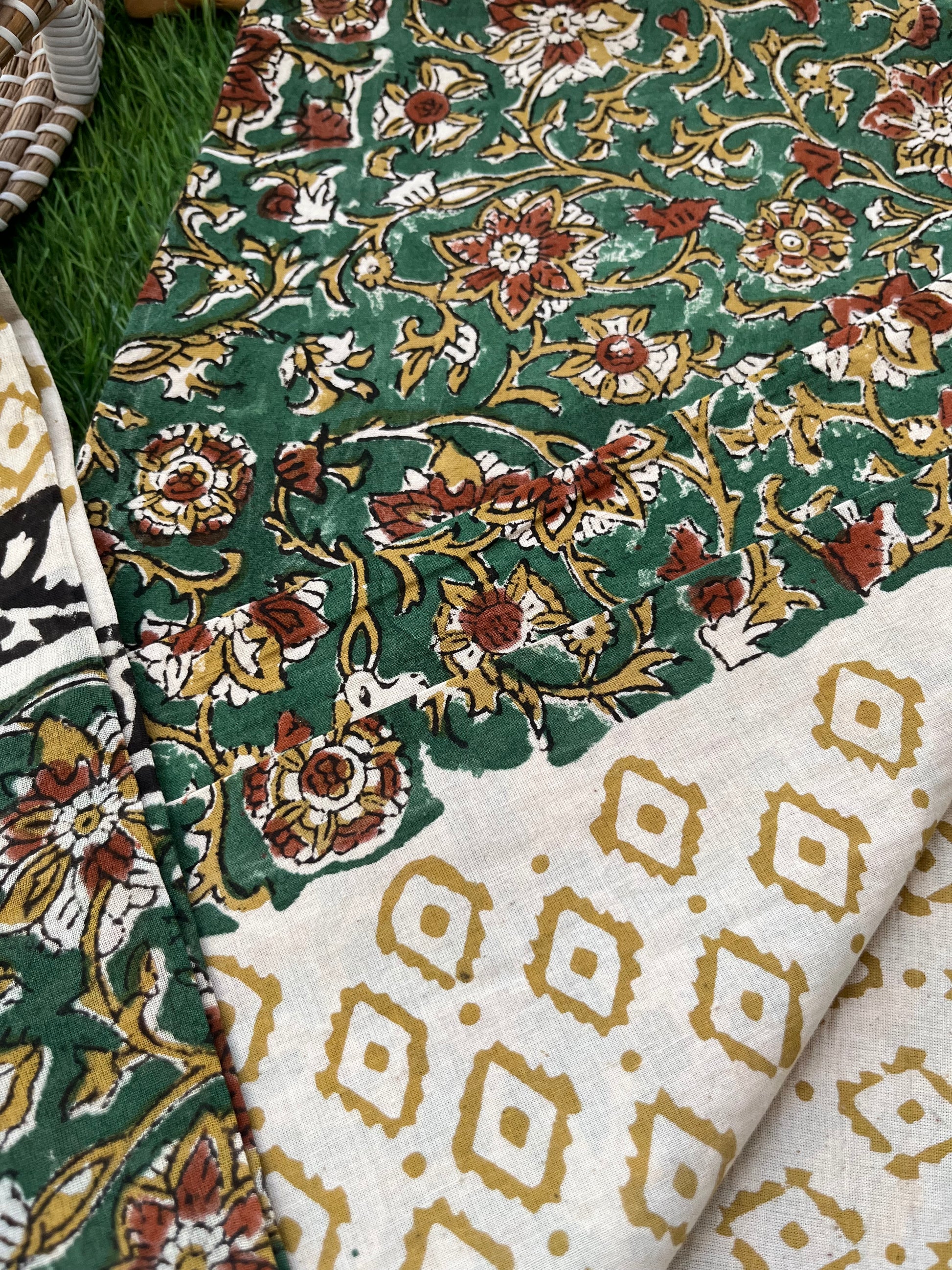 Cotton kalamkari block print kurta bottom fabric with mul dupatta …