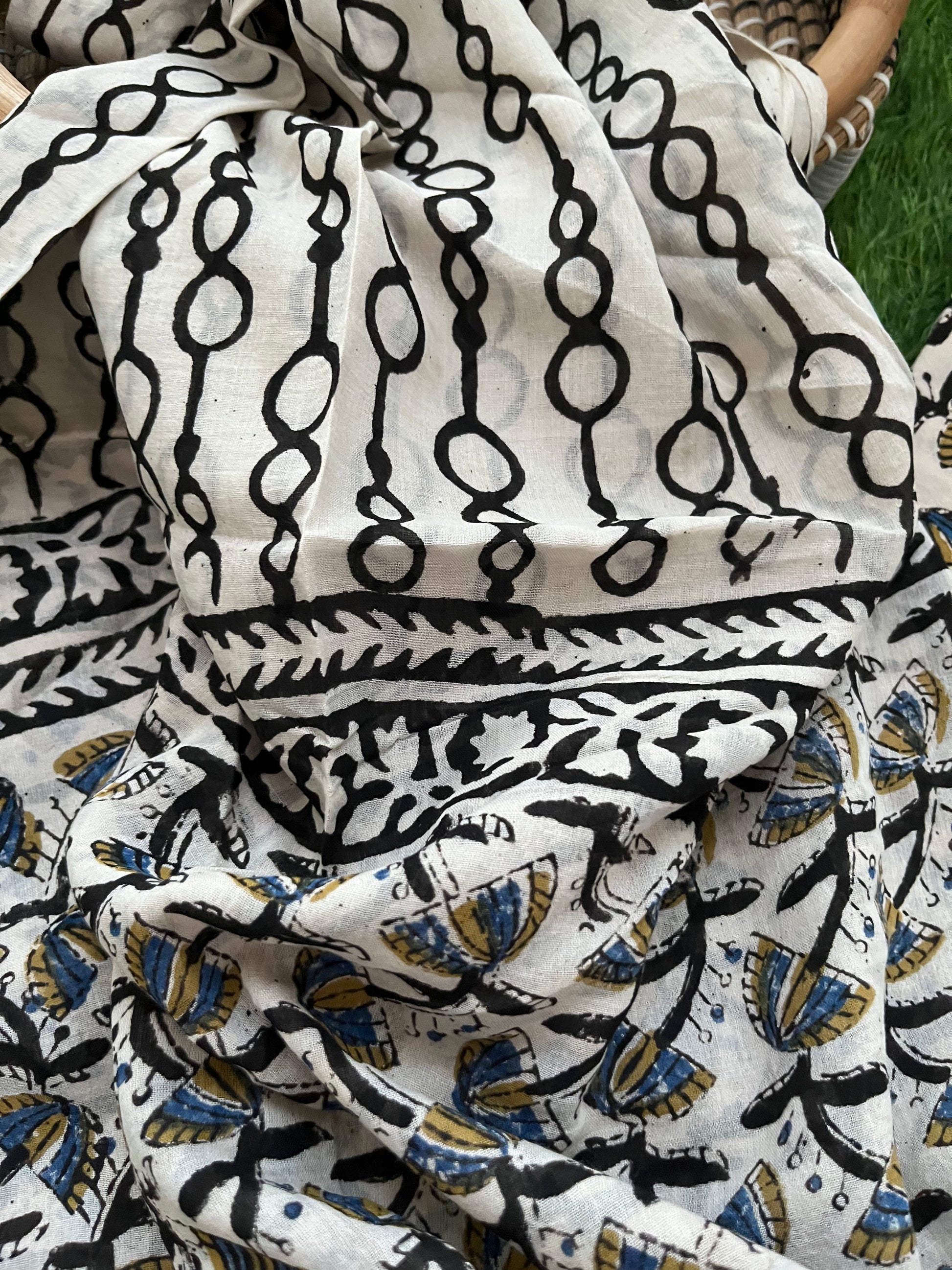 Cotton kalamkari block print kurta bottom fabric with mul dupatta …