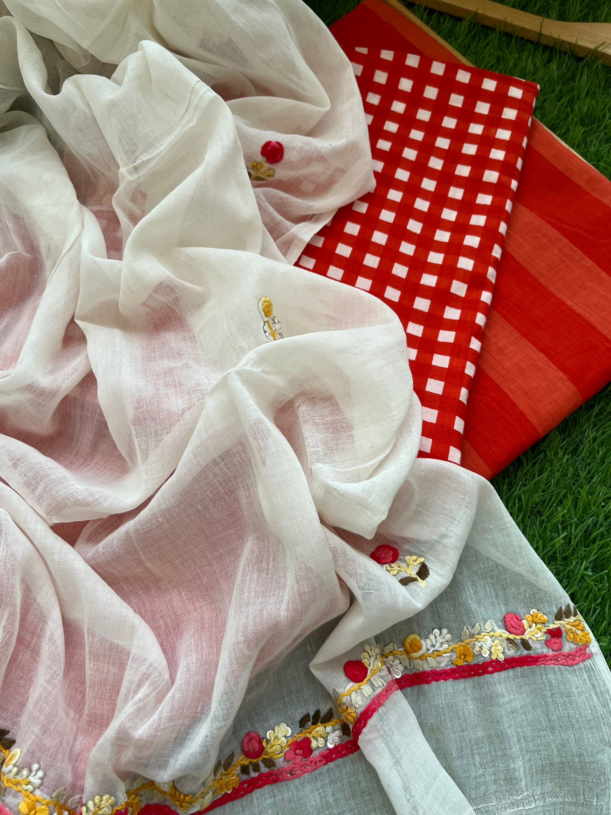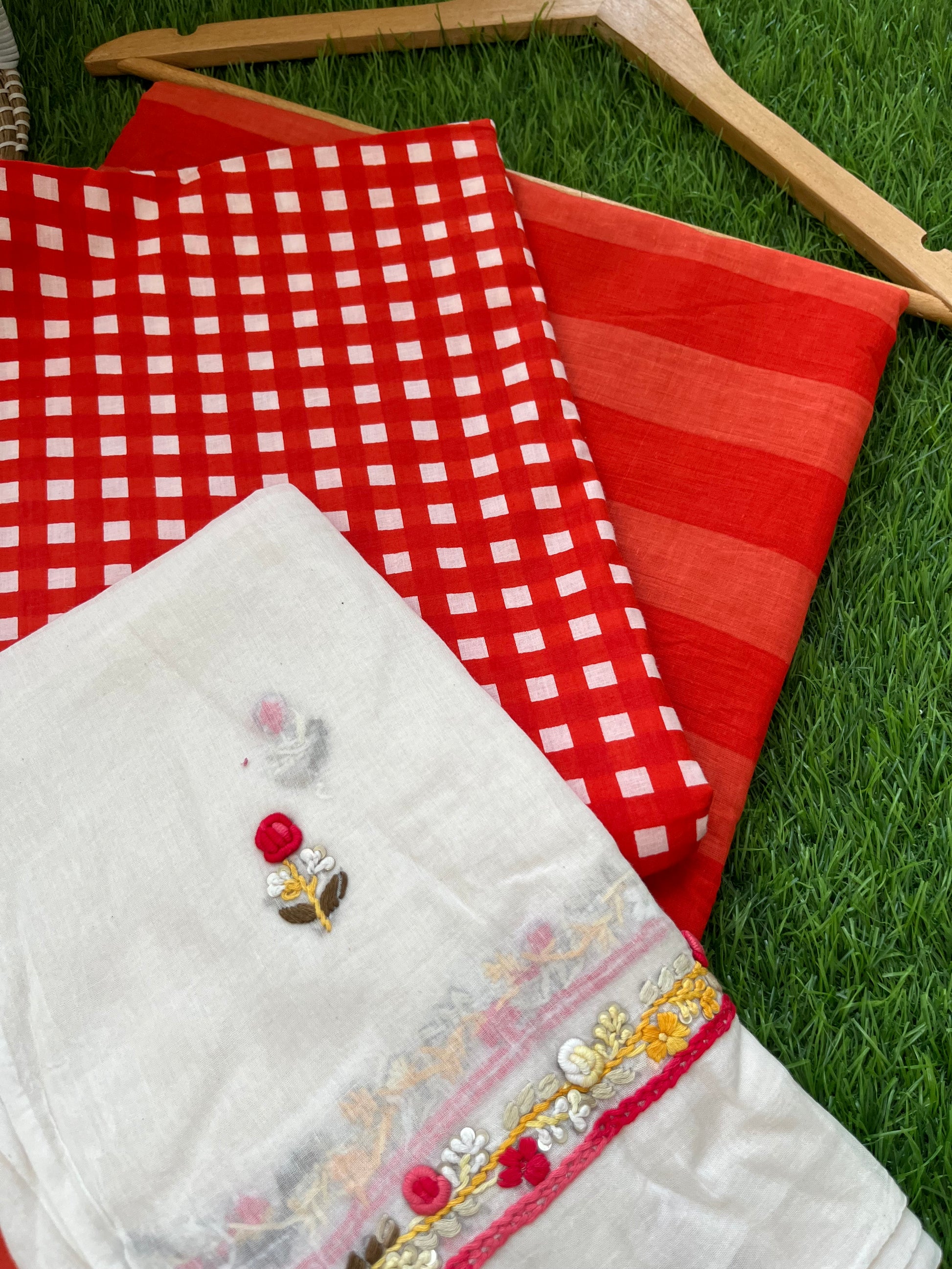Cotton knot work embroidered dupatta and kurta bottom fabric