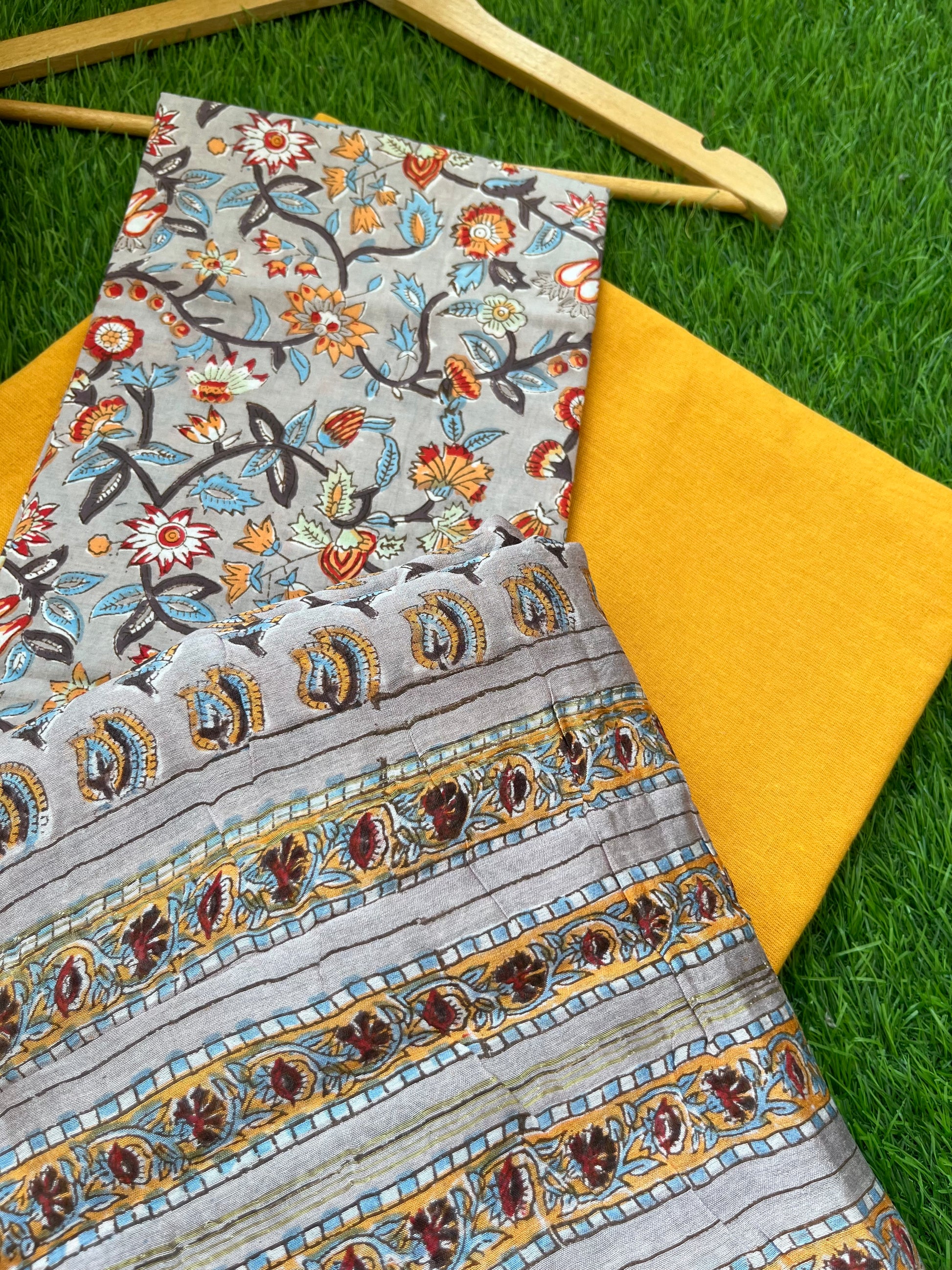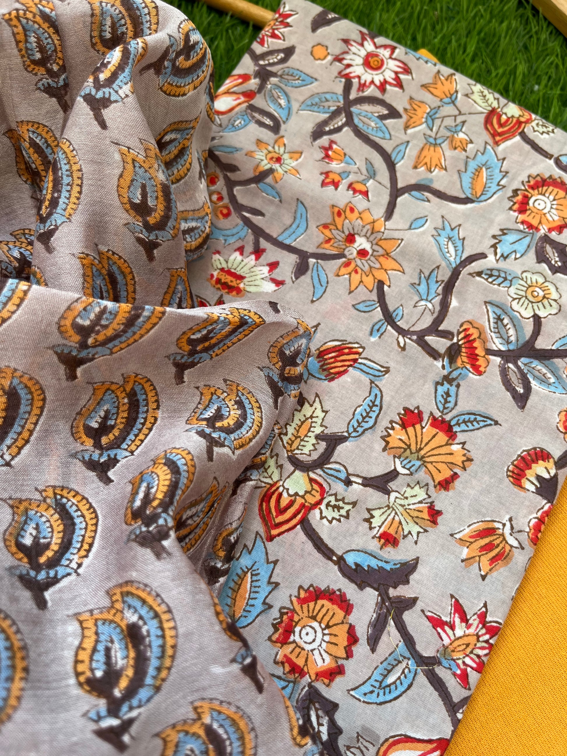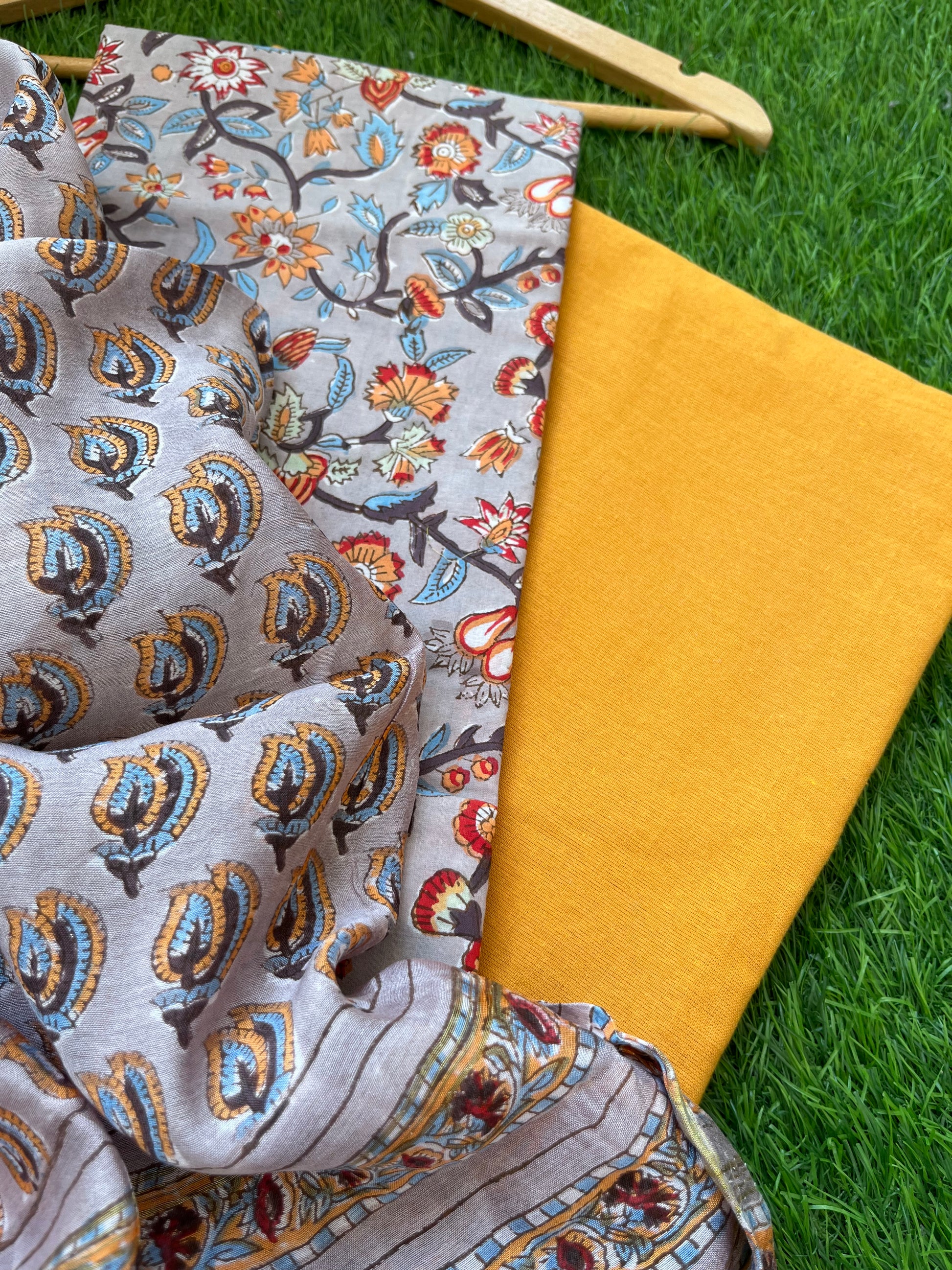 “Cotton block print kurta plain bottom fabric with a chanderi block print dupatta