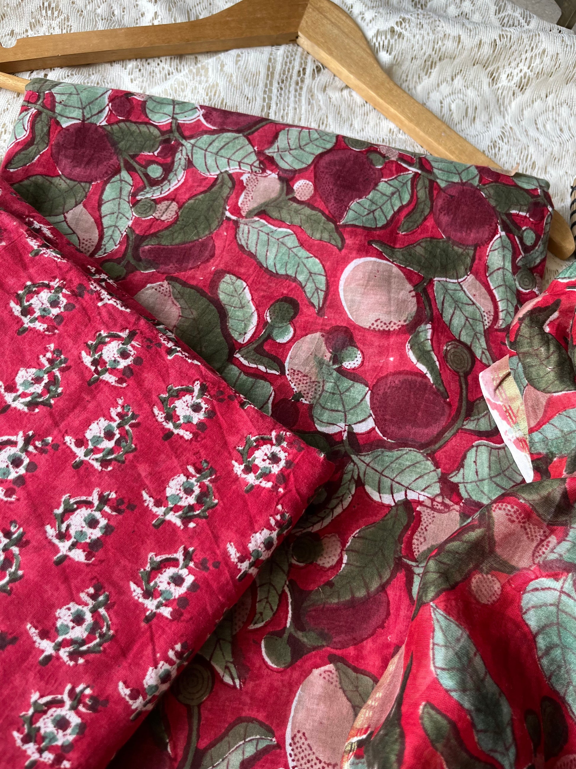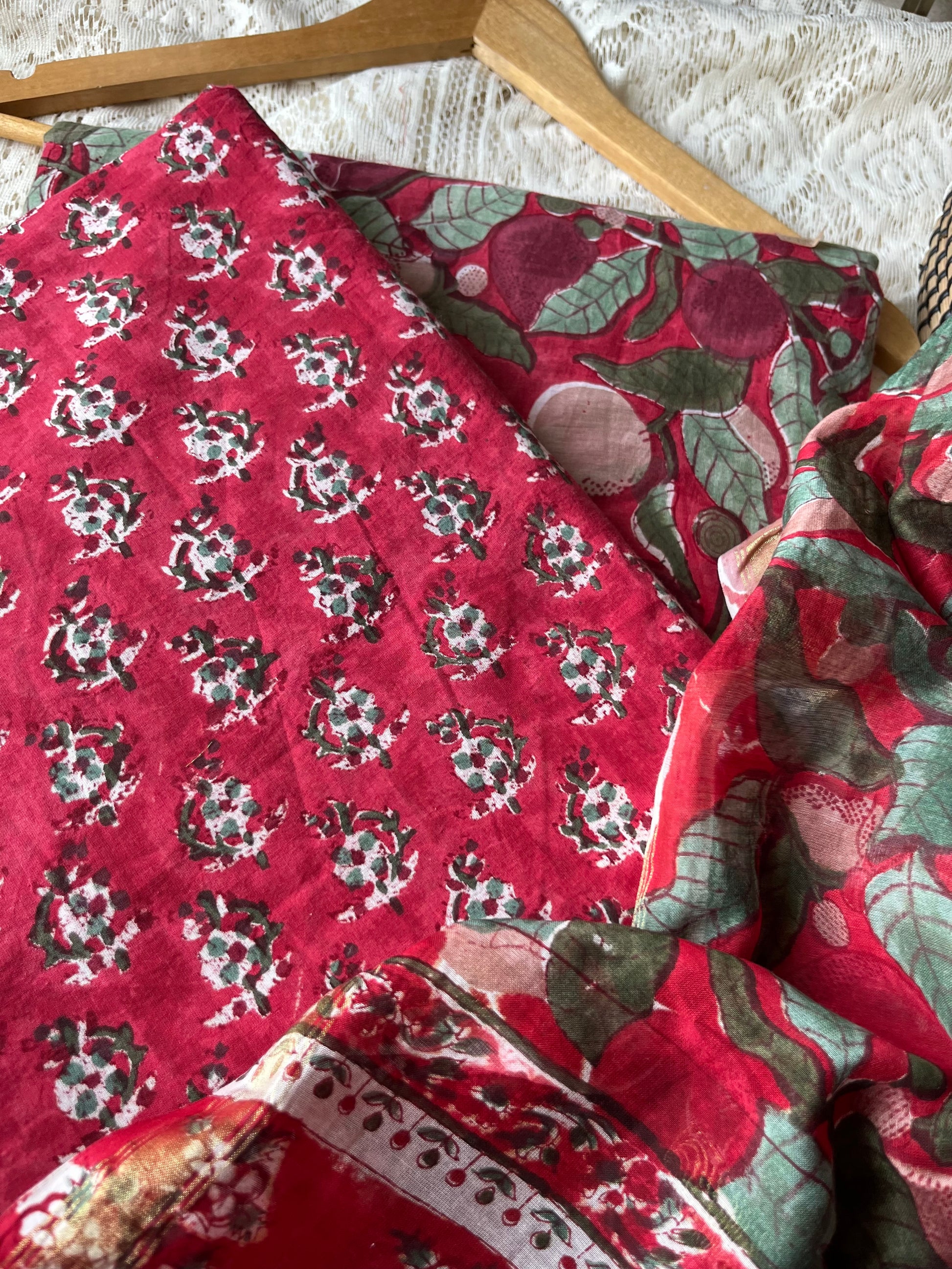 “Cotton block print kurta plain bottom fabric with a chanderi block print dupatta