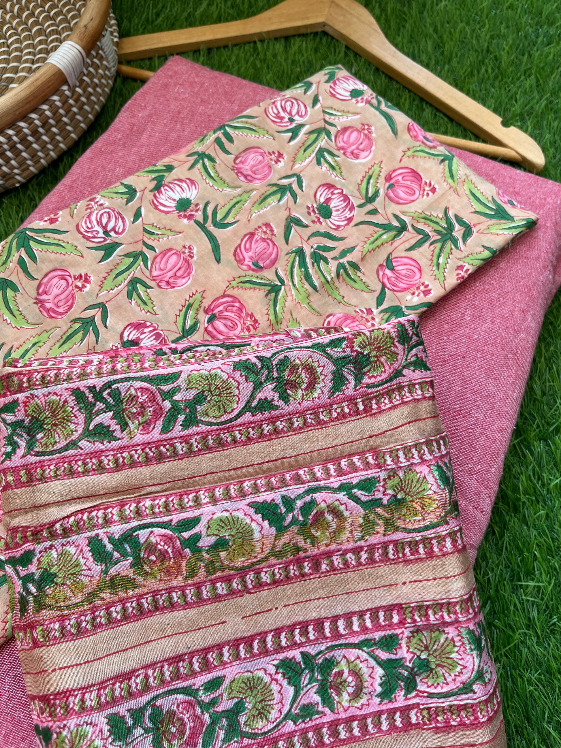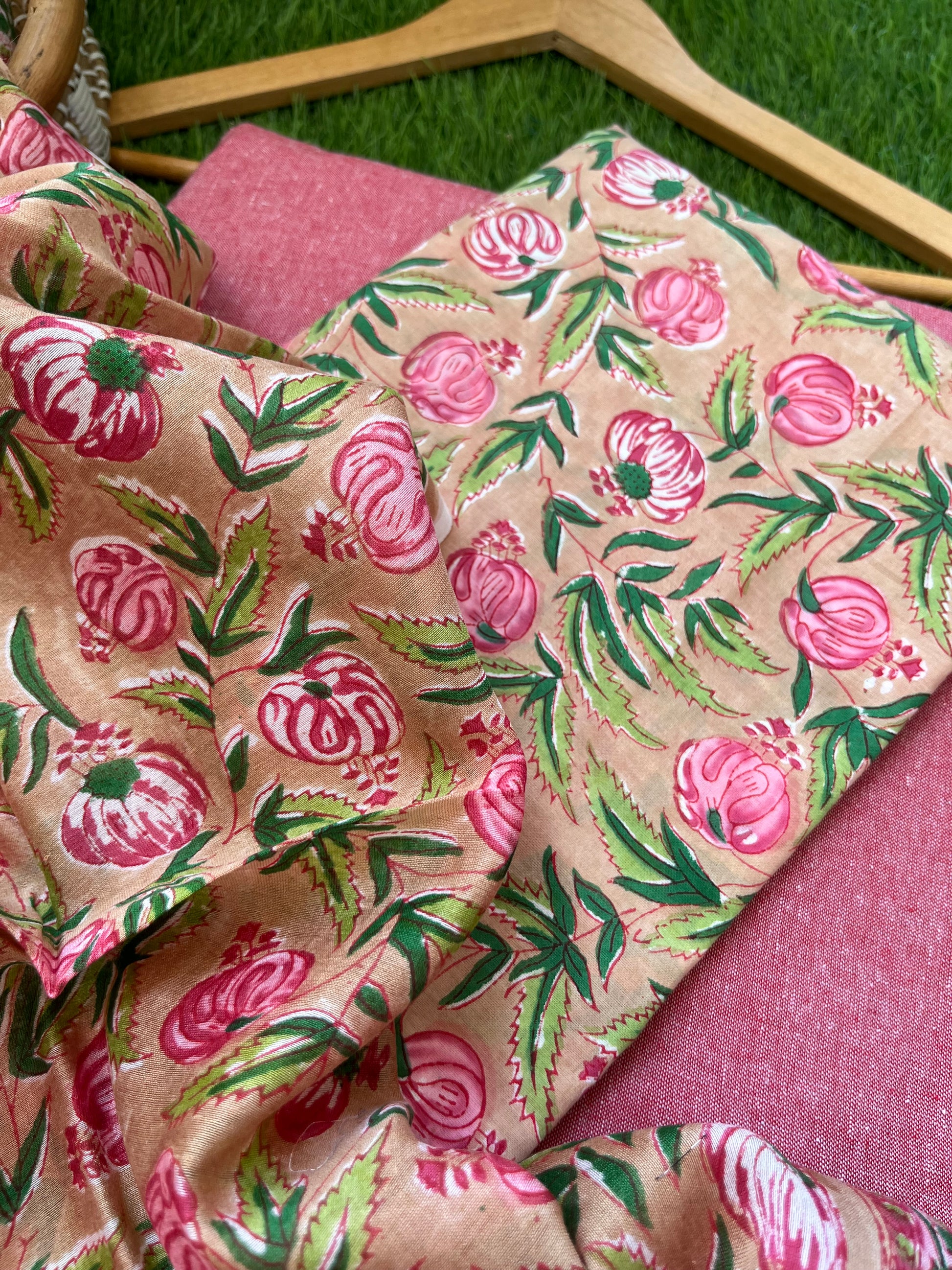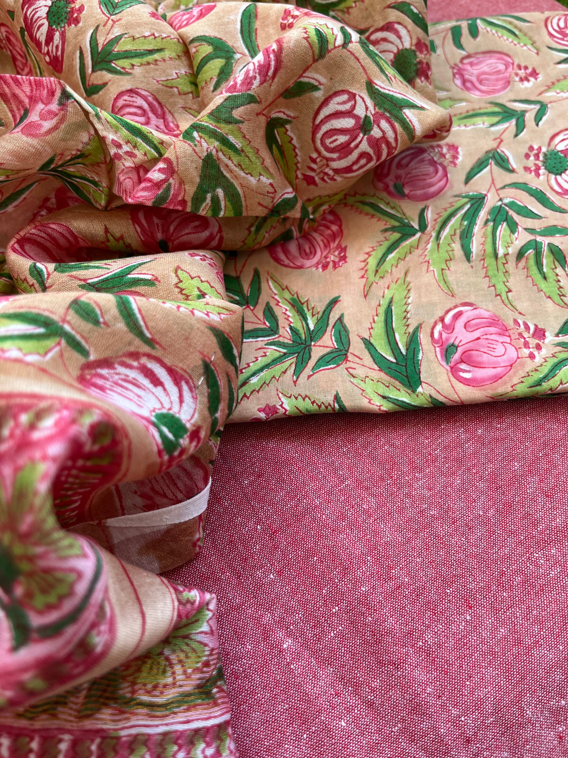 “Cotton block print kurta plain bottom fabric with a chanderi  block print dupatta