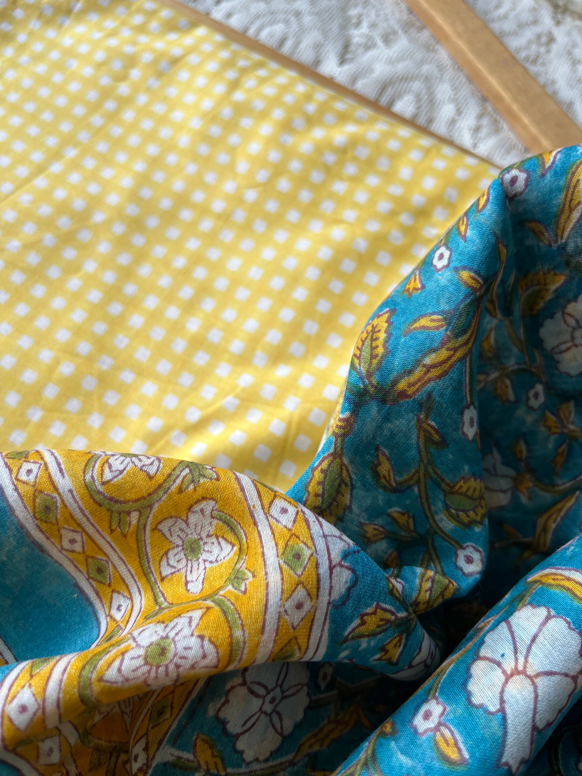 “Cotton block print kurta plain bottom fabric with a chanderi block print dupatta