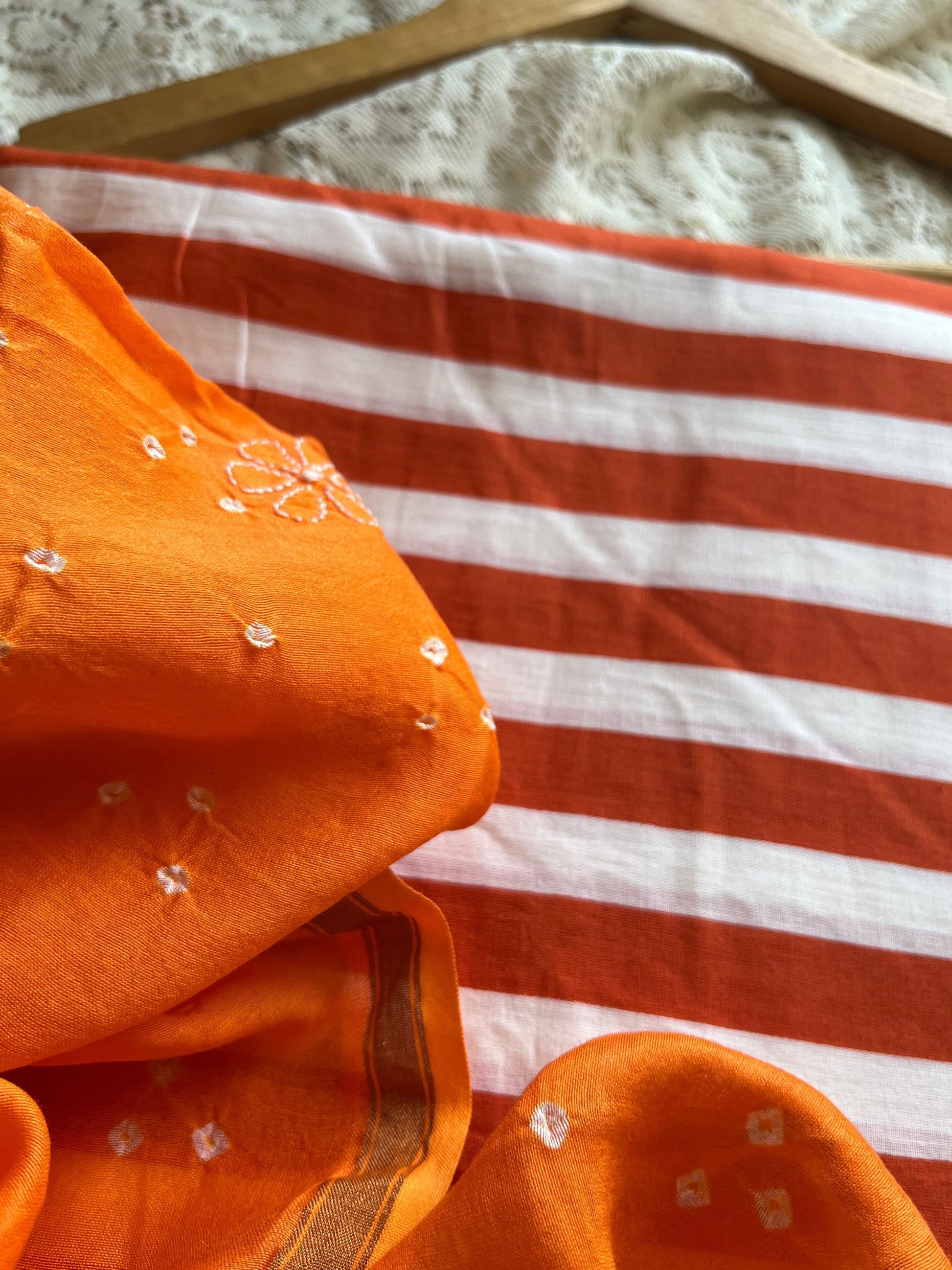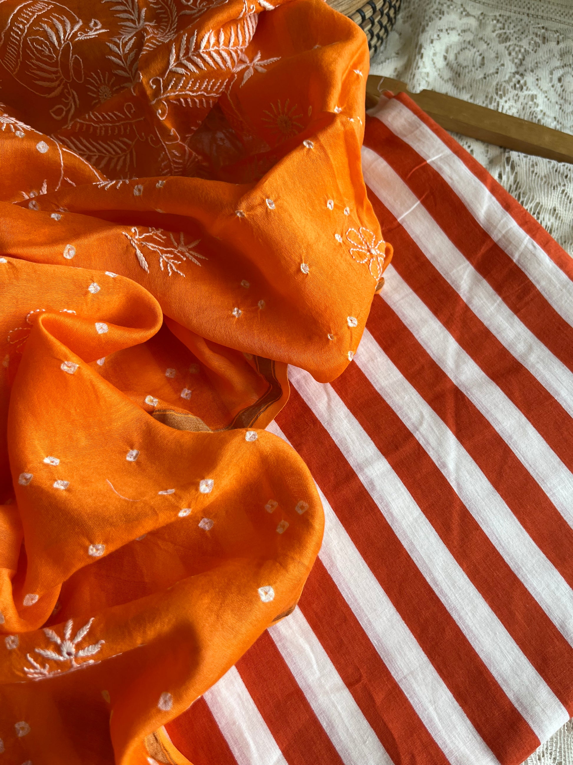 “Cotton striped kurta bottom fabric chikankari dupatta
