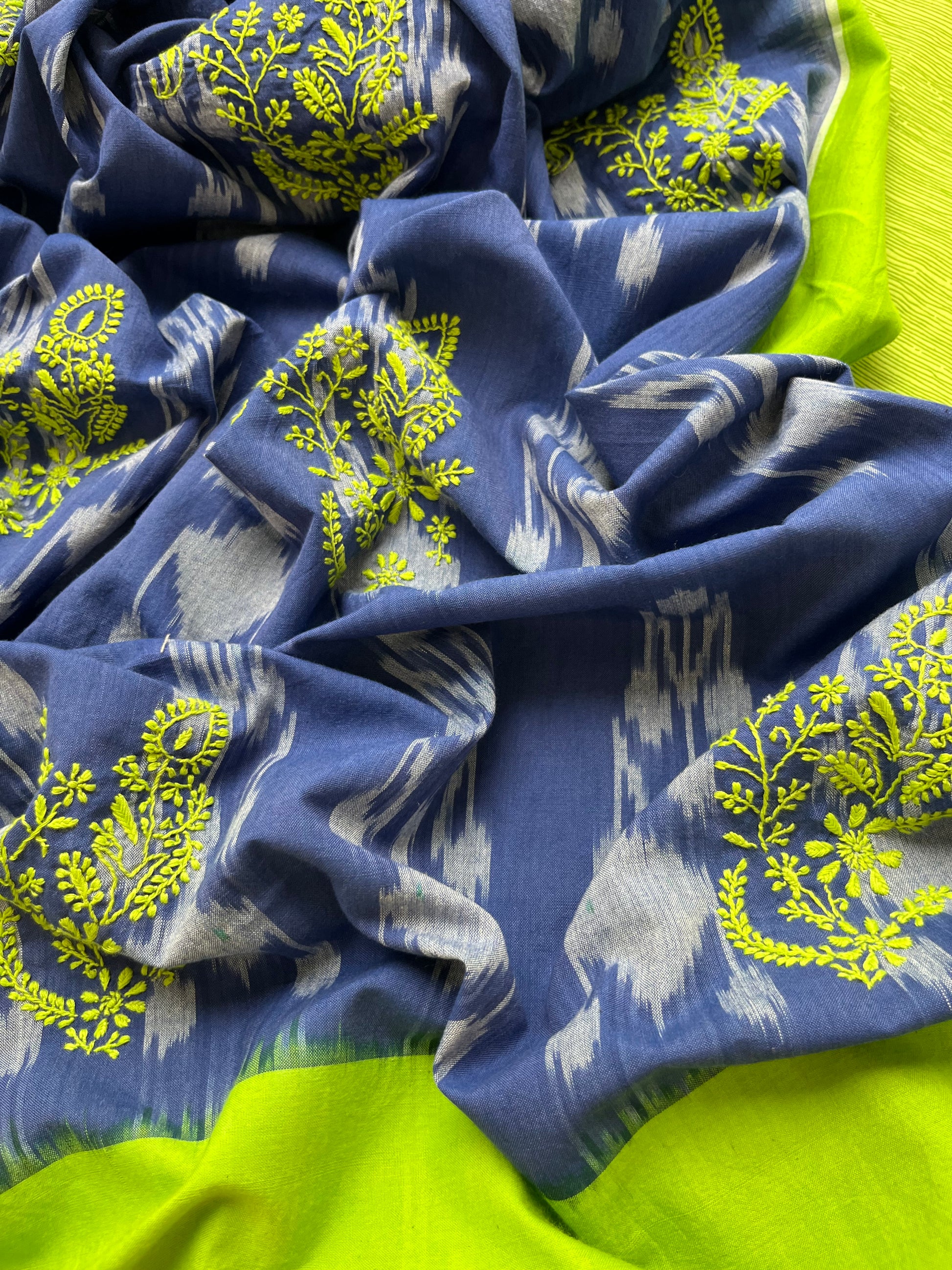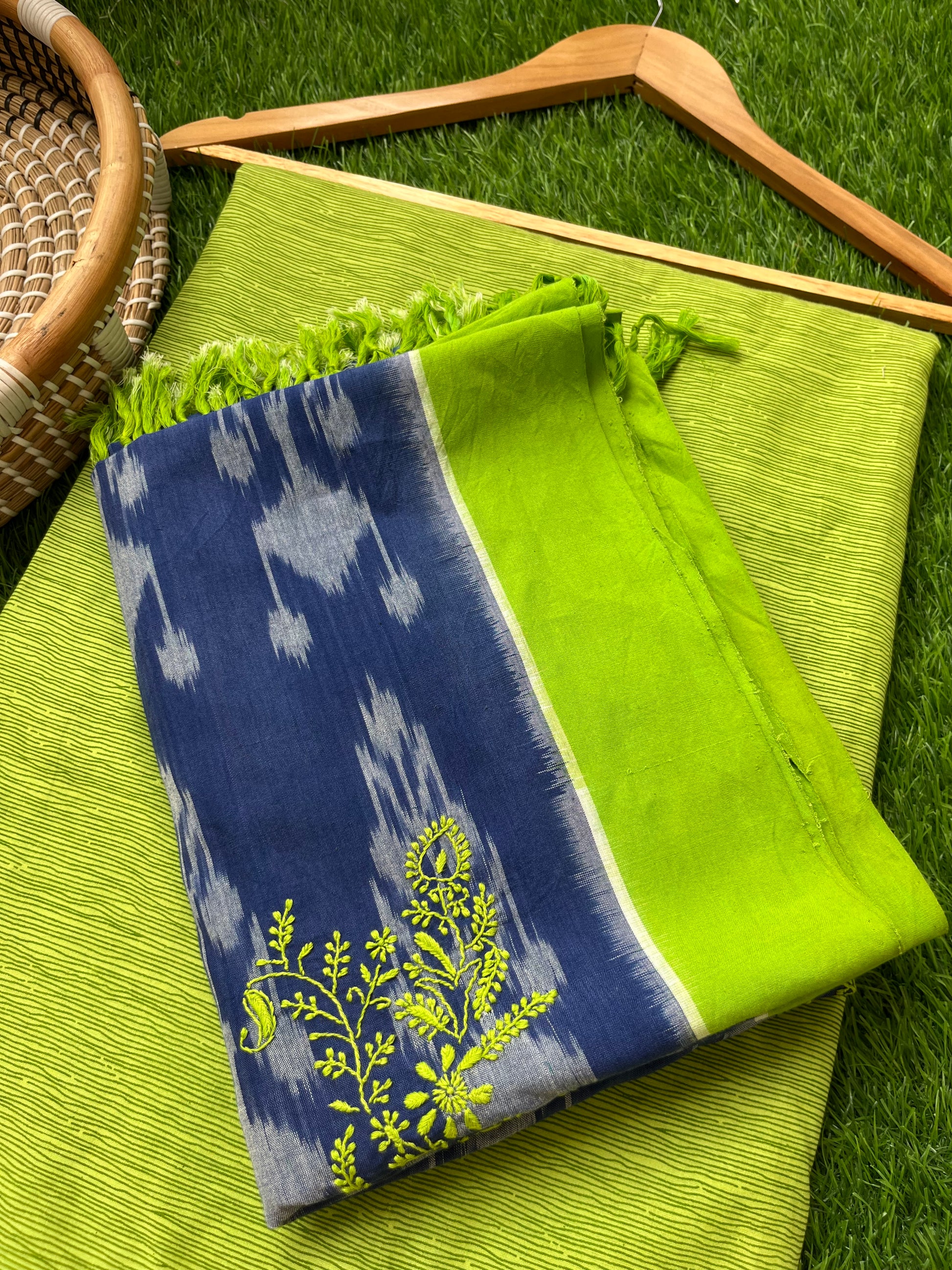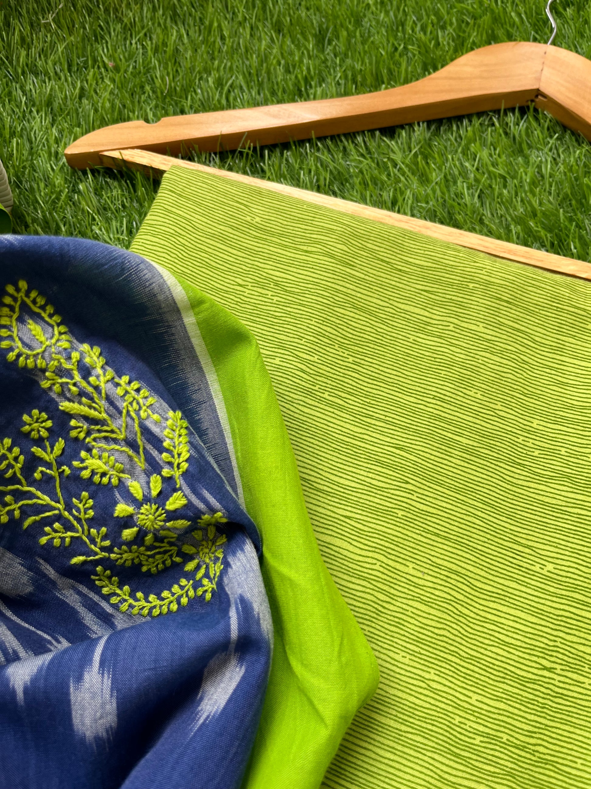 Cotton kurta bottom fabric ikkat chikankari Dupatta
