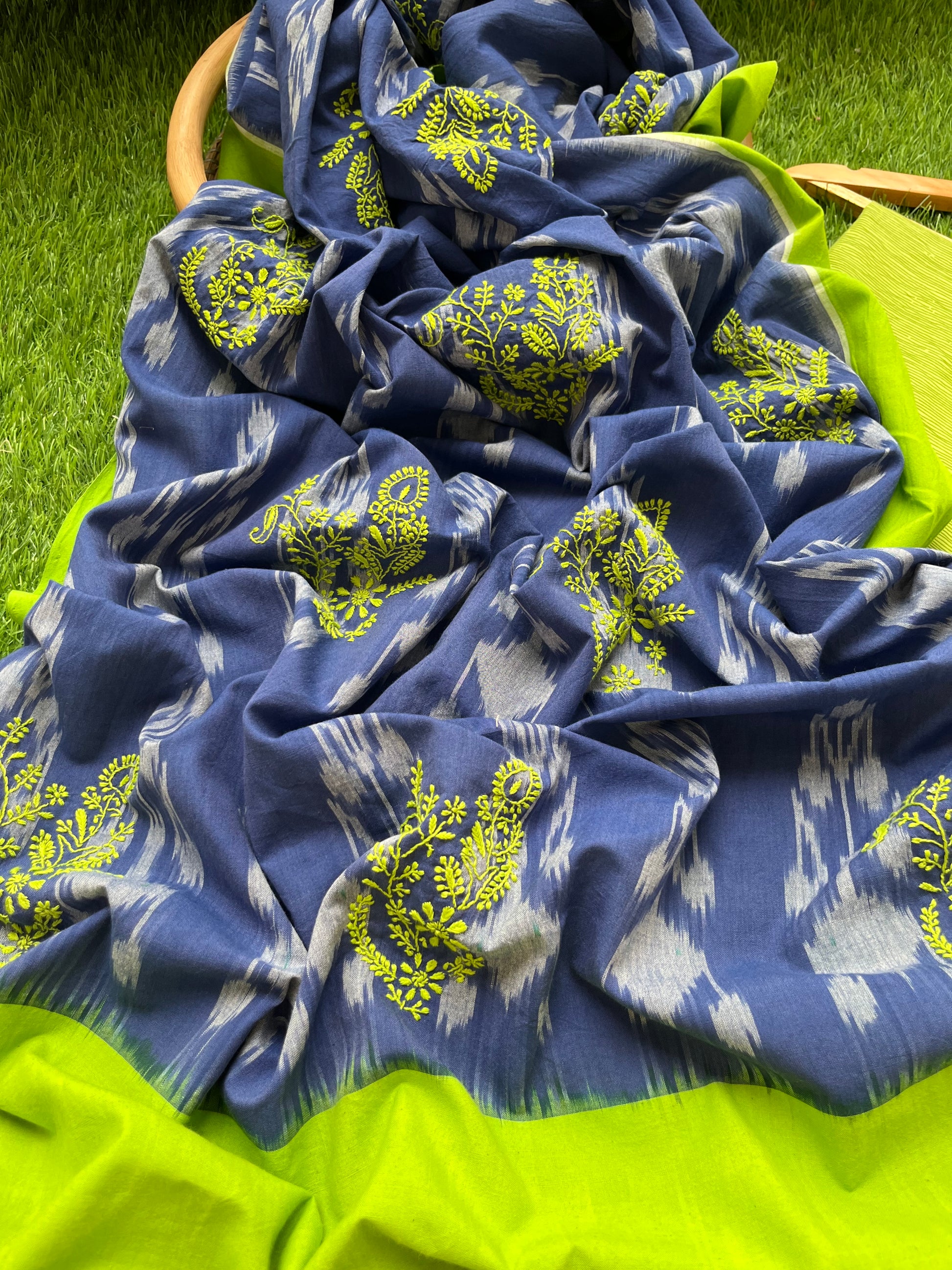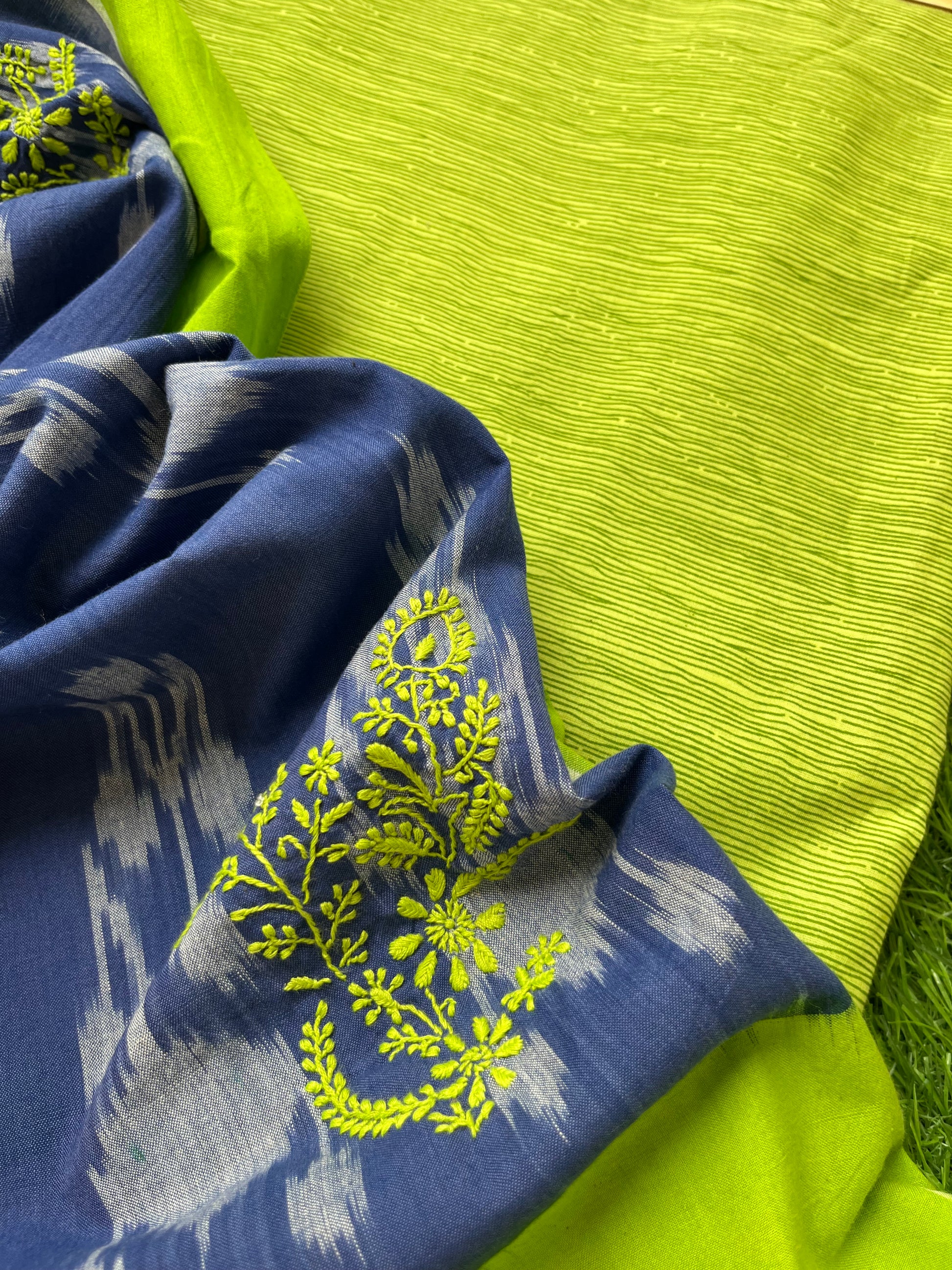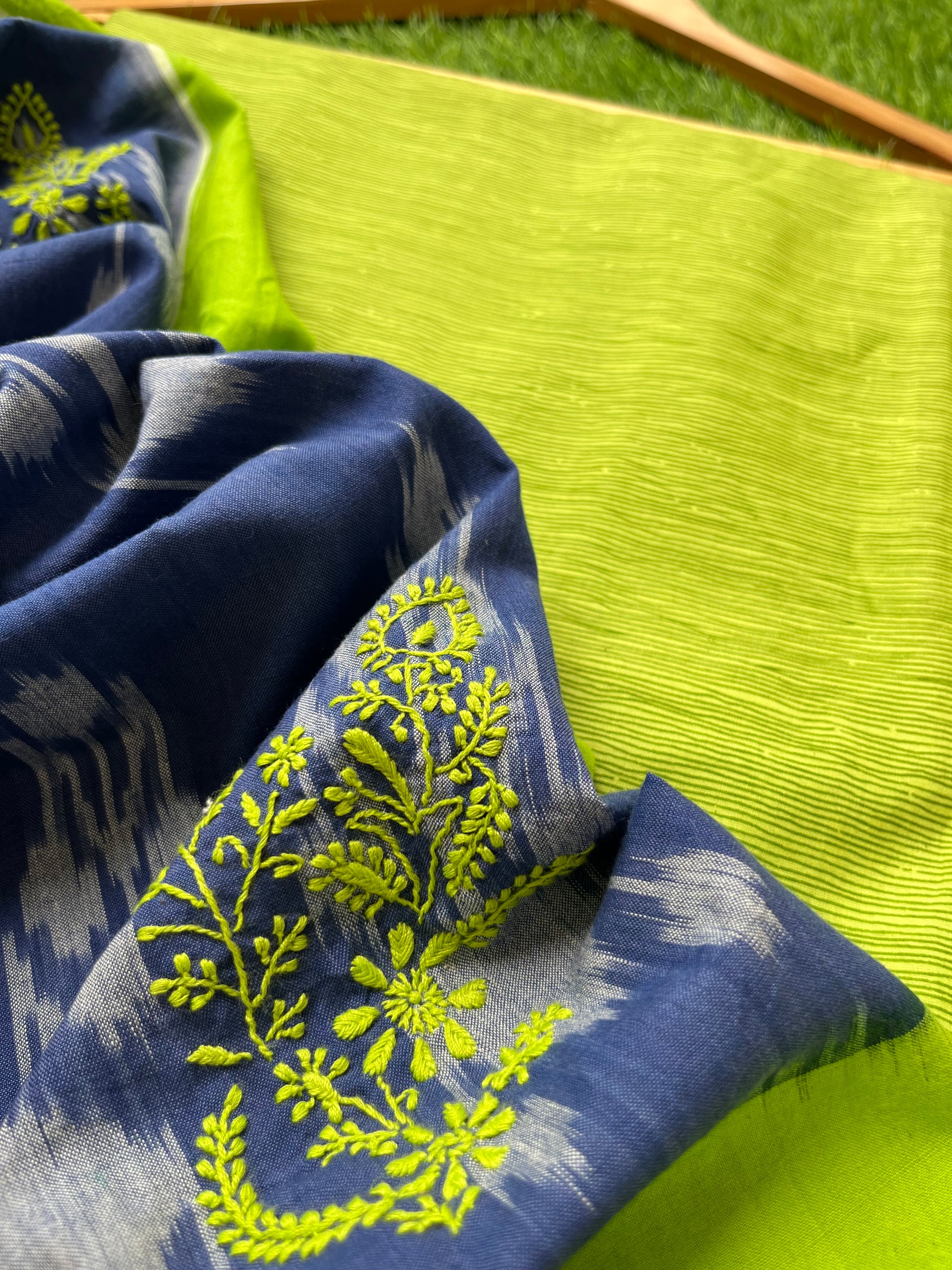 Cotton kurta bottom fabric ikkat chikankari Dupatta