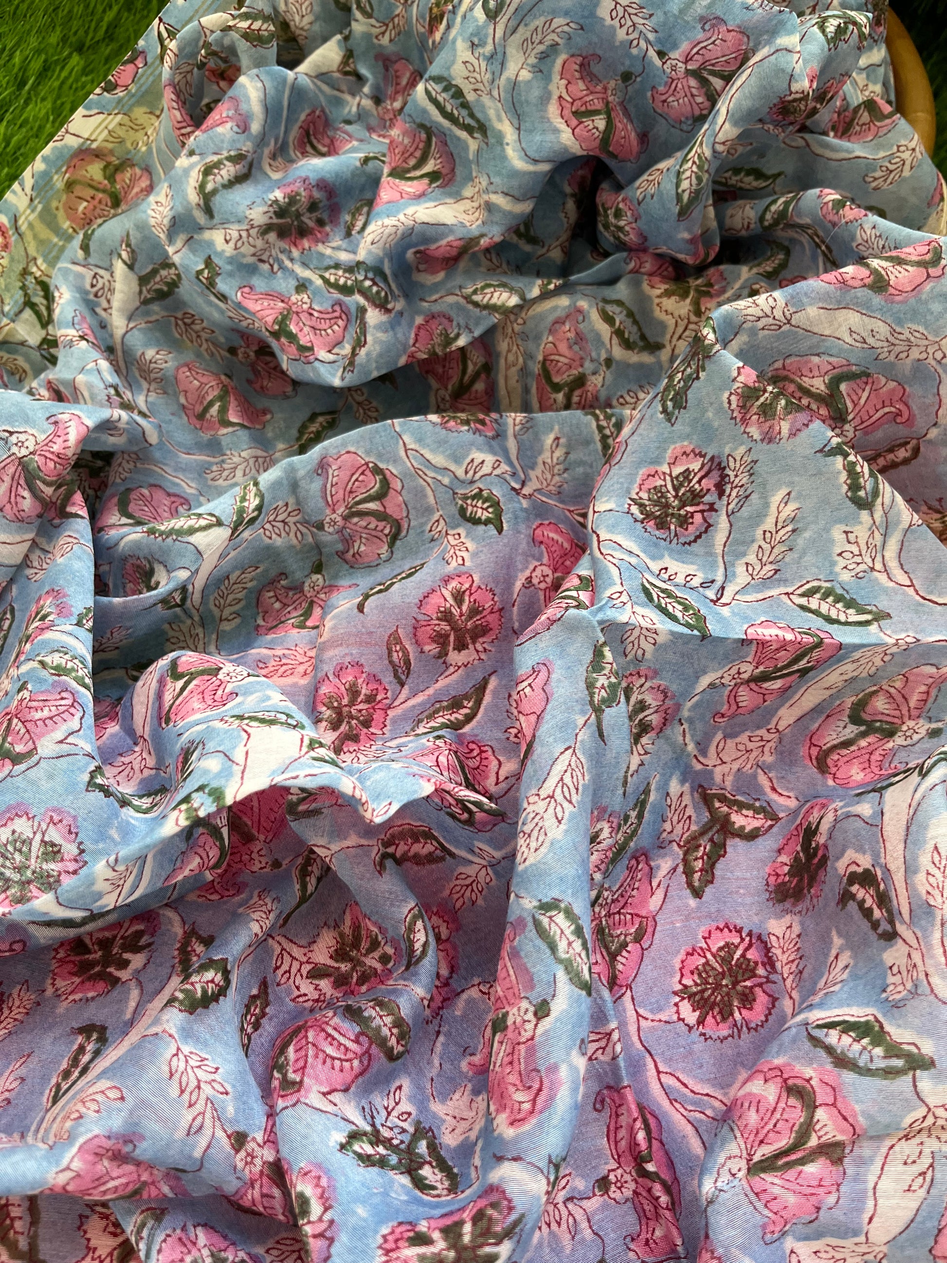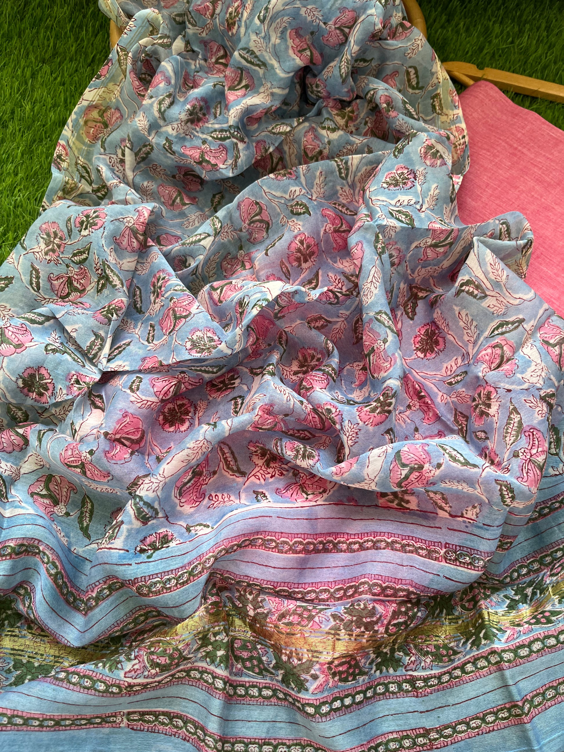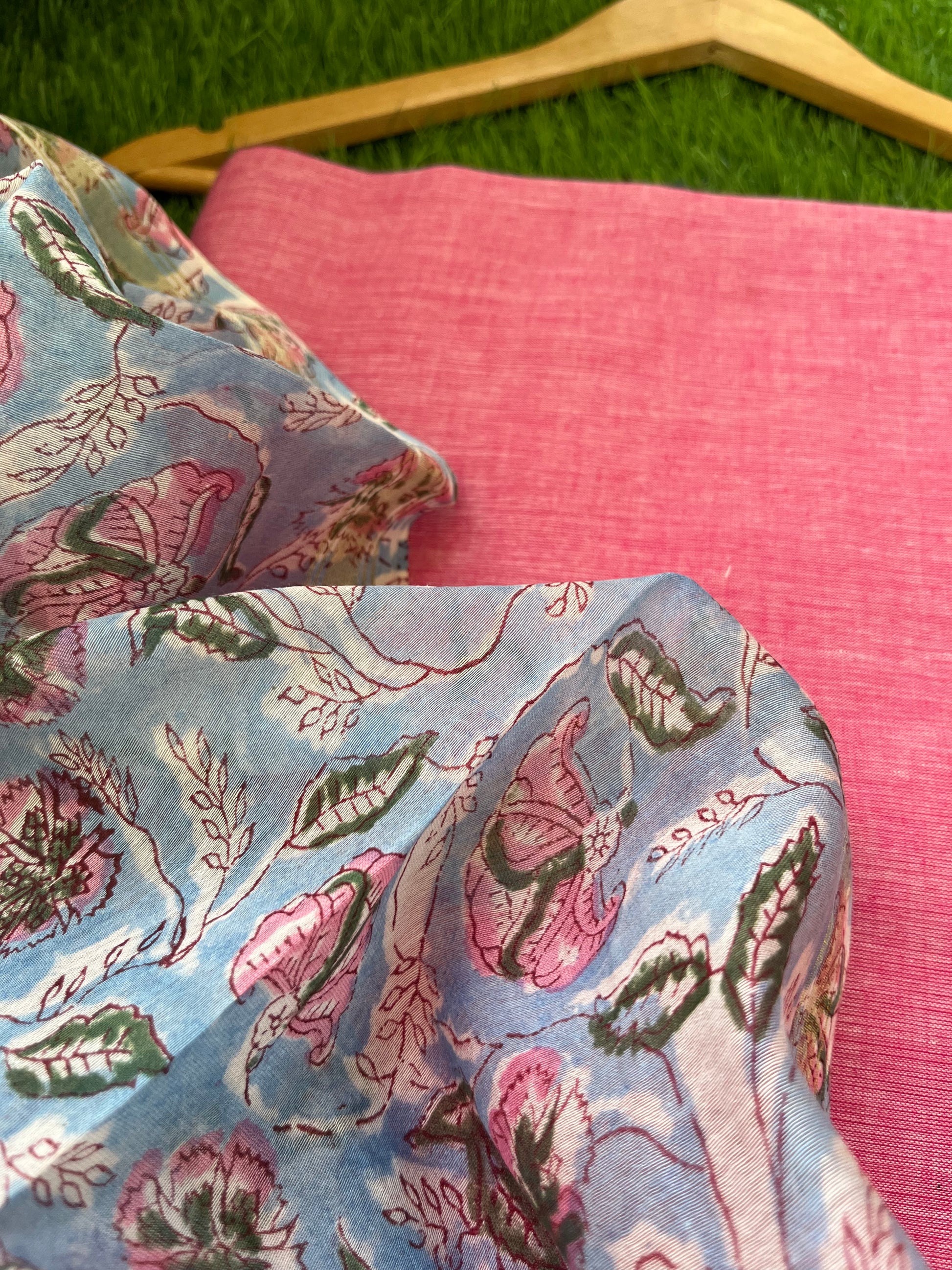 “Cotton block print kurta bottom fabric with a chanderi block print dupatta